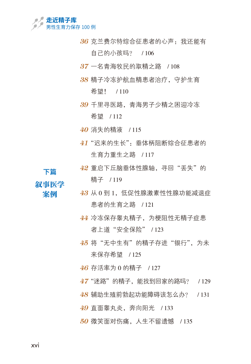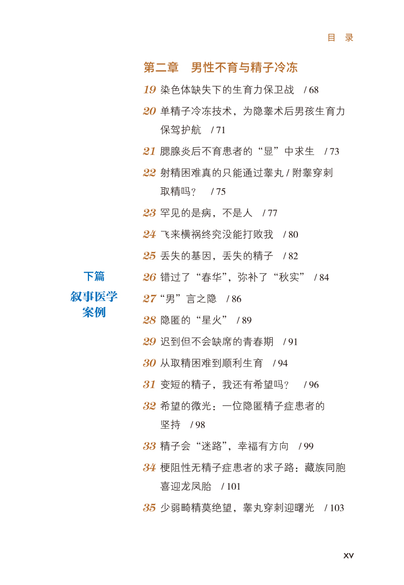 100个案例,100段人生,构成了这部沉甸甸的生育叙事集,它跨越生殖医学技术的范畴,将每一个个体的心路历程融入其中——那些绝境与重生、失落与信心、焦虑与振奋、挣扎与不屈、悲伤与欢笑往复出现的印迹皆被一一记录。例如,无精子症、少弱精子症患者在生育绝境中突围,肿瘤患者在与疾病抗争的同时展现生命韧性。透过这些真实的案例,人们可以了解当男性生育风险降临时,希望究竟在何处。当真正读懂这些故事,人们终将理解:生育力保存不是对生命自然进程的僭越,而是科技文明赋予人类对抗命运无常的慈悲。