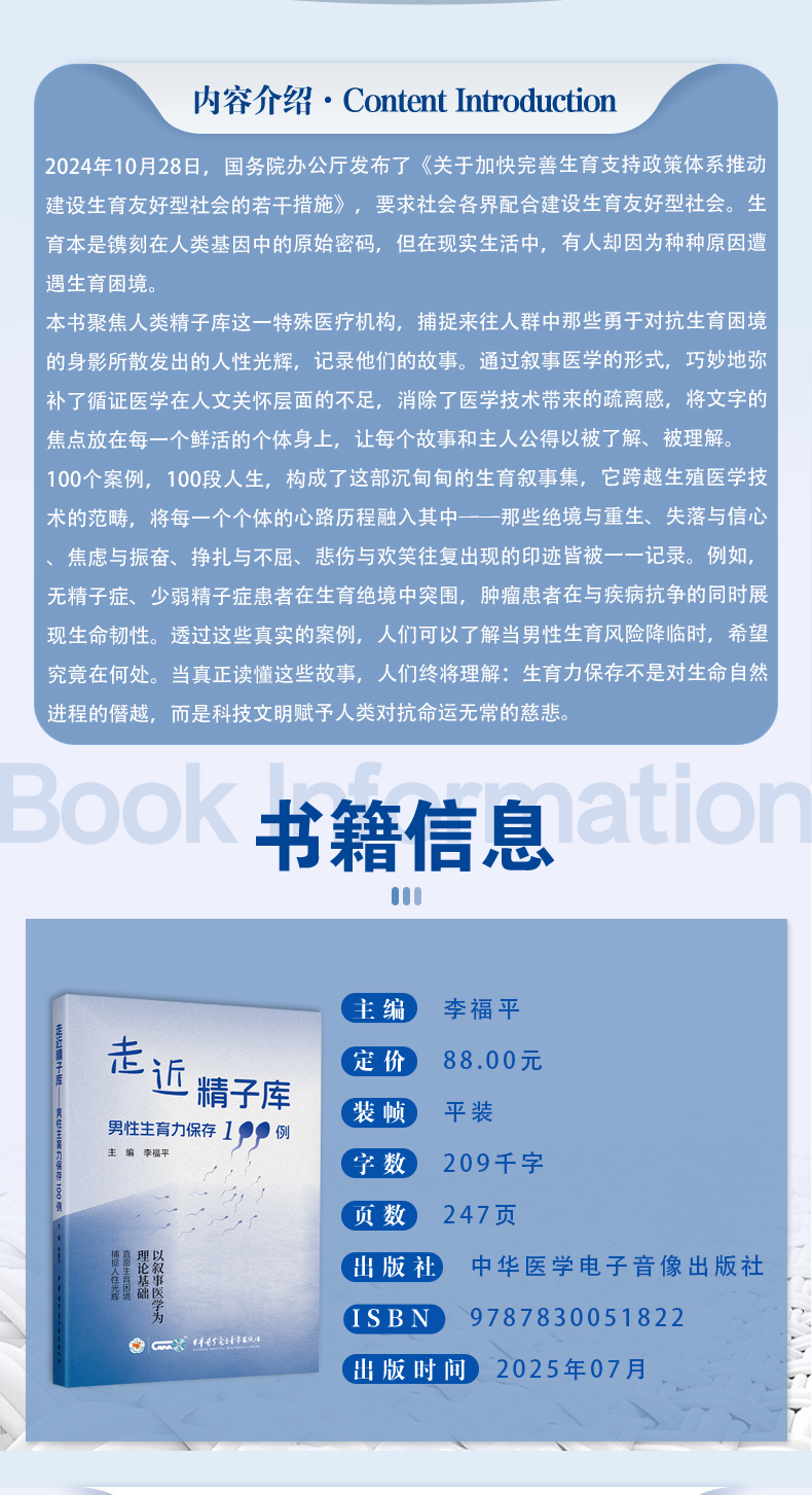 走近精子库——男性生育力保存100例 李福平 主编 100个案例 100段人生 构成了这部沉甸甸的生育叙事集 中华医学电子音像出版社