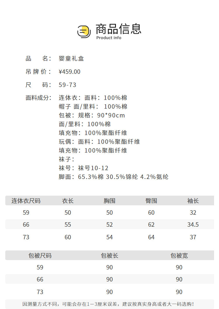 巴拉巴拉新生儿用品大全初生宝宝礼盒满月礼五件套柔软亲肤舒适萌