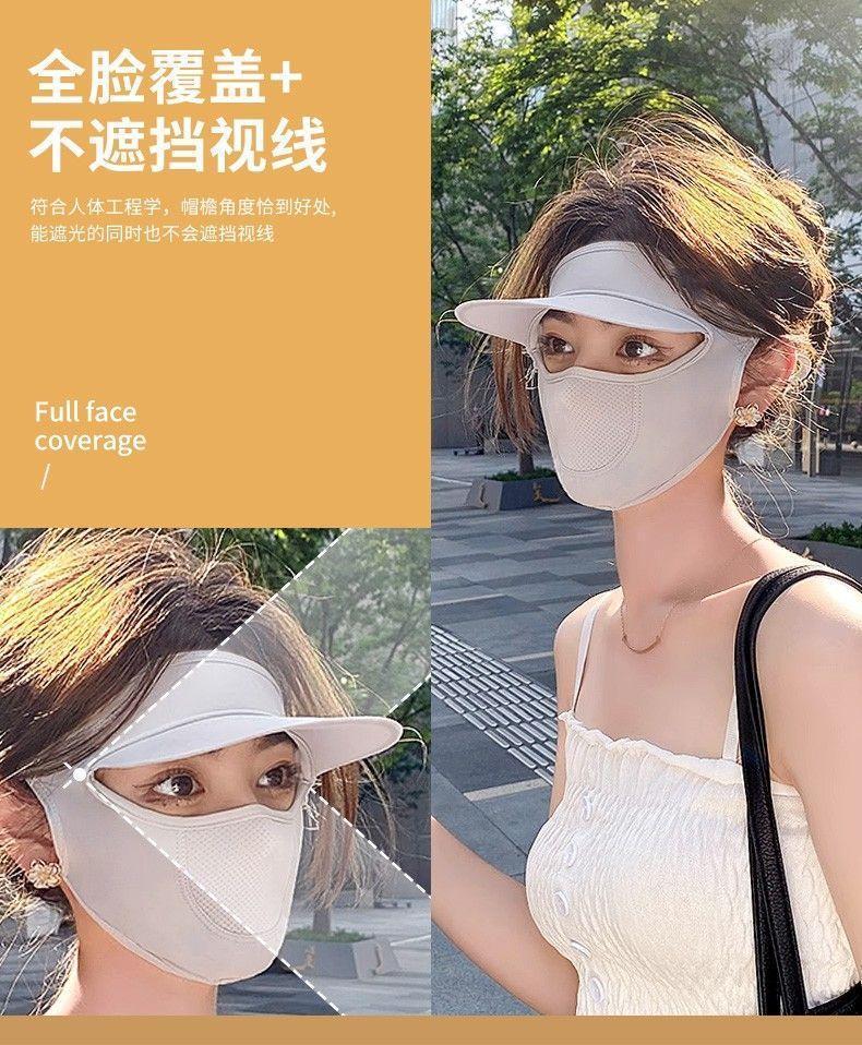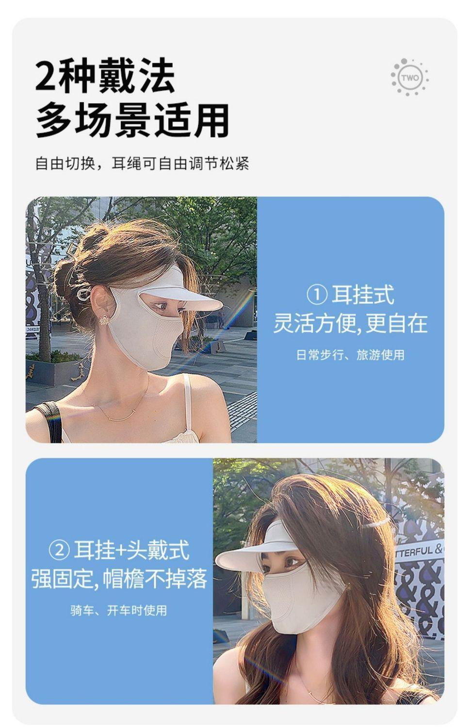 【超值两件装!帽檐一体防晒脸基尼】夏季防晒面罩脸基尼女防紫外线遮阳全脸骑行透气一体帽檐冰丝口罩。ry