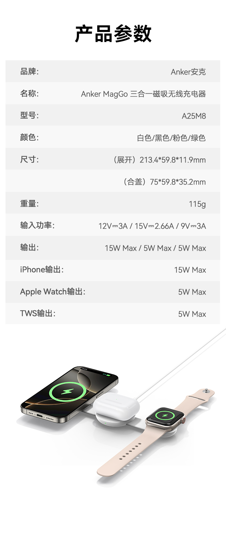 Anker安克 三合一磁吸无线充 小飞碟 B25M8