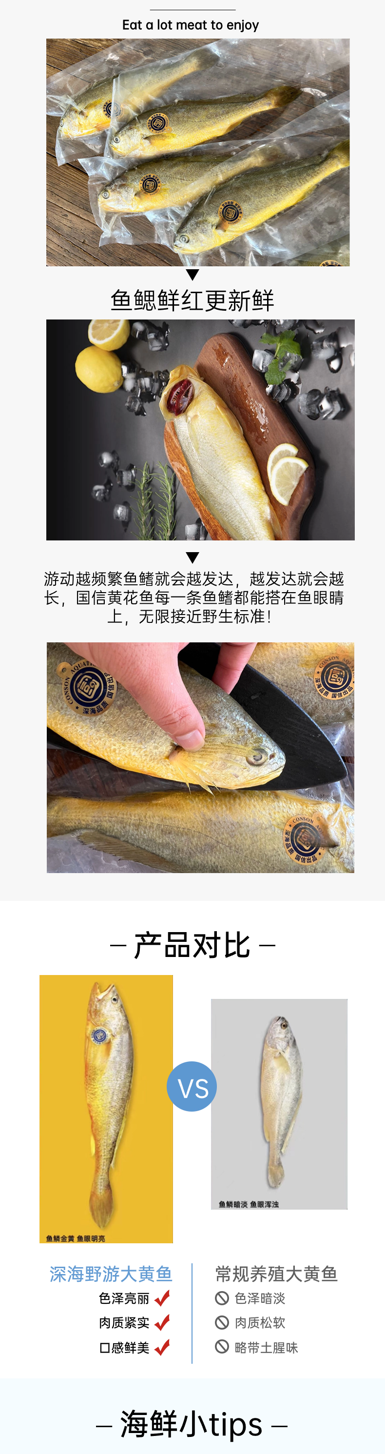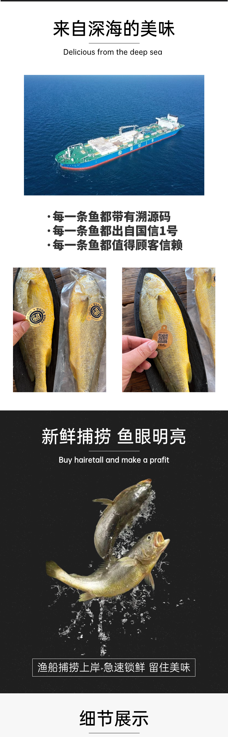 国信大黄鱼#身形细长肉质紧实口感鲜美无土腥味,全球首艘10万吨级智慧渔业养殖船 国企深海野游养殖方式,一鱼一溯源码,清蒸红烧都好吃~