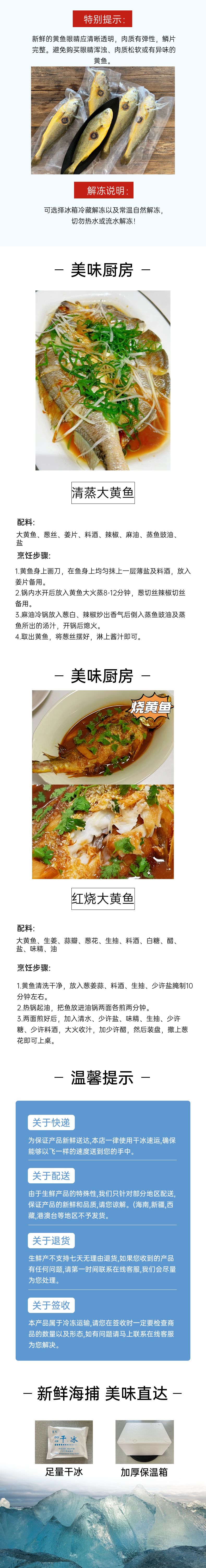 品名:国信大黄鱼规格1: 3条,5-6两/条规格2:3条,6-7两/条 包装方式:袋装+泡沫箱+冰袋 快递:京东 运费模板:新疆、西藏、海南、四川阿坝州甘孜攀枝花、甘肃陇南甘南嘉峪关敦煌酒泉、青海,广西,云南,贵州,港澳台不发货;其他地区包邮 发货时效:48-72小时 发货地/产地:山东海阳/青岛-福建洄游养殖 保质期:12个月 销售售卖期:全年 周六周天、节假日除外,早上十点之前的订单是48小时发货 ,到货时间约为2-5天,请您耐心等待 |