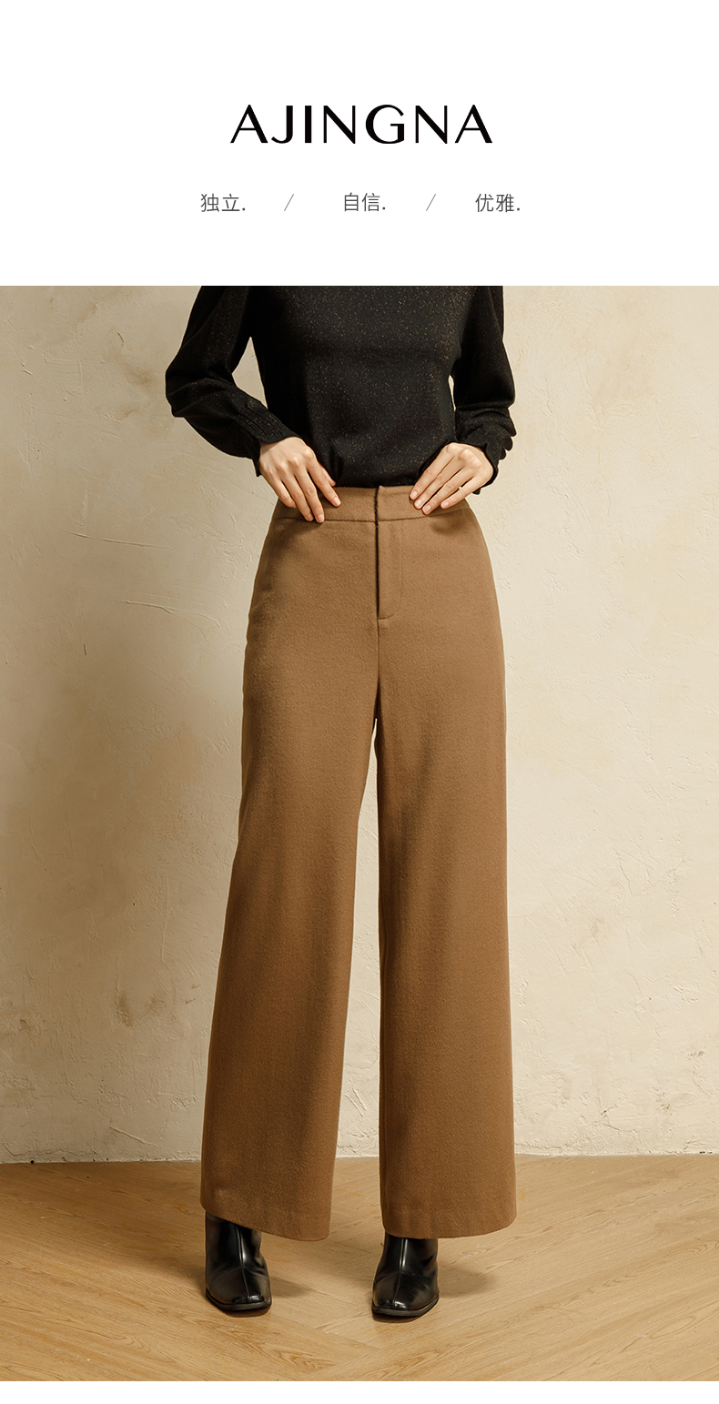 【商场同款】阿菁娜2024冬季新款高腰精致羊毛直筒裤A29D110003