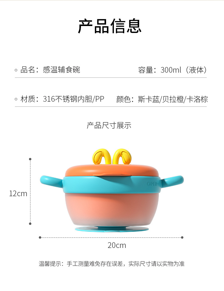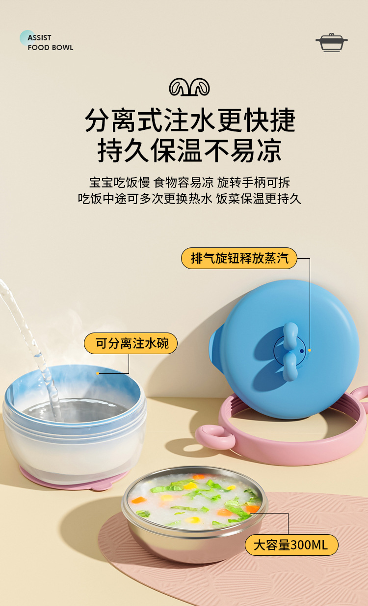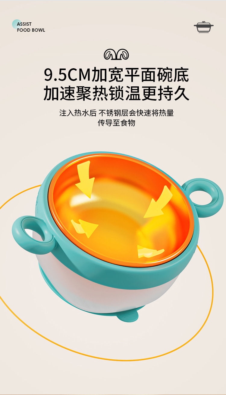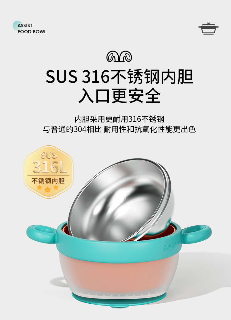 【儿童辅食碗!控温小精灵】宝宝注水家用保温碗 316不锈钢 婴幼儿辅食儿童餐具 防摔吸盘碗-QQ