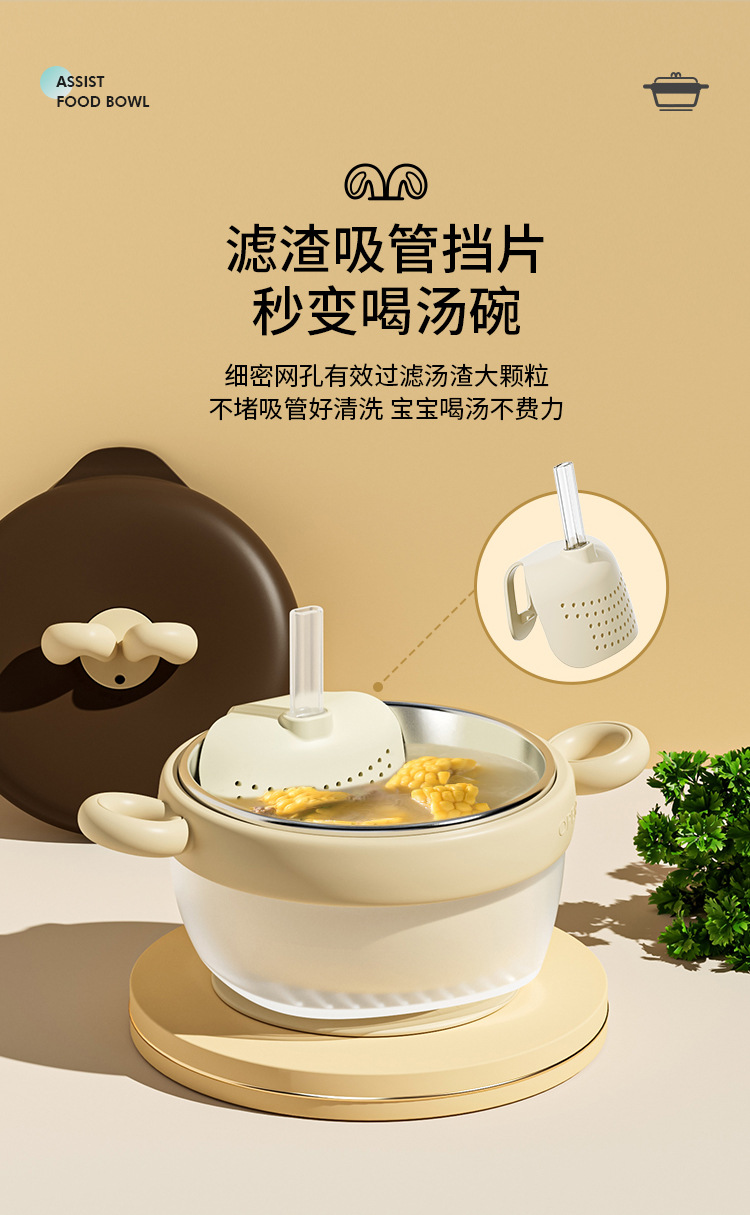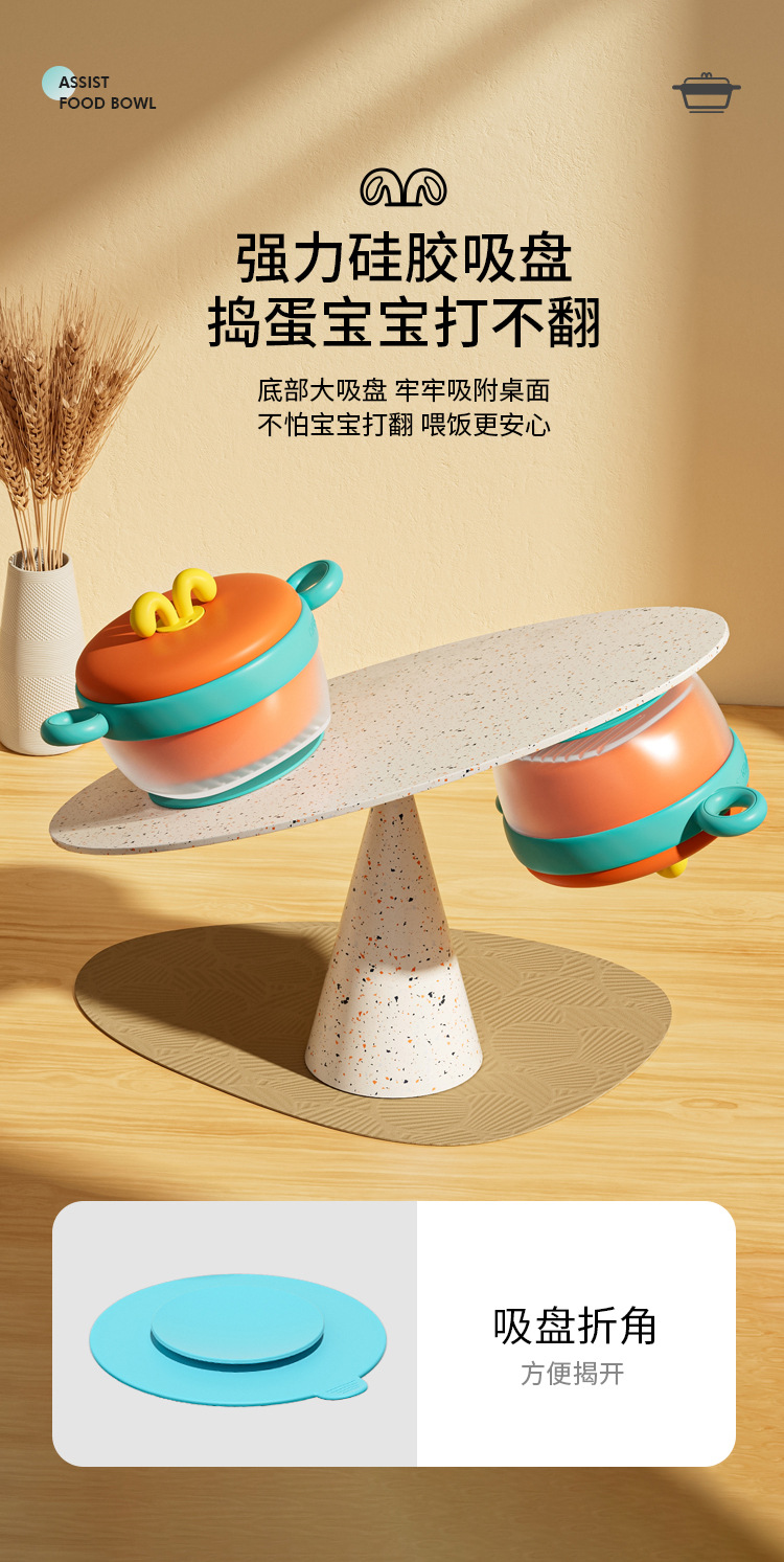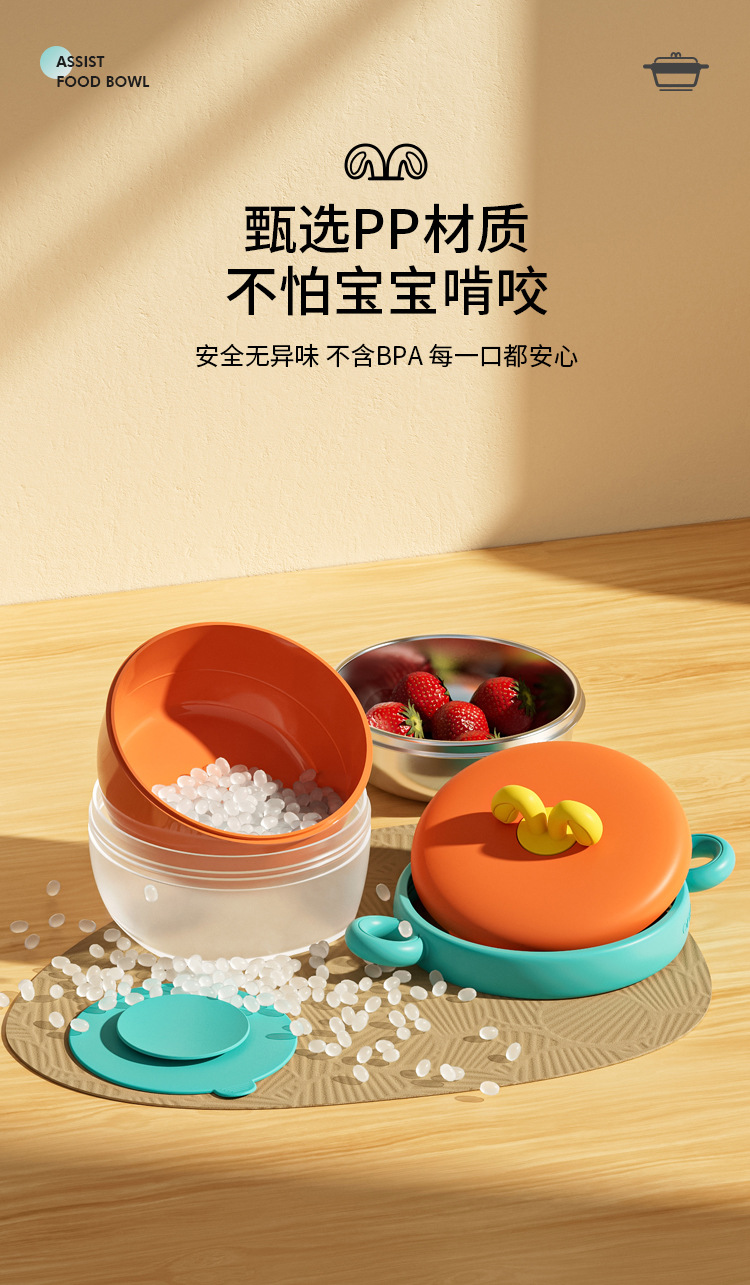 【儿童辅食碗!控温小精灵】宝宝注水家用保温碗 316不锈钢 婴幼儿辅食儿童餐具 防摔吸盘碗-QQ