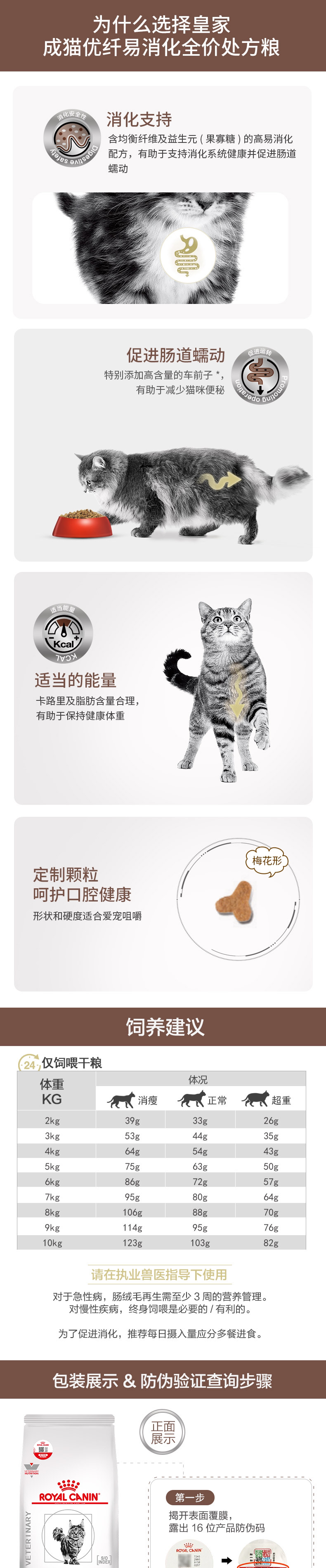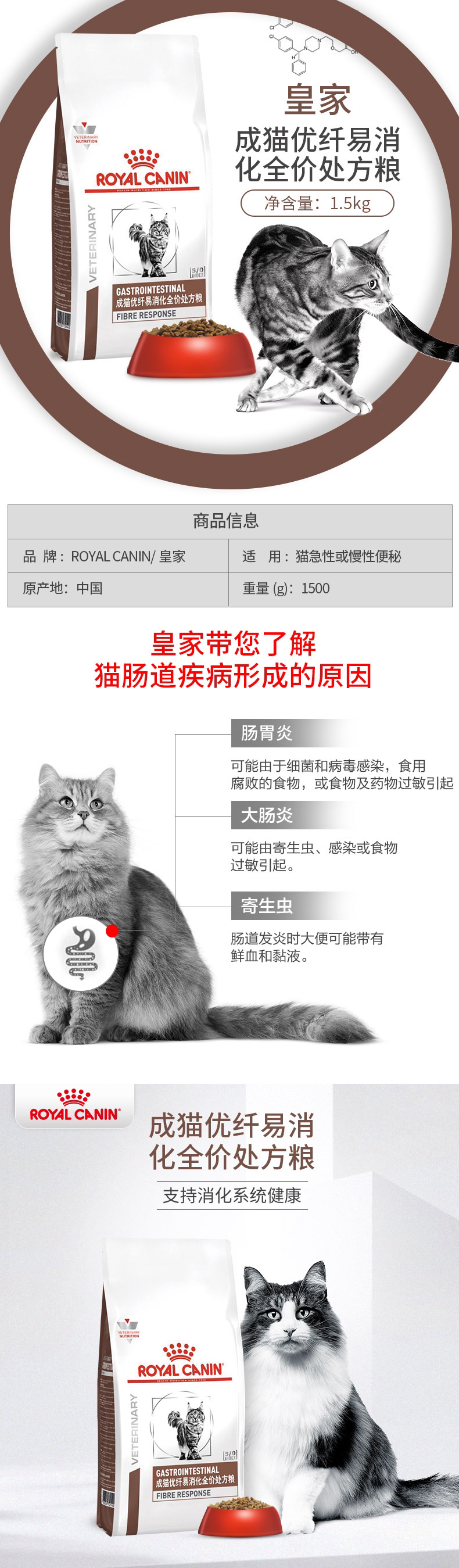 皇家成猫优纤易消化全价处方粮 猫咪急慢性便秘 添加高纤维促进肠道蠕动 易消化 1.5kg/袋