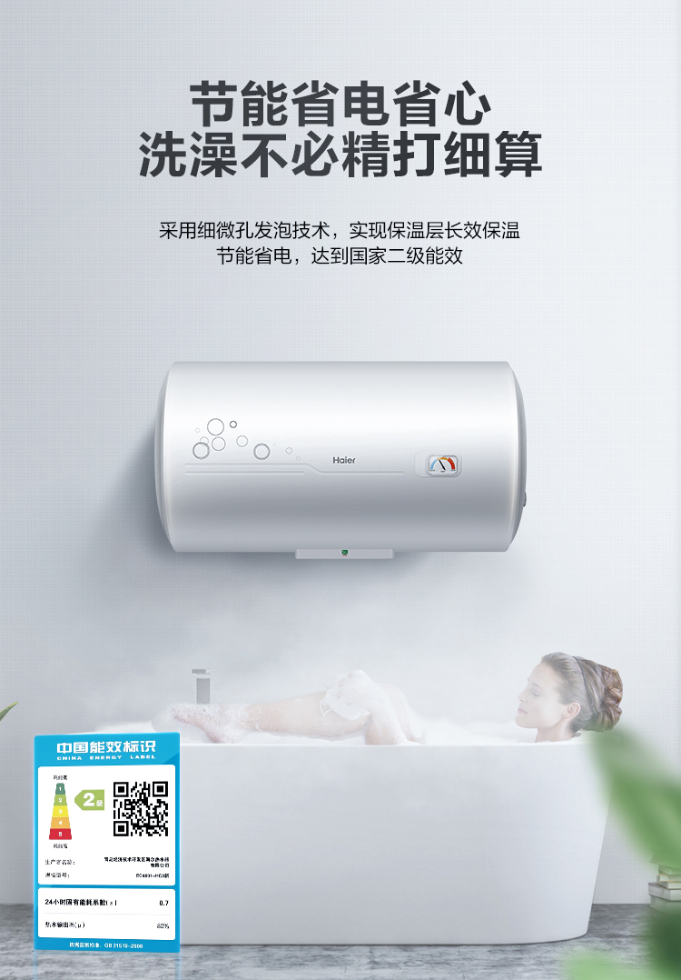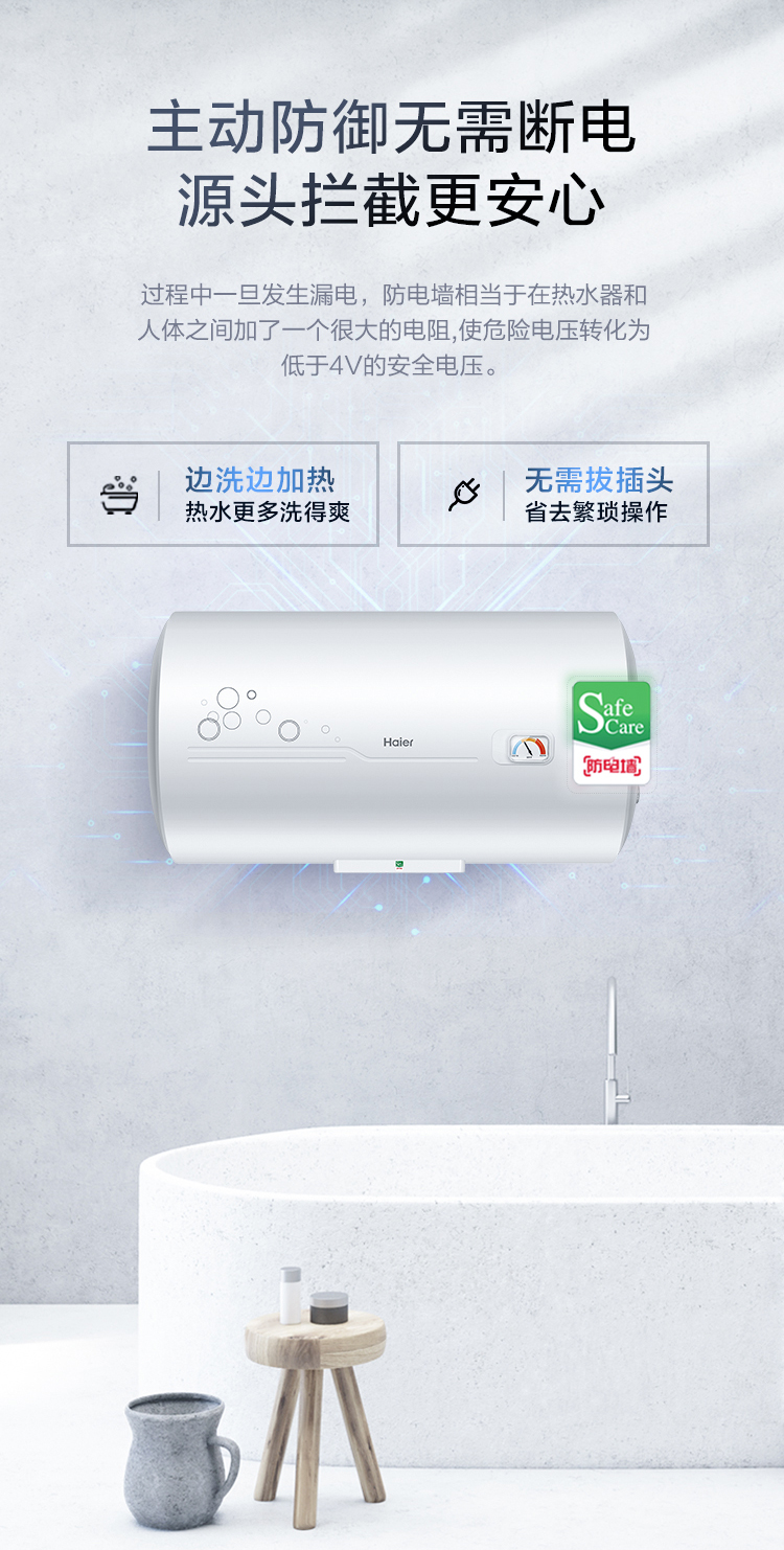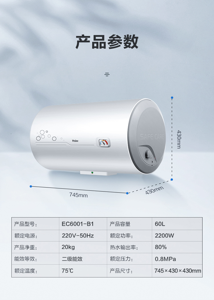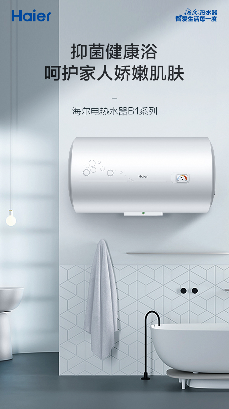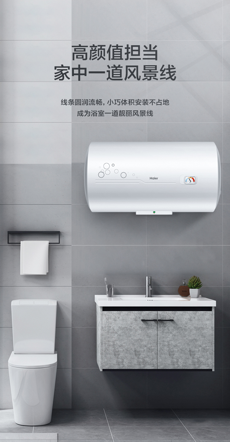 海尔(Haier)60升 电热水器 专利防电墙 金刚三层胆 钼金加热管 6年包修 EC6001-B1