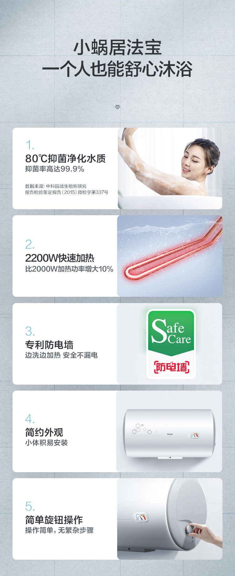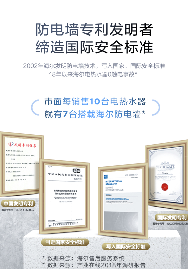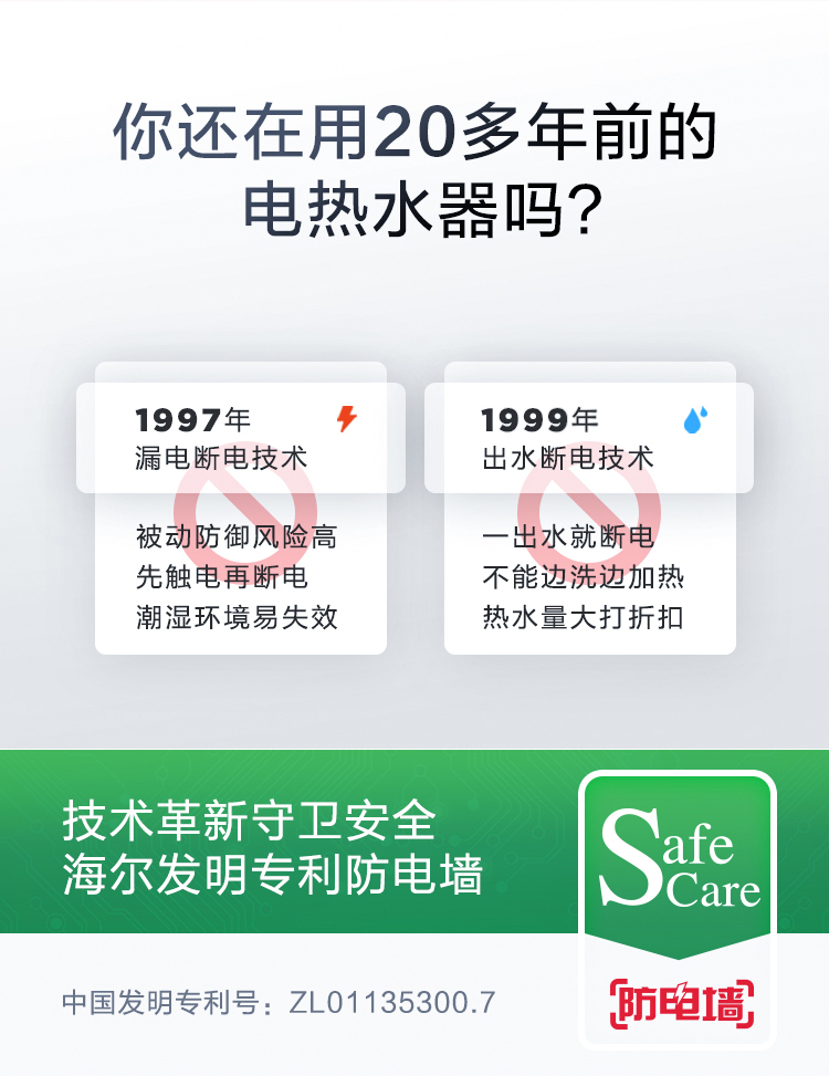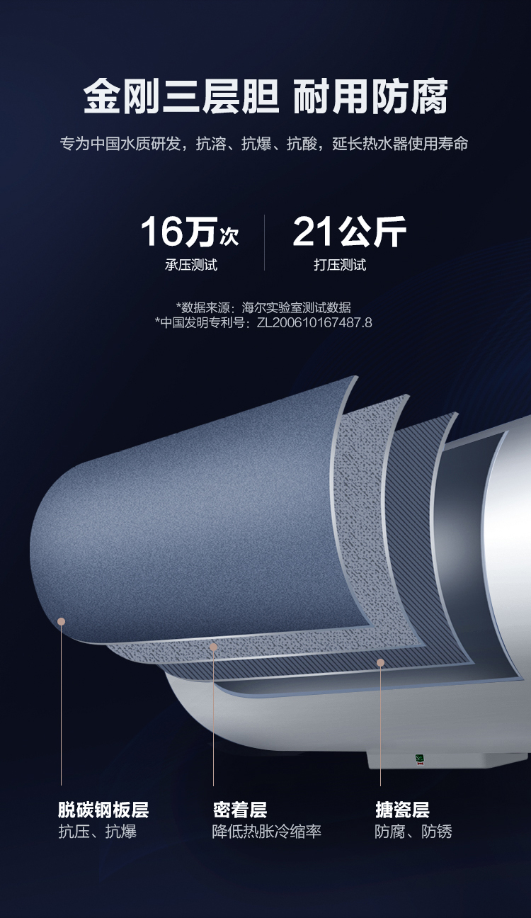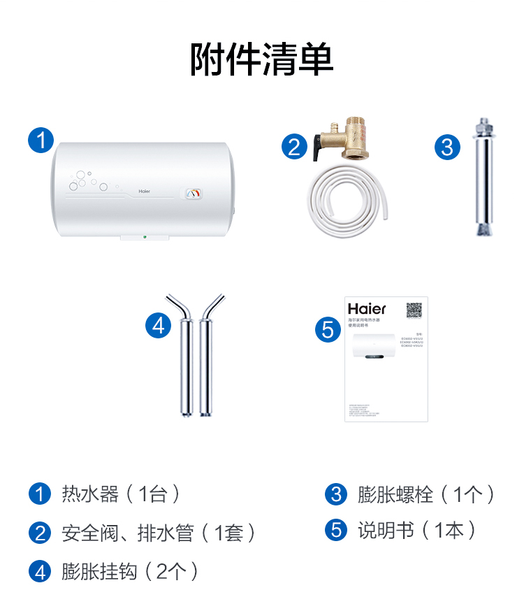 海尔(Haier)60升 电热水器 专利防电墙 金刚三层胆 钼金加热管 6年包修 EC6001-B1