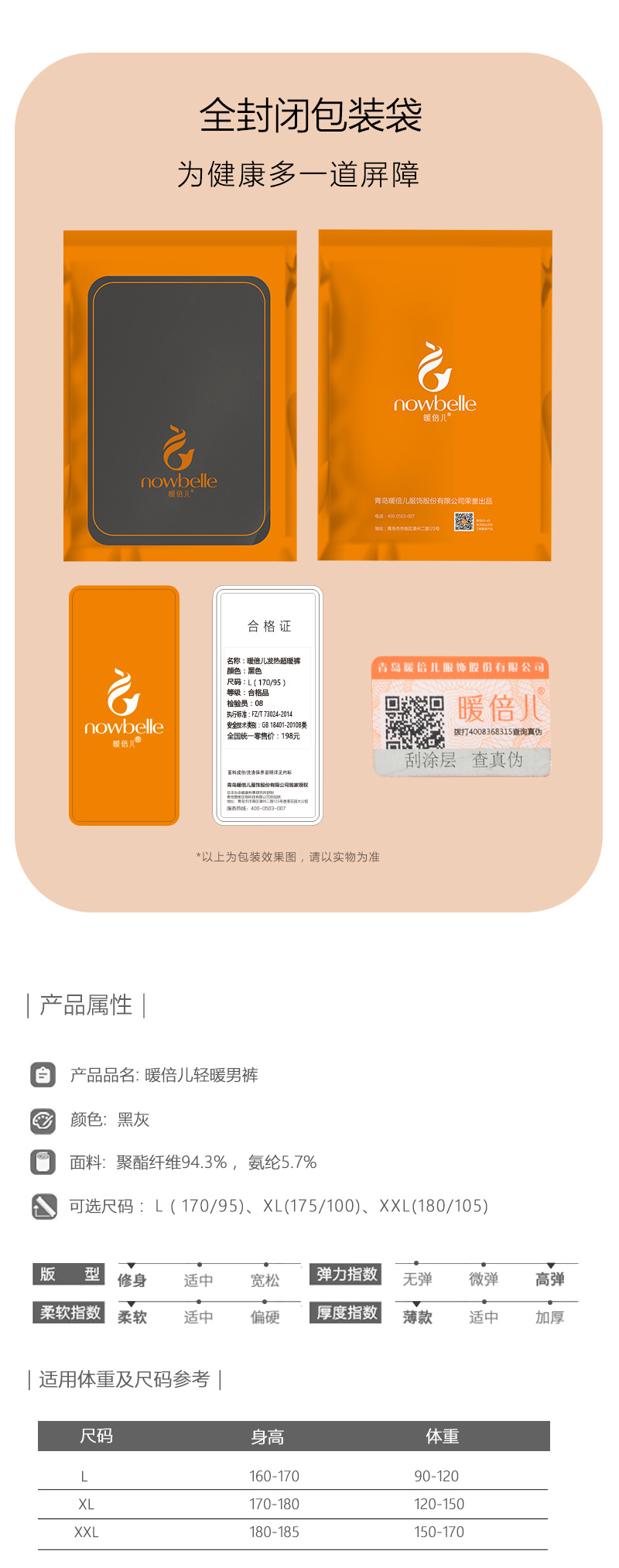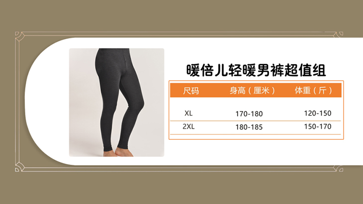 组件:暖倍儿轻暖男裤超值组,共5条