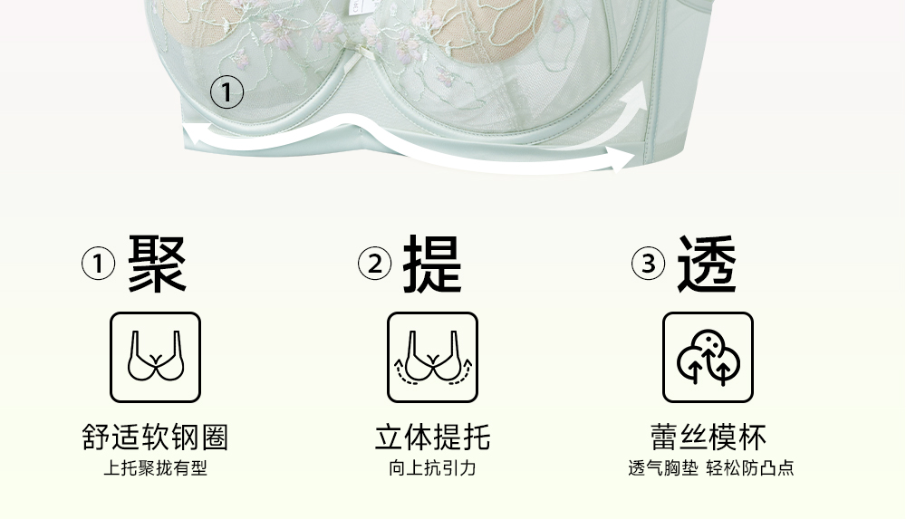 美季美优内衣女薄款聚拢收副乳防下垂上托蕾丝性感兔耳朵文胸