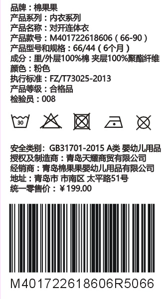 棉果果秋冬季男童女童内衣空气层对开连体衣连身衣哈衣M401722618606