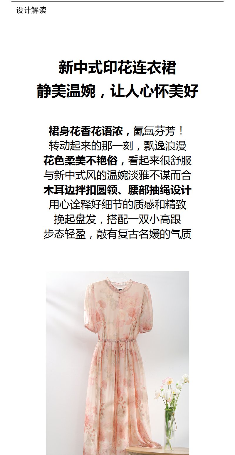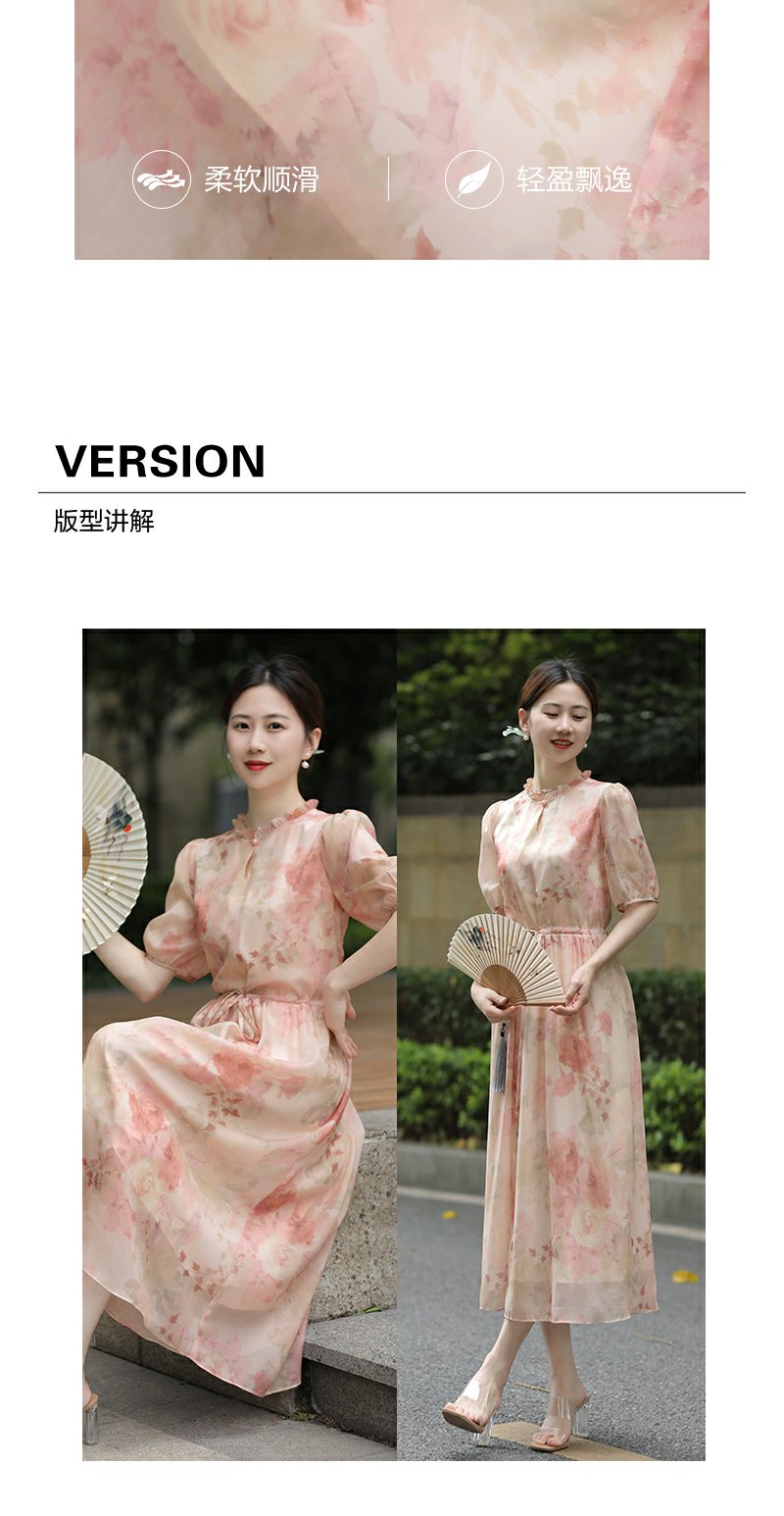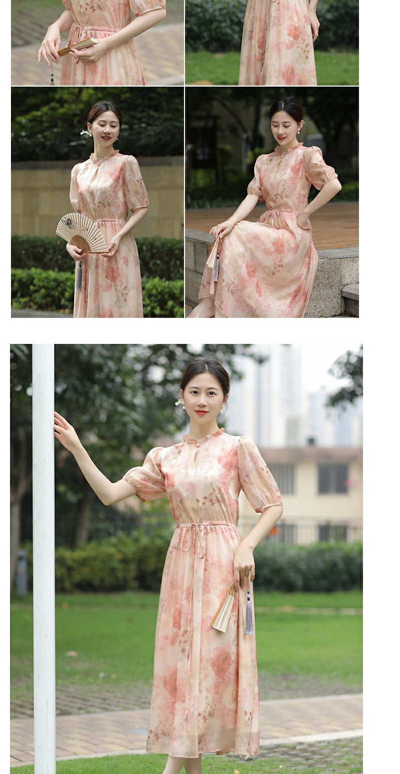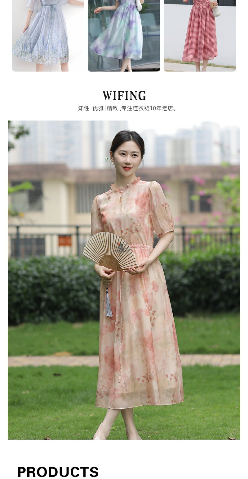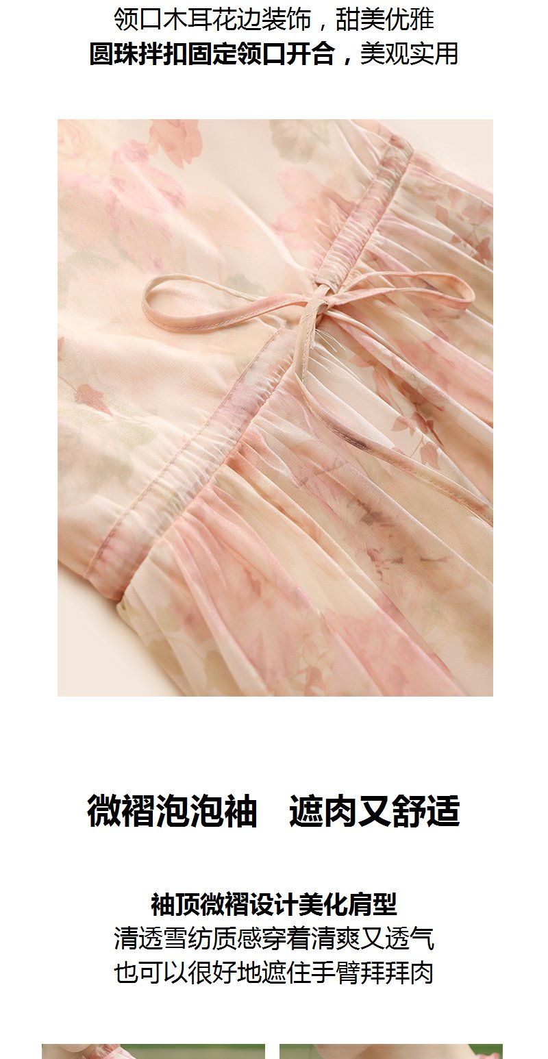 未风雪纺泡泡袖连衣裙女夏2025年夏季新款女装新中式收腰显瘦裙子