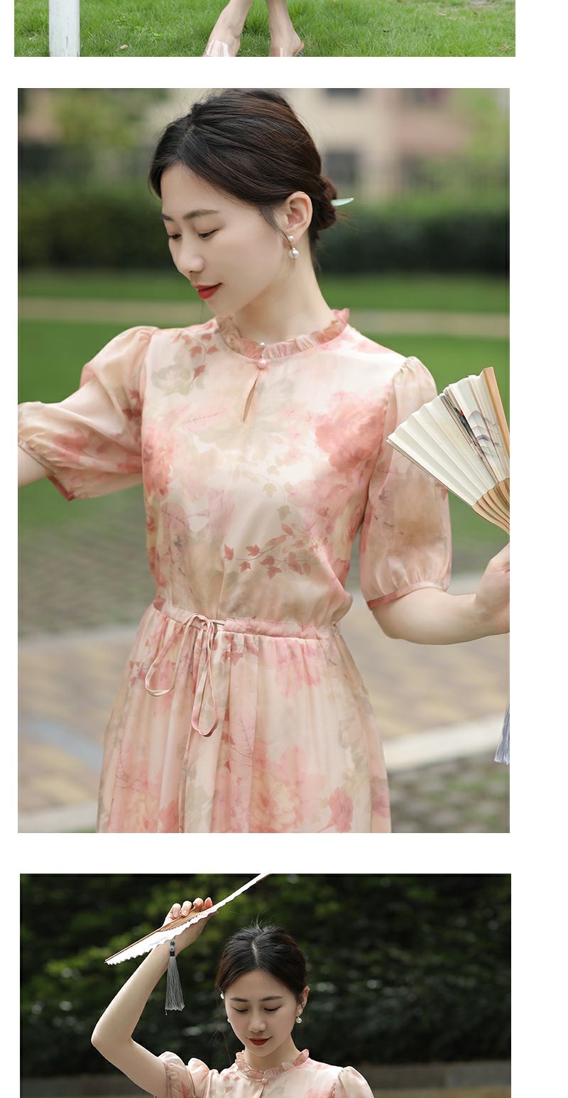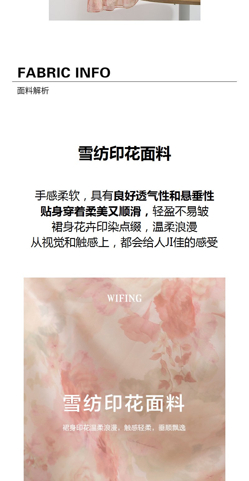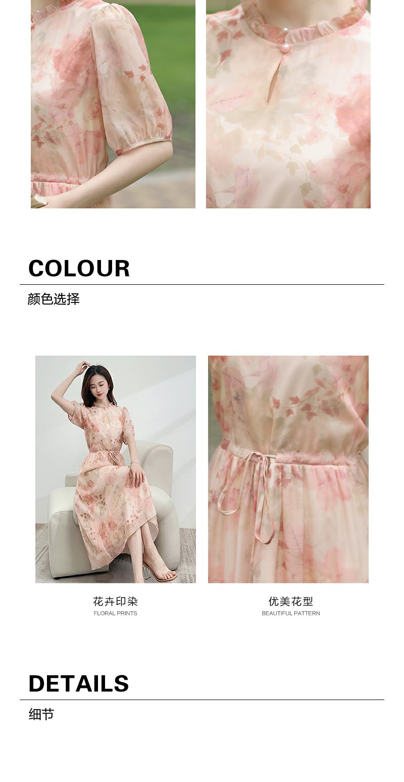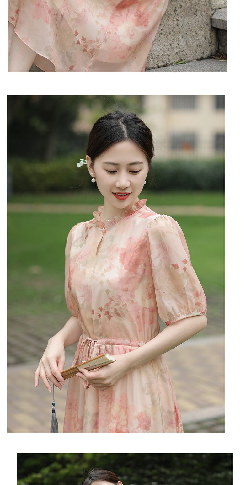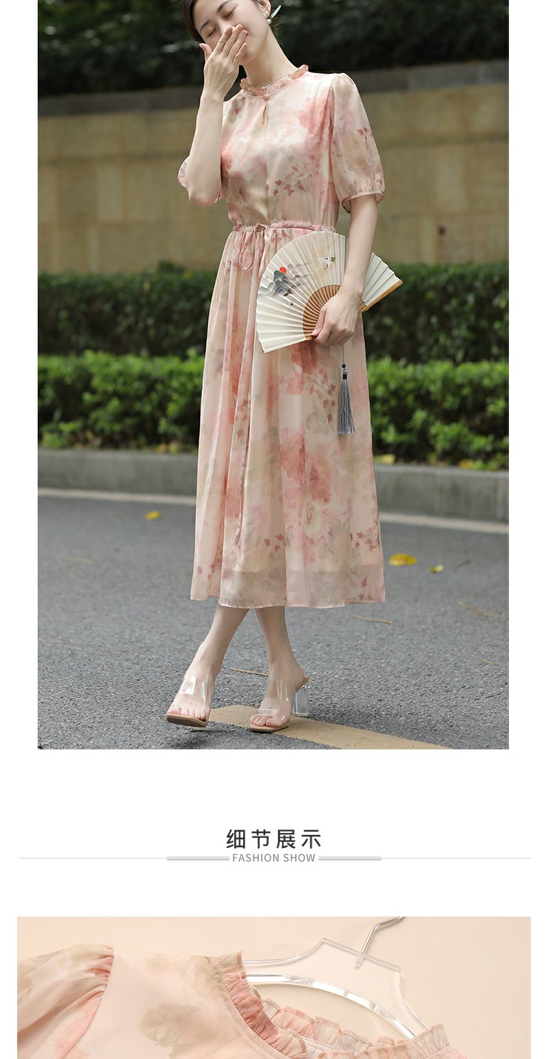 未风雪纺泡泡袖连衣裙女夏2025年夏季新款女装新中式收腰显瘦裙子