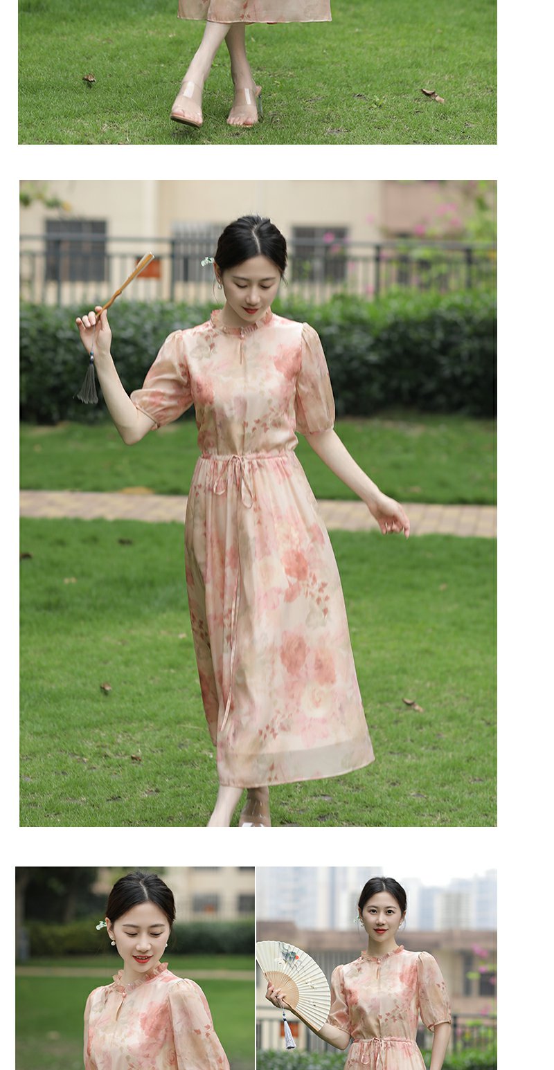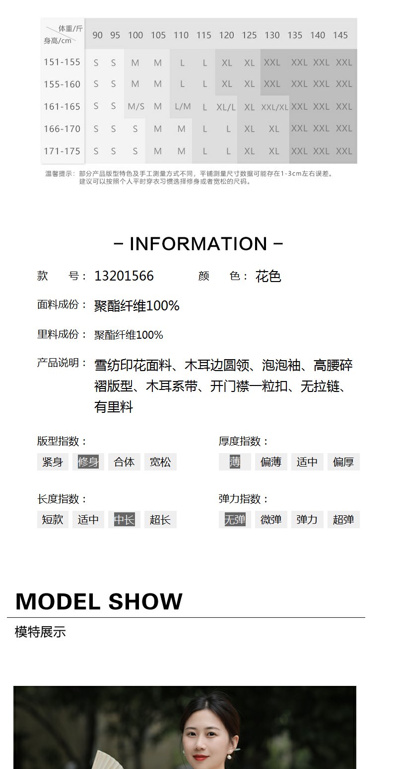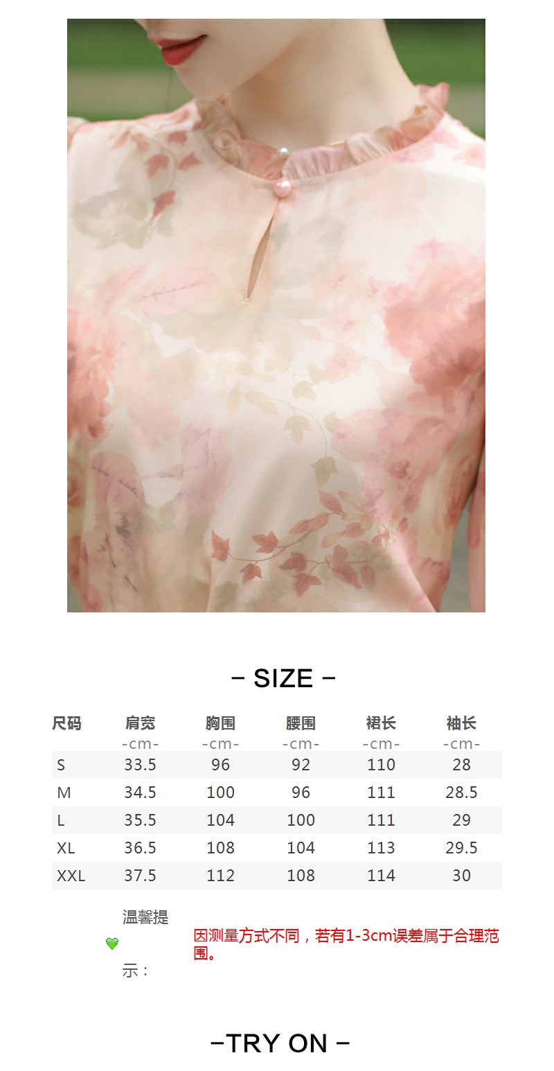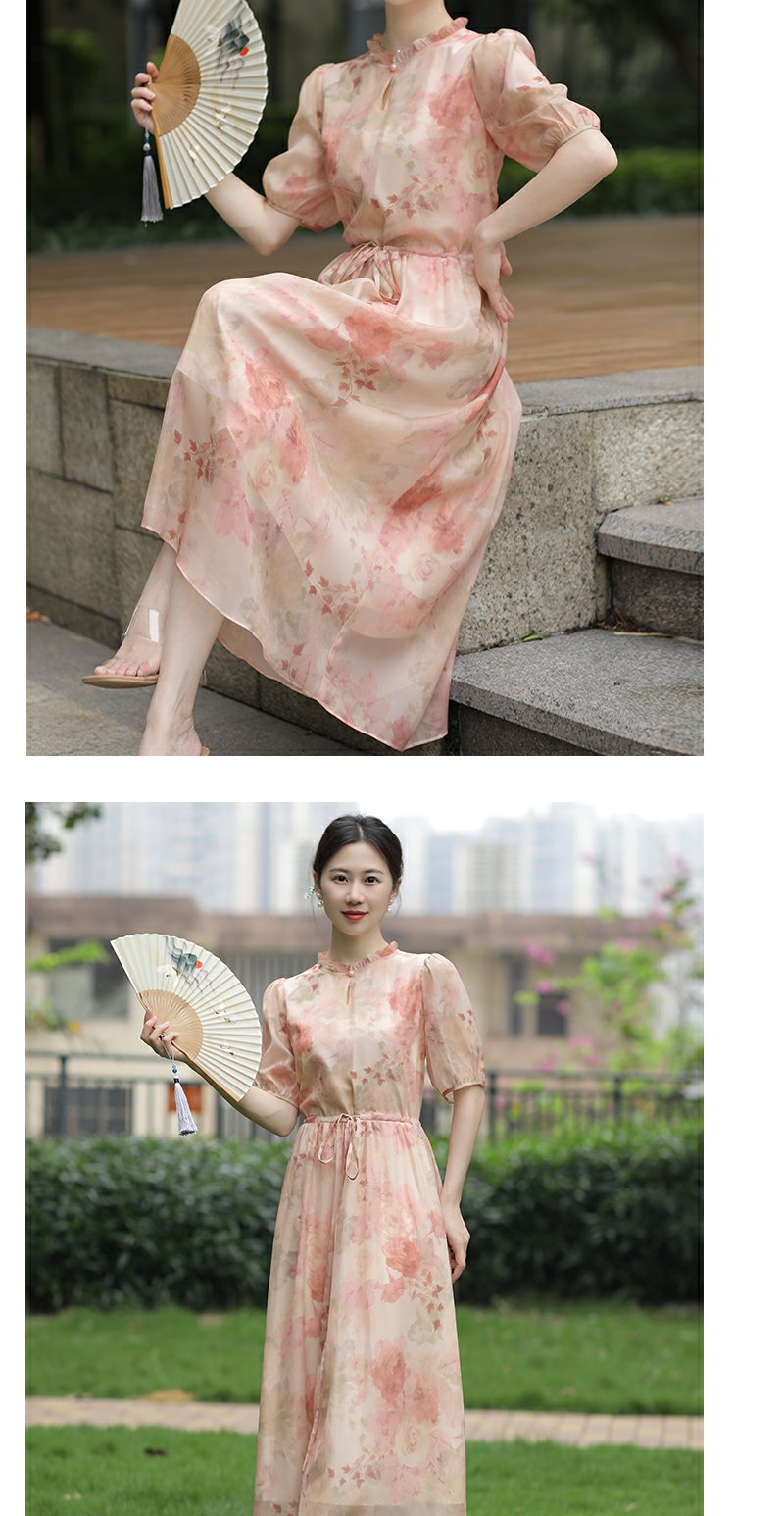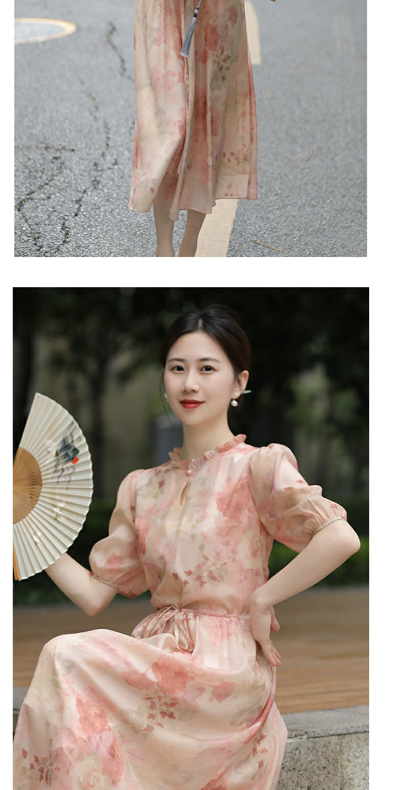 未风雪纺泡泡袖连衣裙女夏2025年夏季新款女装新中式收腰显瘦裙子