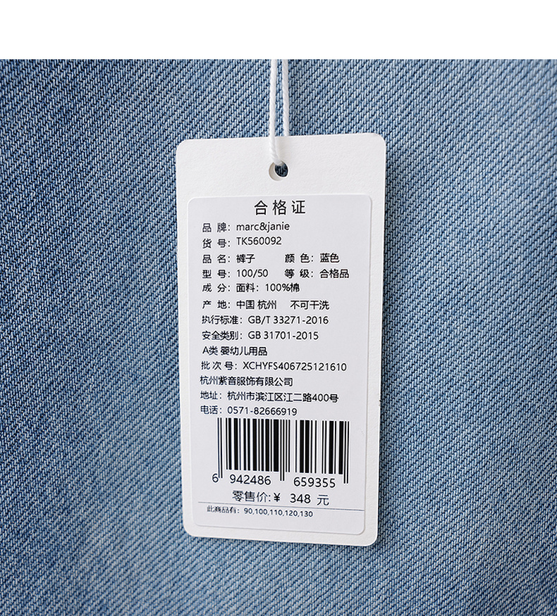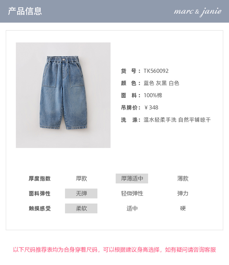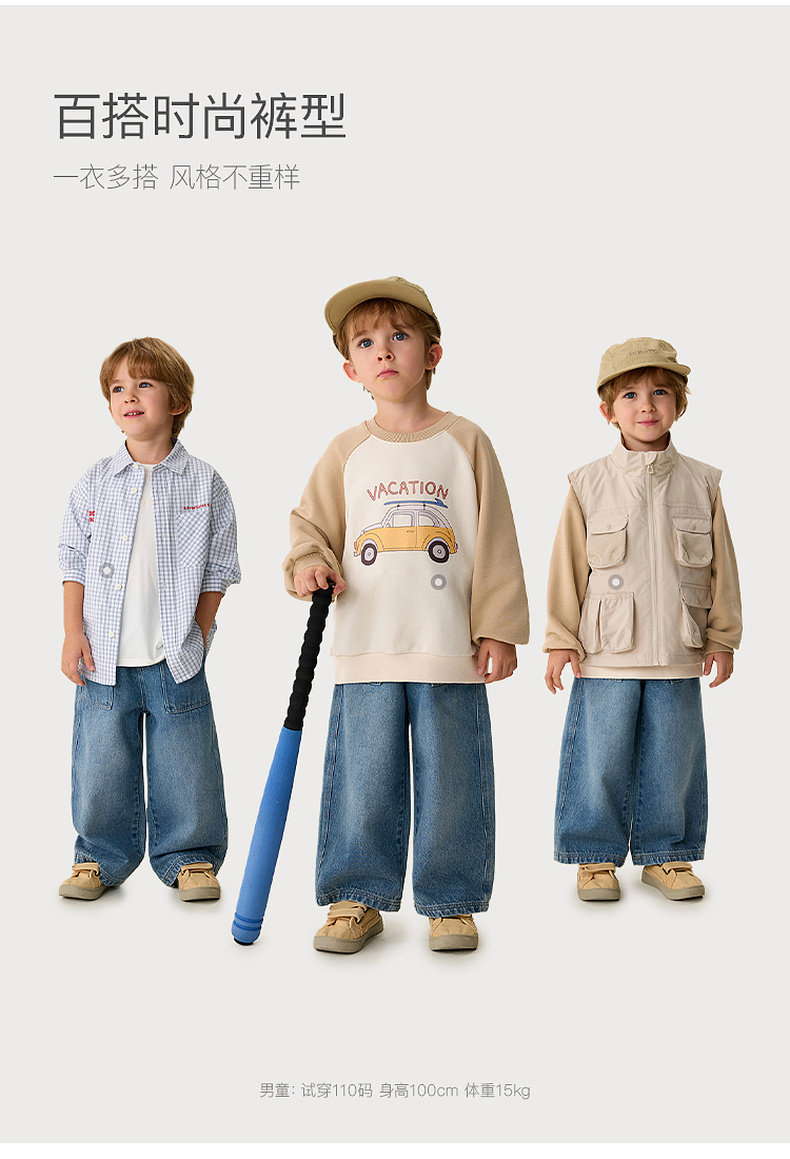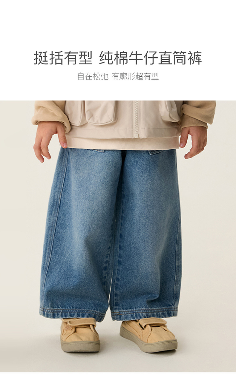马克珍妮挺括有型男童纯棉牛仔直筒裤2026年春装新款560092