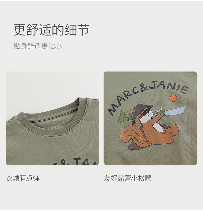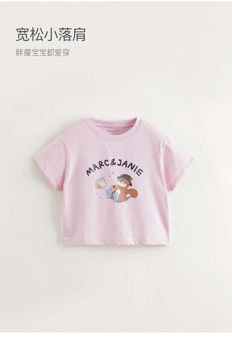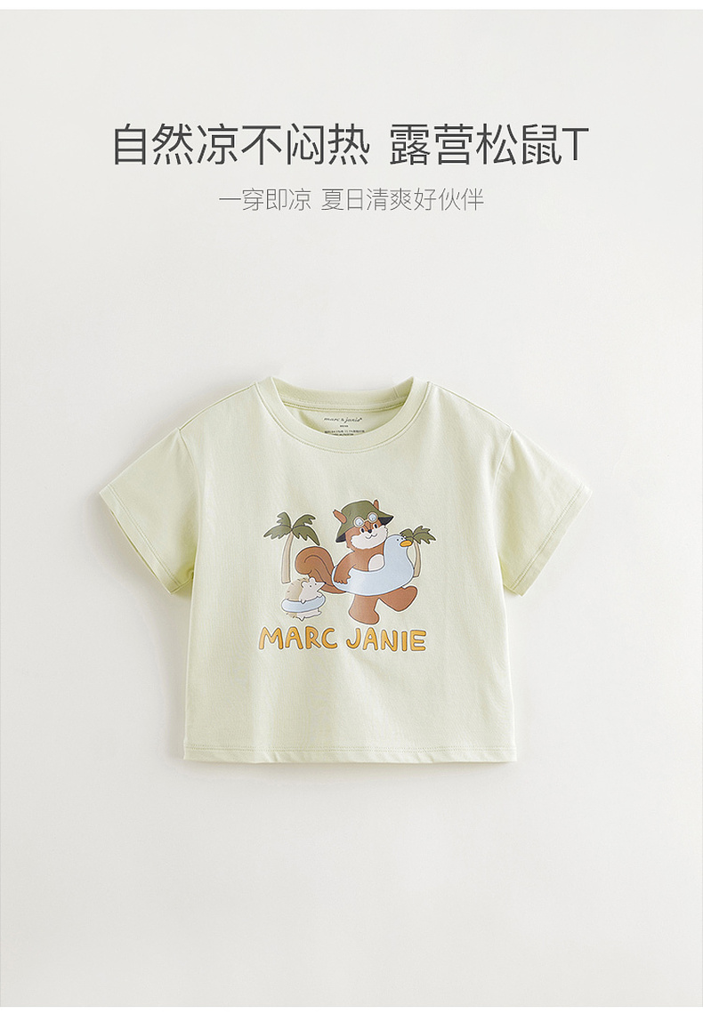 马克珍妮男女童露营松鼠短袖T恤 宝宝上衣2025年夏装新款550576