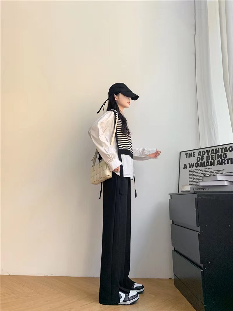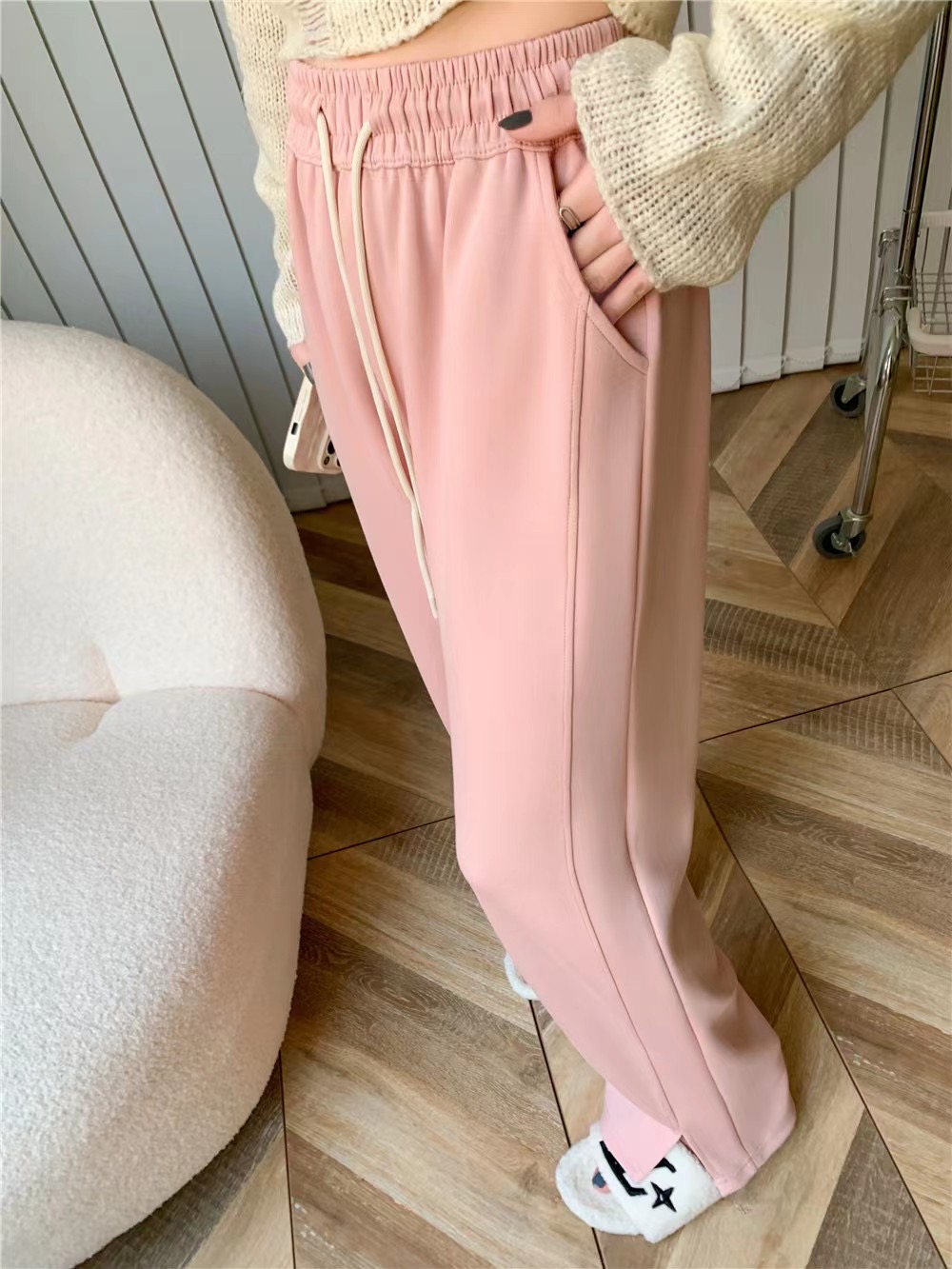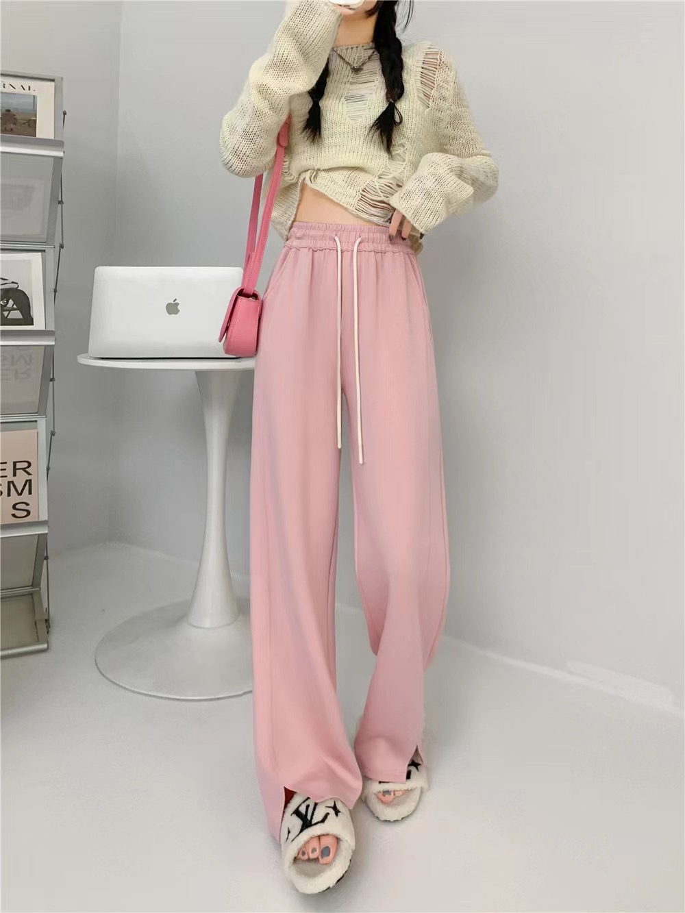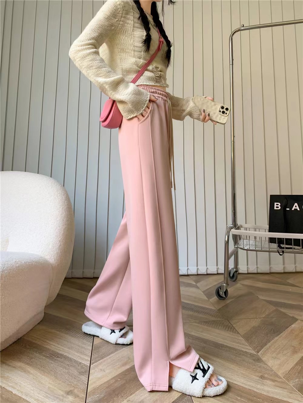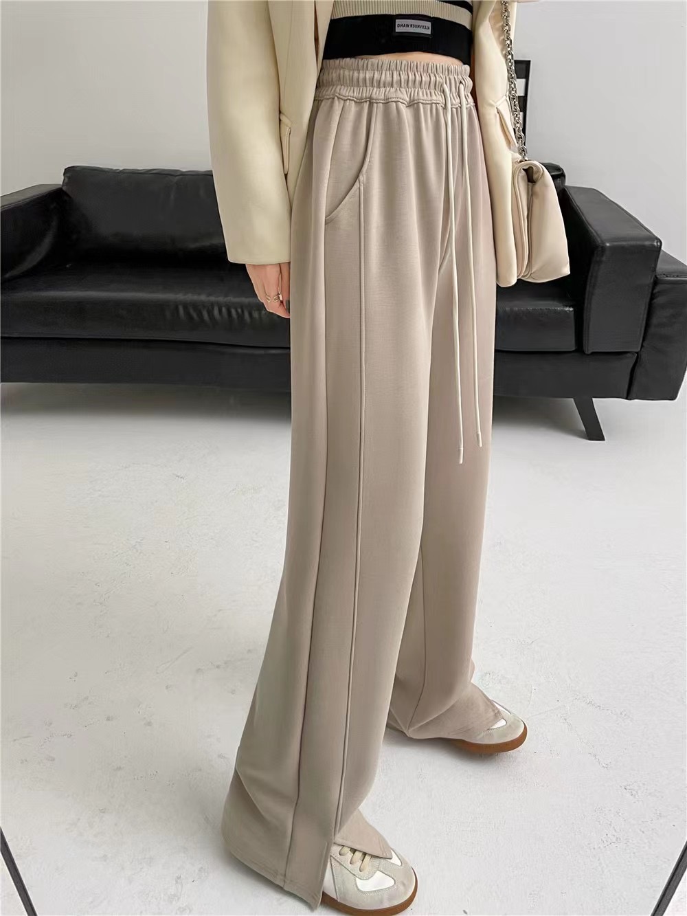 【YW】无忧购高腰弹力腰围空气棉云朵裤腿开叉阔腿裤8566 (2.17截单后7天发货)25年清仓捡漏