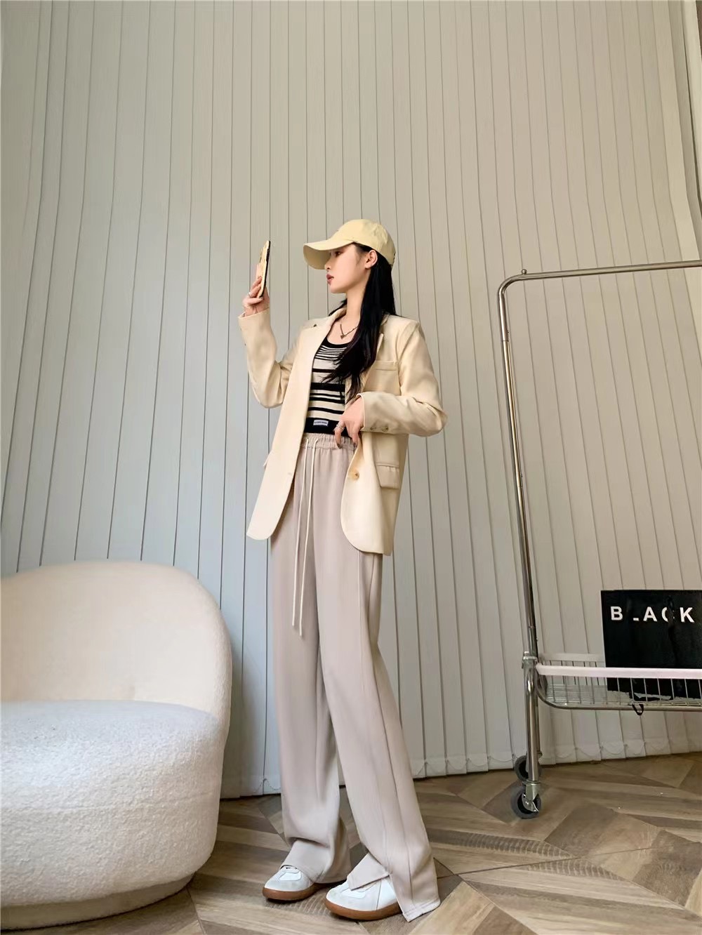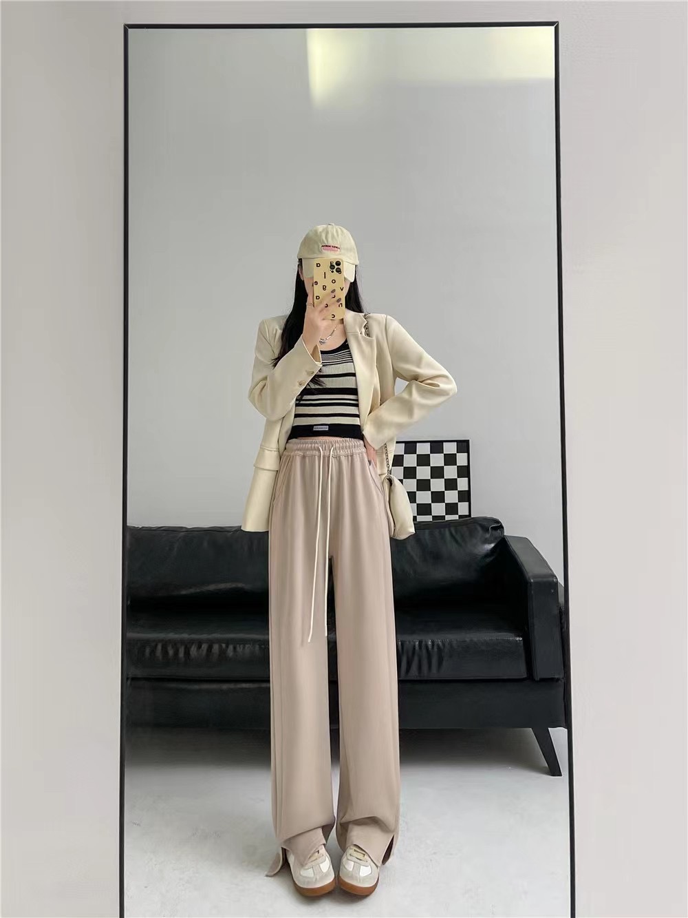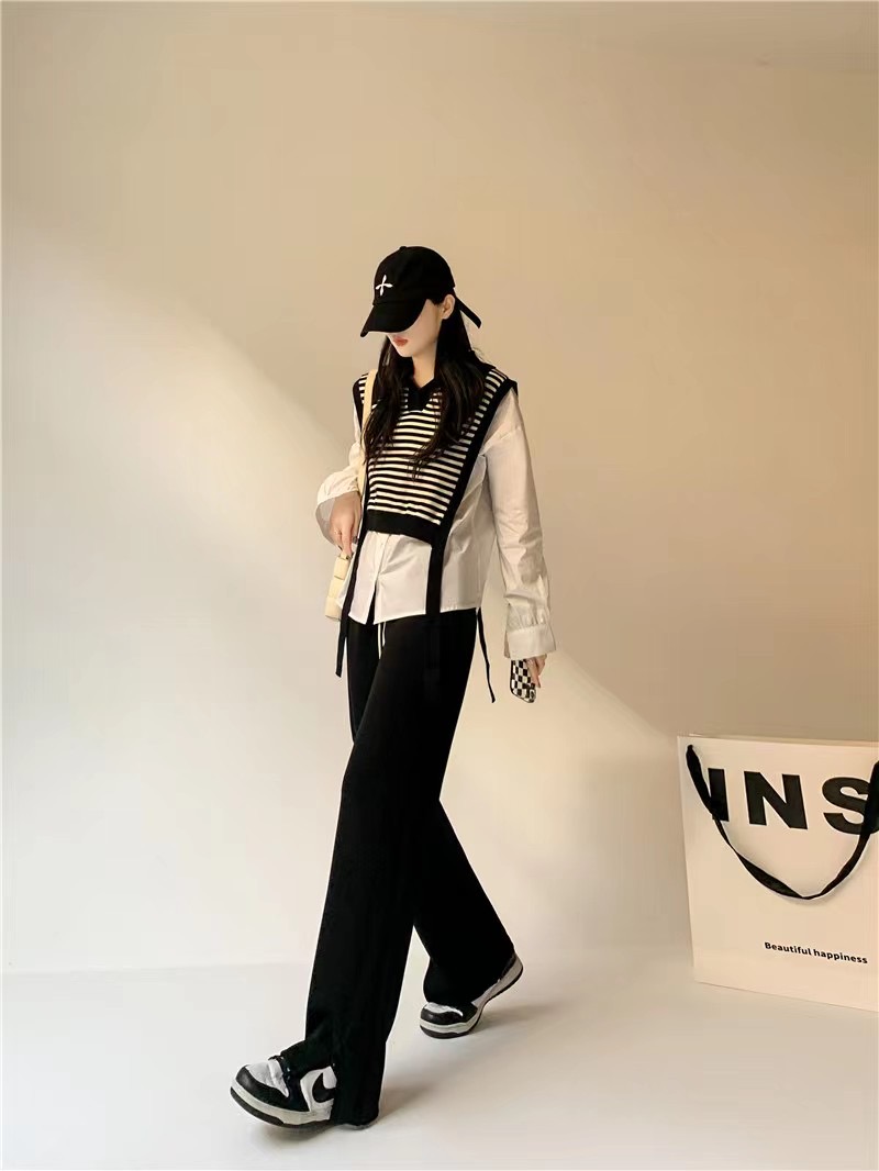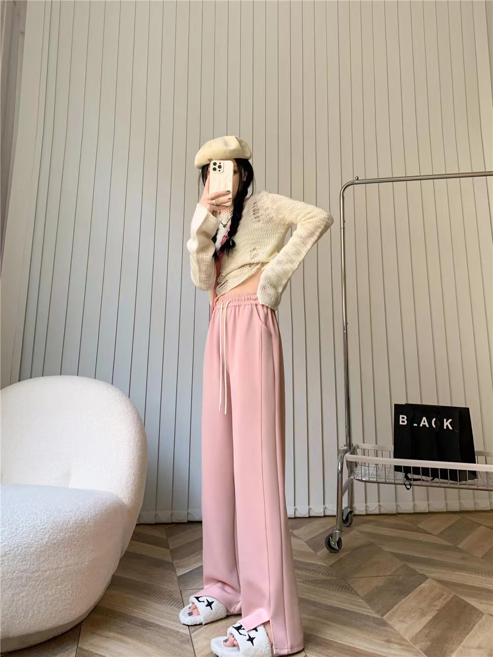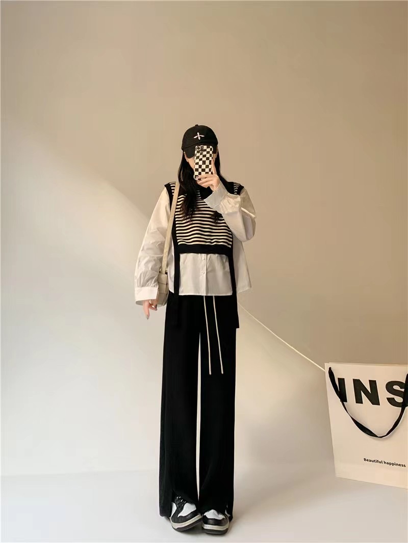 【YW】无忧购高腰弹力腰围空气棉云朵裤腿开叉阔腿裤8566 (2.17截单后7天发货)25年清仓捡漏
