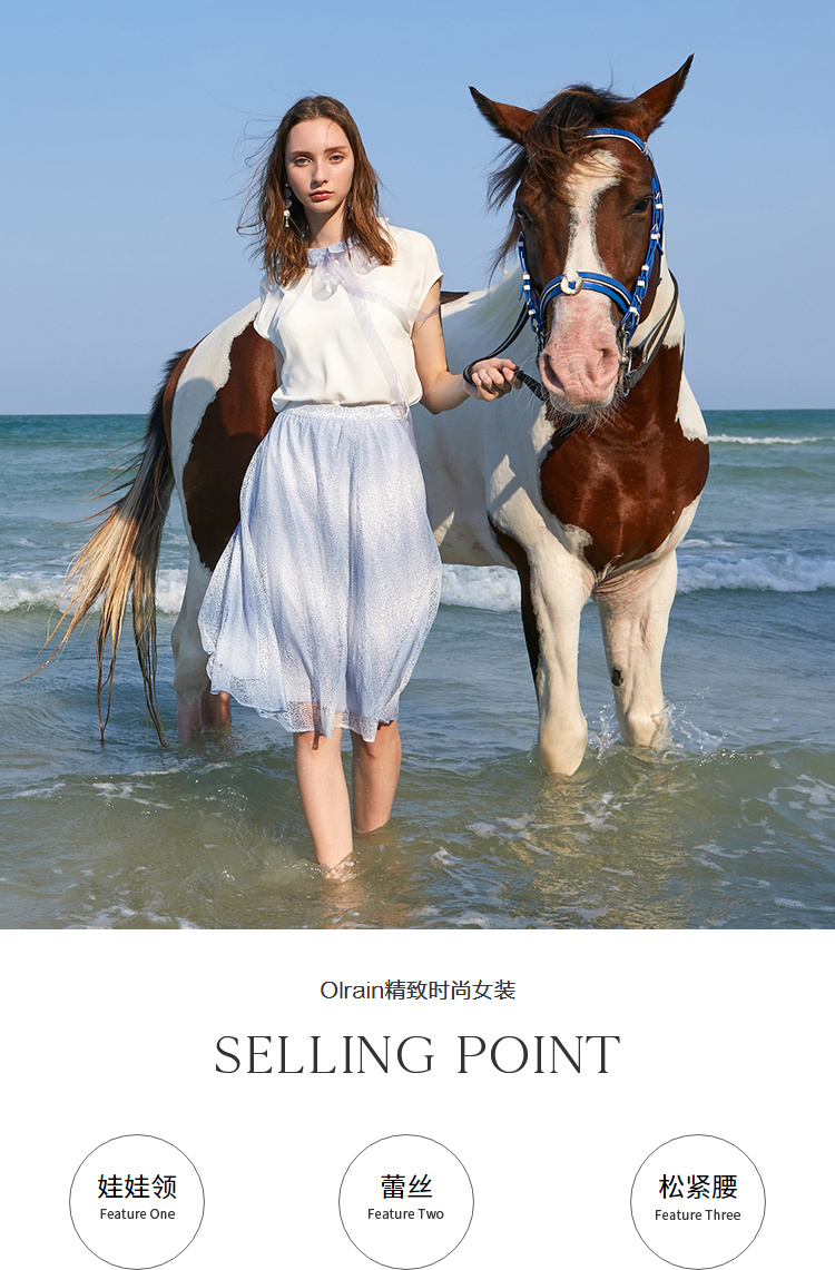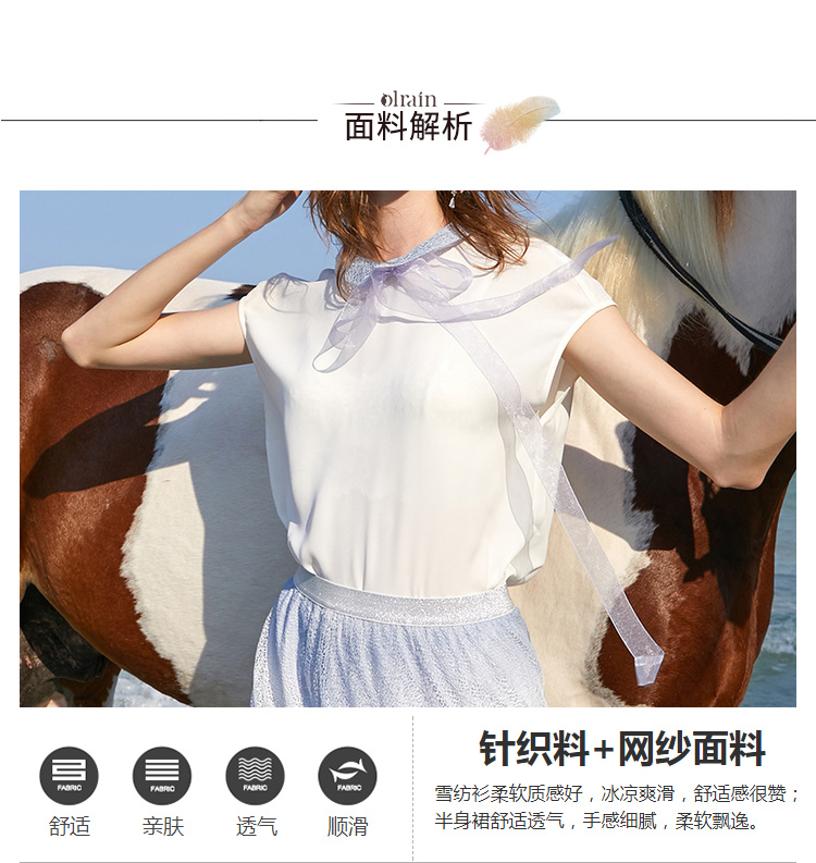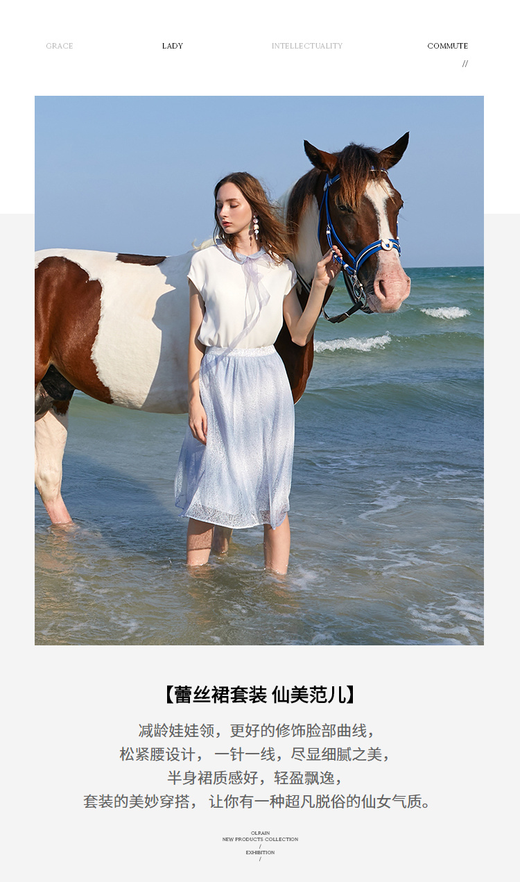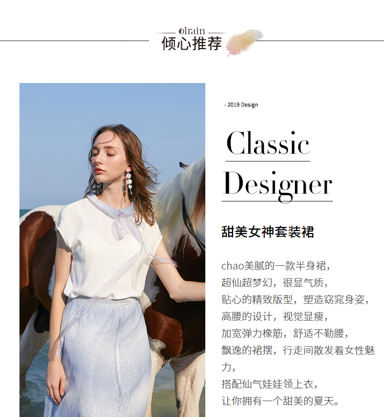 欧芮儿夏装2019新款女装娃娃领雪纺衫宽松两件套蕾丝半身裙套装