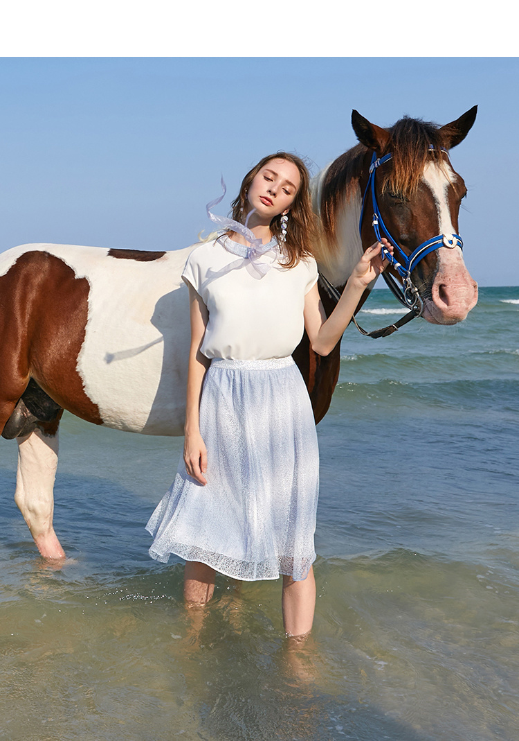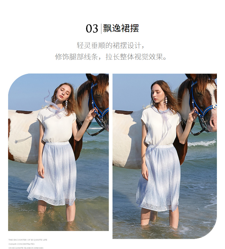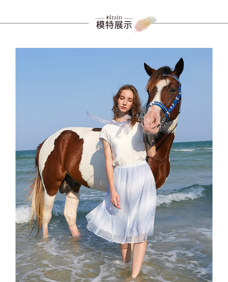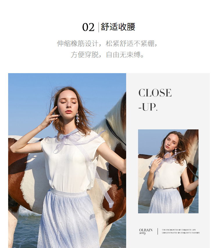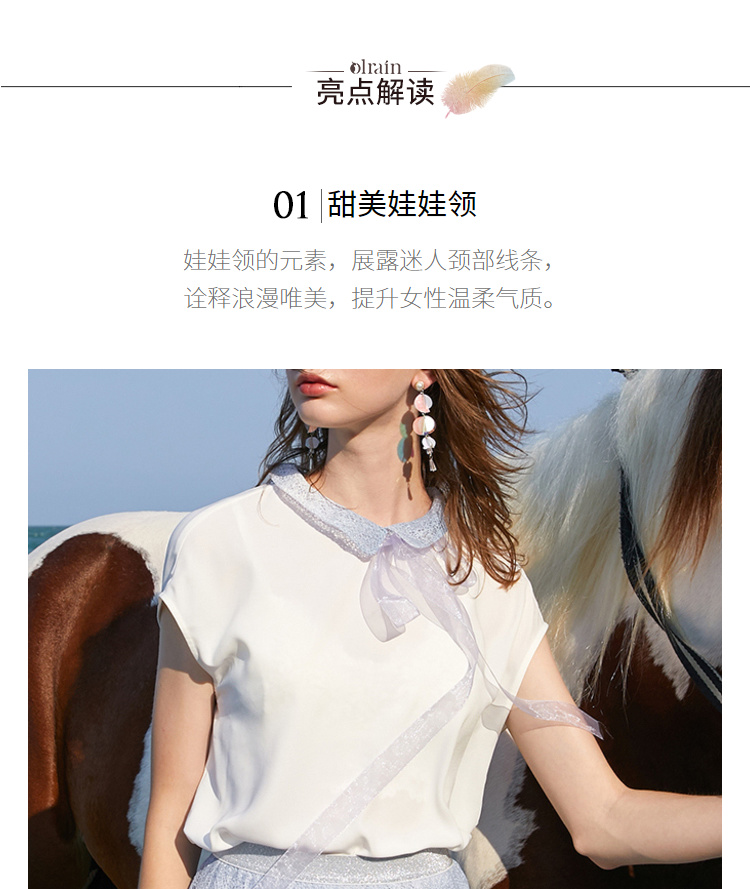 欧芮儿夏装2019新款女装娃娃领雪纺衫宽松两件套蕾丝半身裙套装