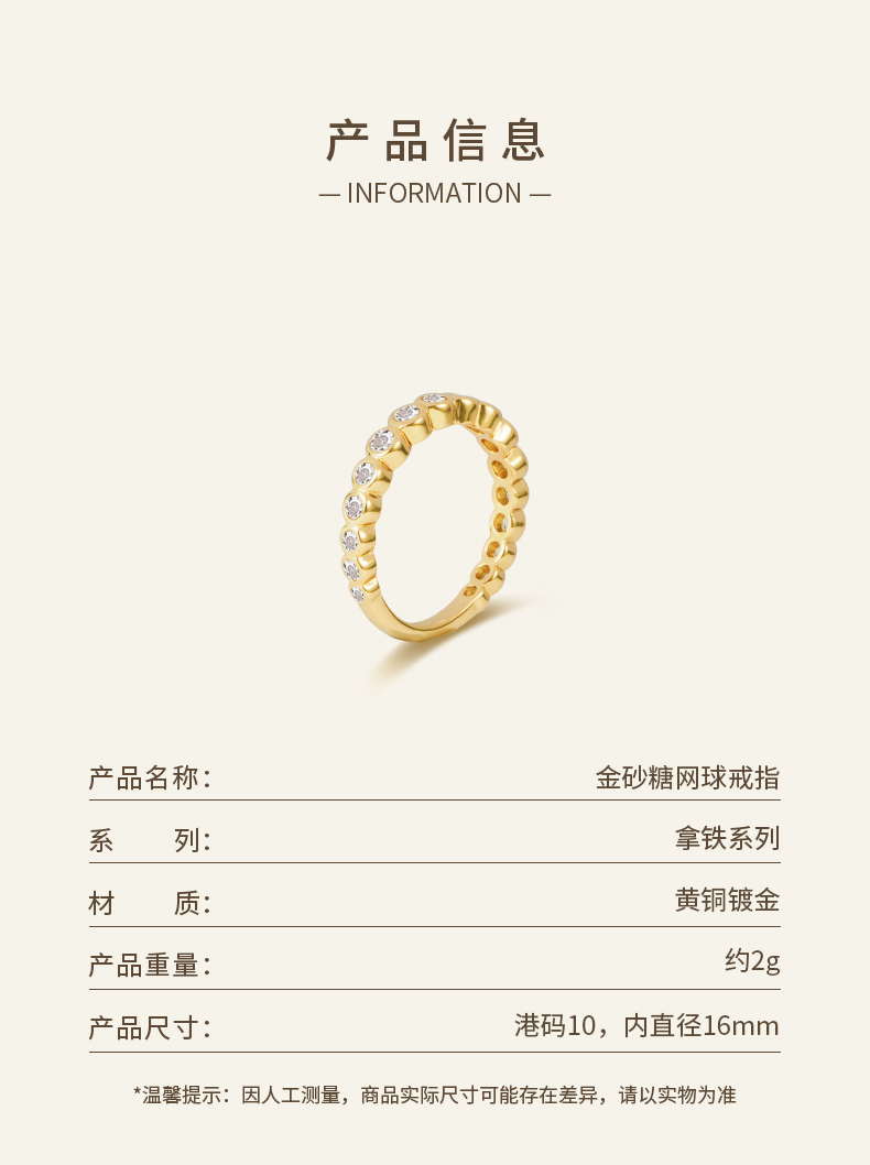 【毛晓彤&万妮达同款】Lagomist拿铁系列 | 金/银砂糖网球戒指(港码12-14)