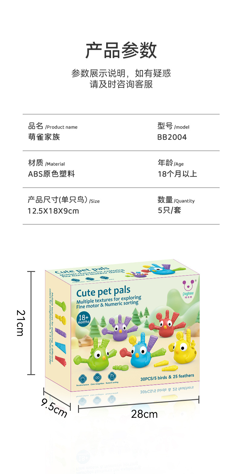 【萌雀家族 精细动作 数字训练教具】儿童国潮萌雀益智早教认知 启蒙动作玩具