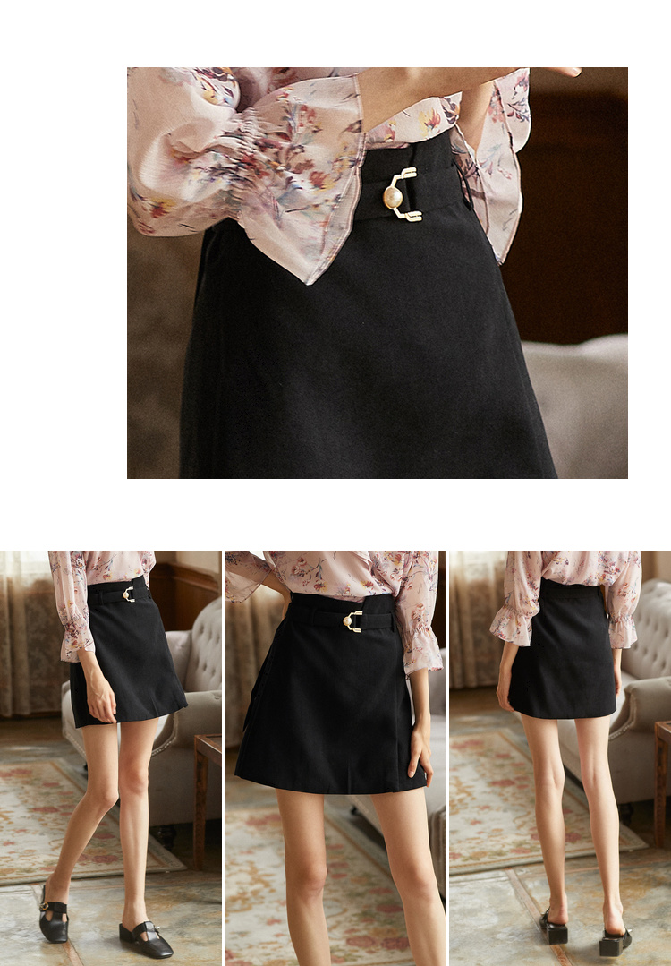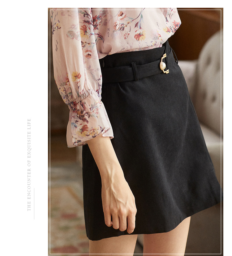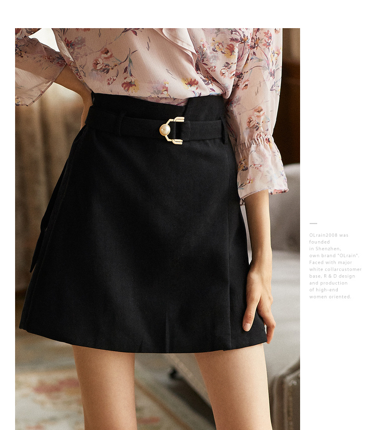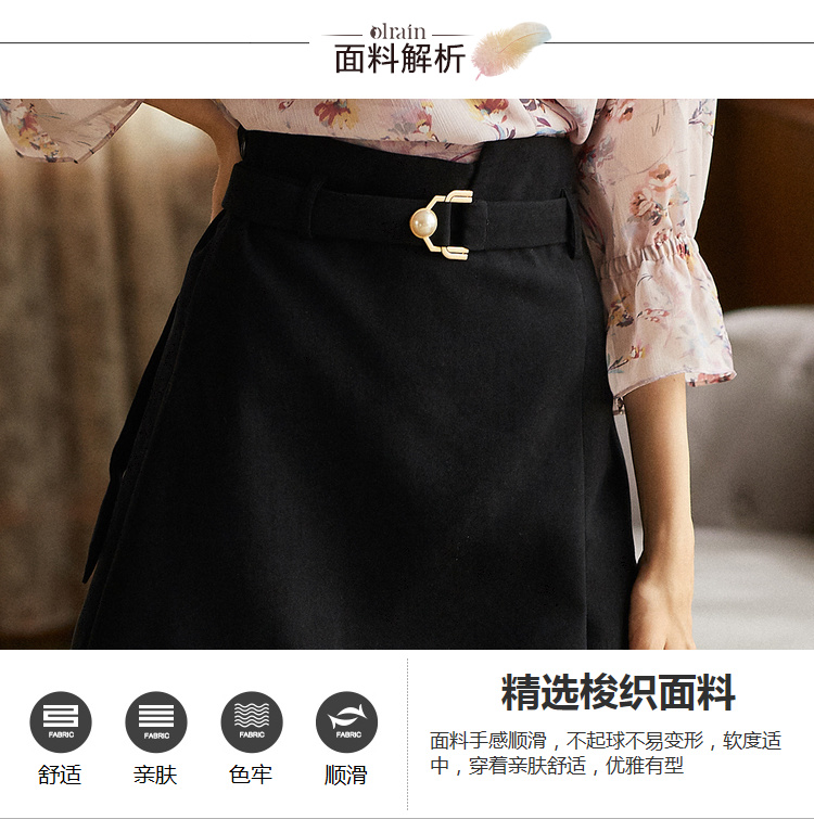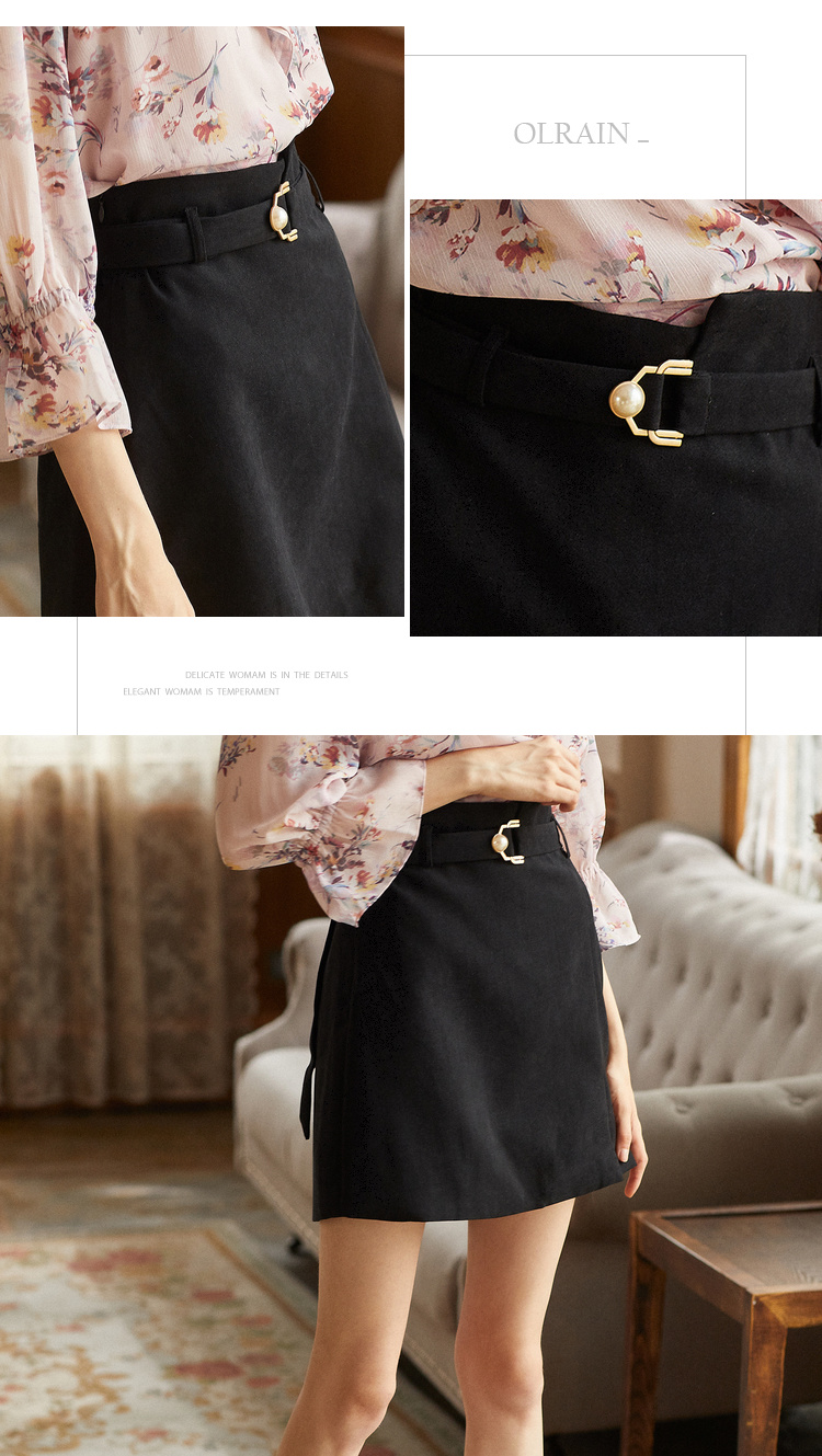 欧芮儿2018秋装新品女装收腰黑色A字裙女休闲百搭半身裙女短裙