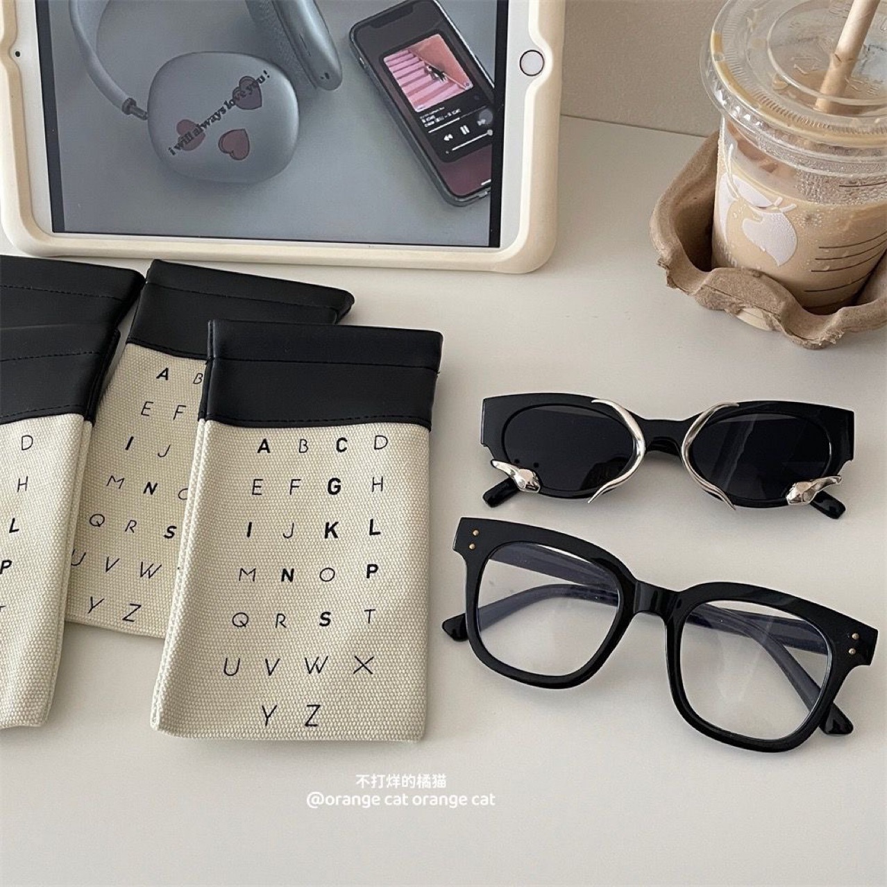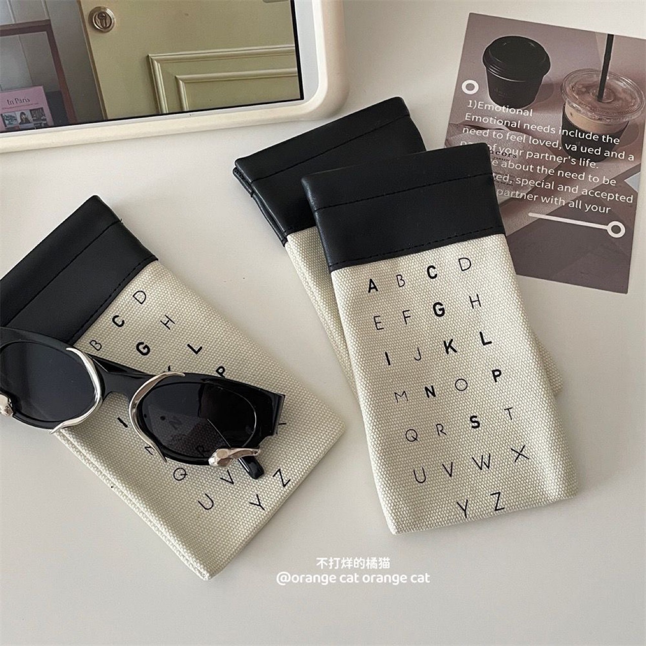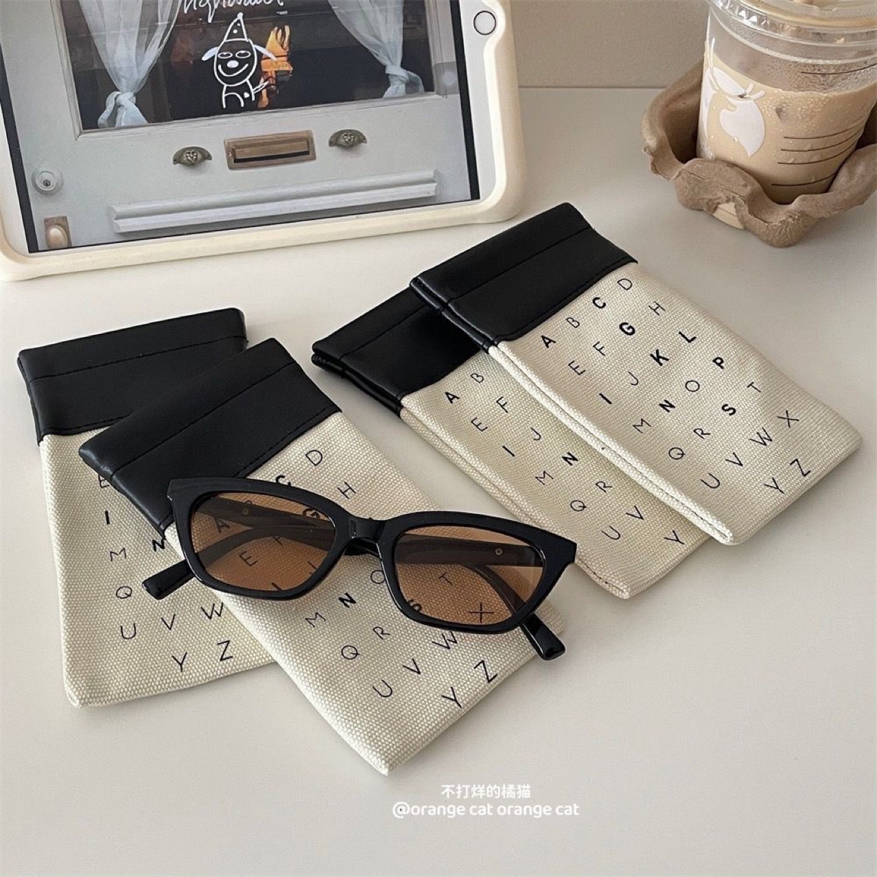 「复古简约!高级感墨镜袋」推荐款复古拼接帆布收纳整理袋 近视太阳眼镜袋简约高级墨镜袋子字母