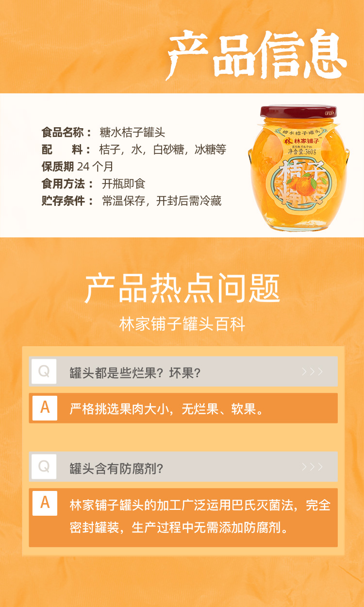 糖水桔子罐头360g*5罐