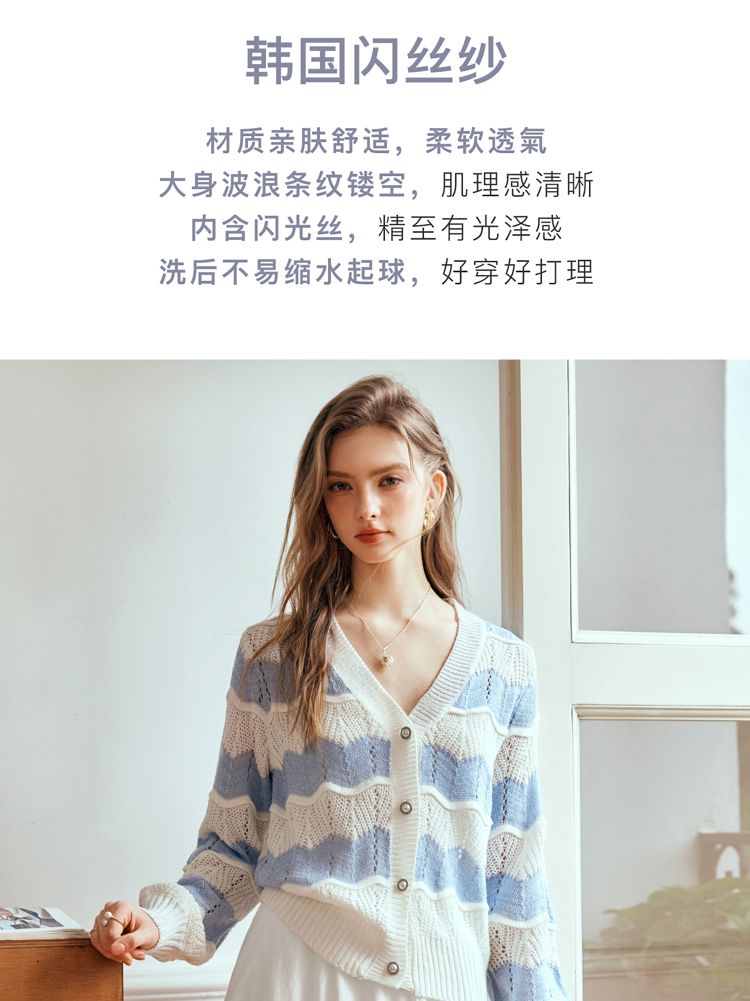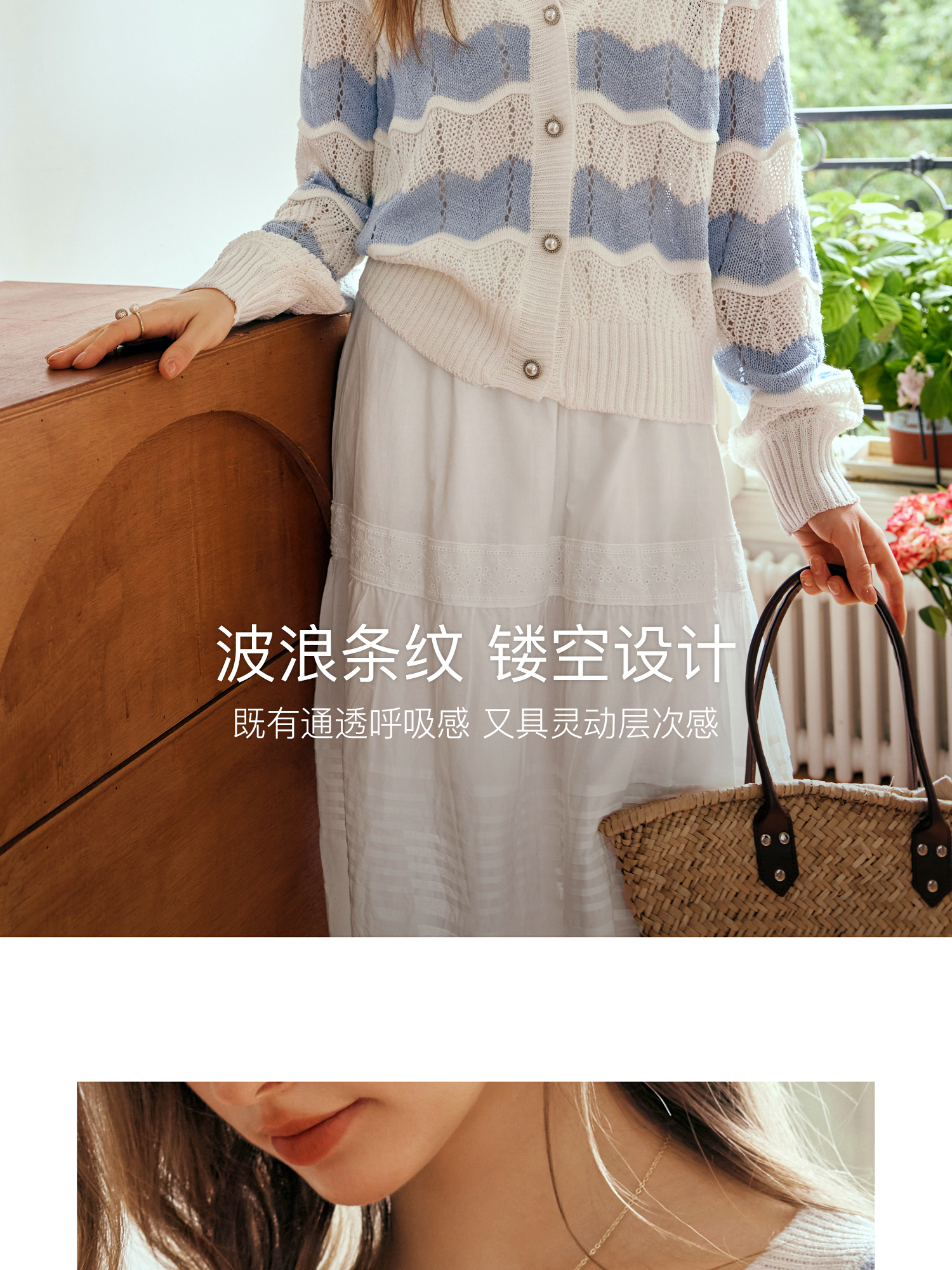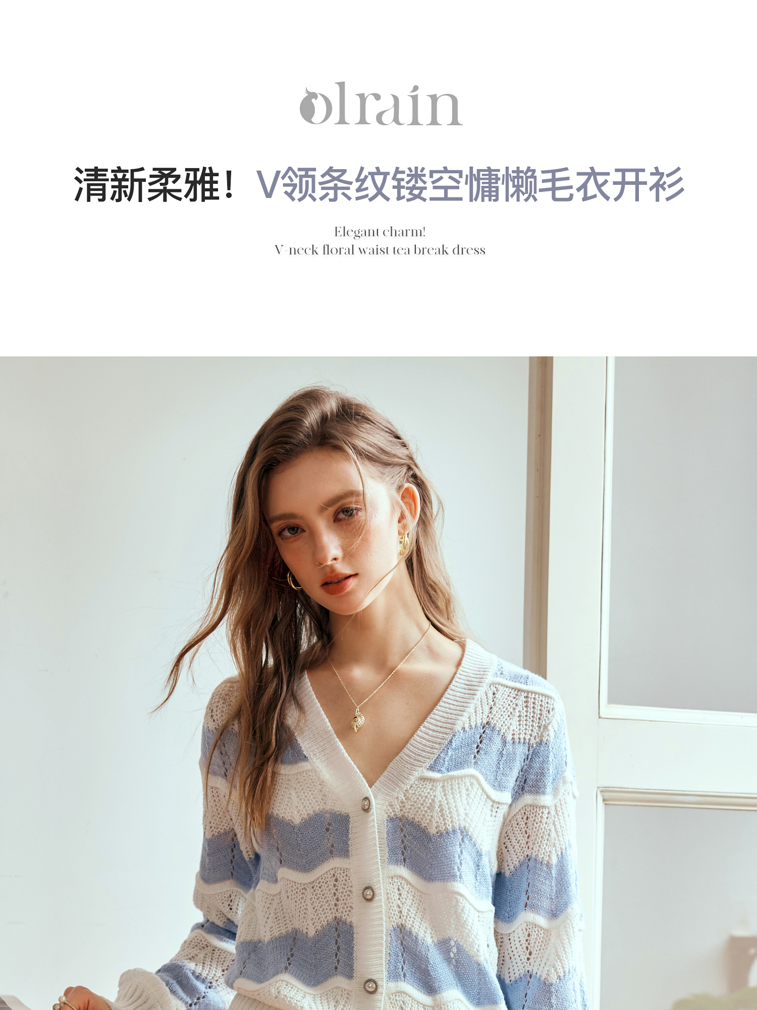 OLrain欧芮儿法式条纹毛衣女秋季2024年新款小香风镂空慵懒风开衫
