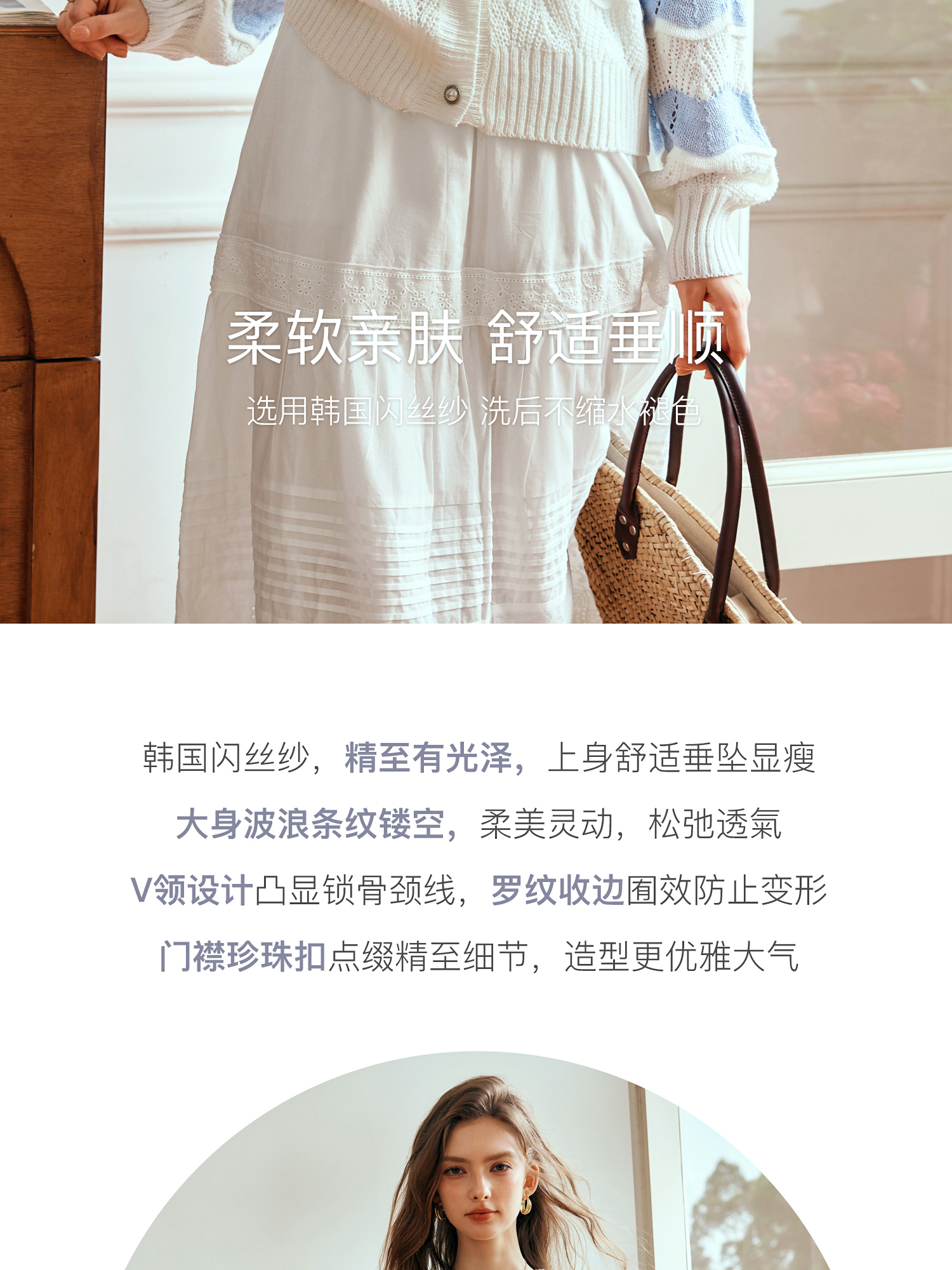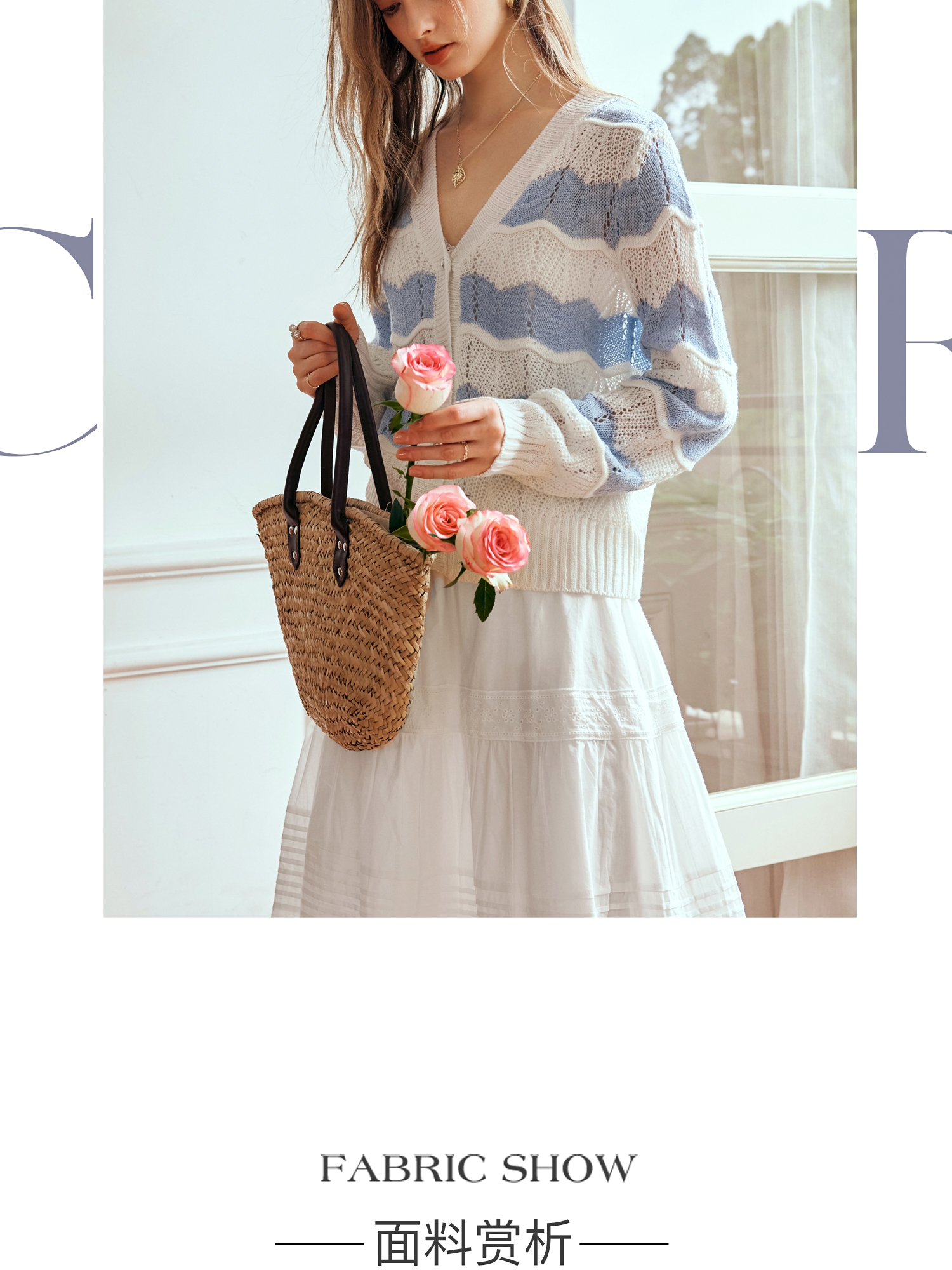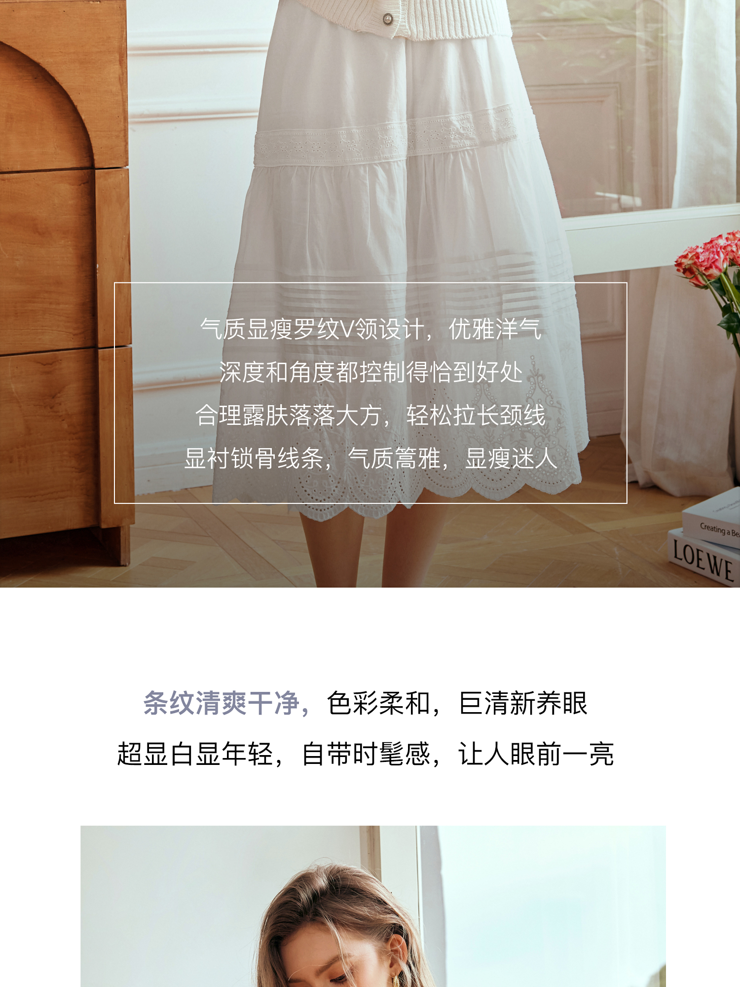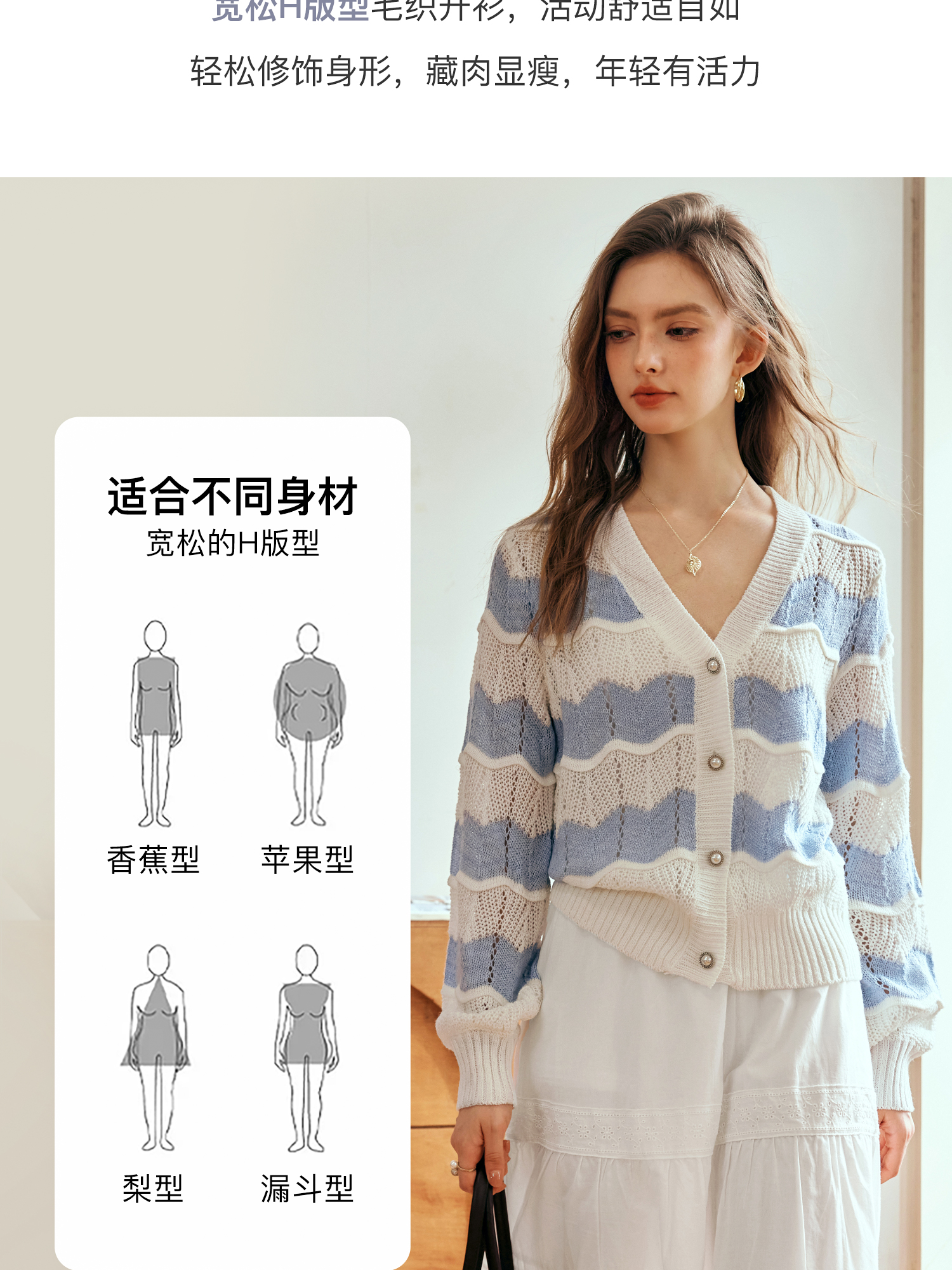 OLrain欧芮儿法式条纹毛衣女秋季2024年新款小香风镂空慵懒风开衫
