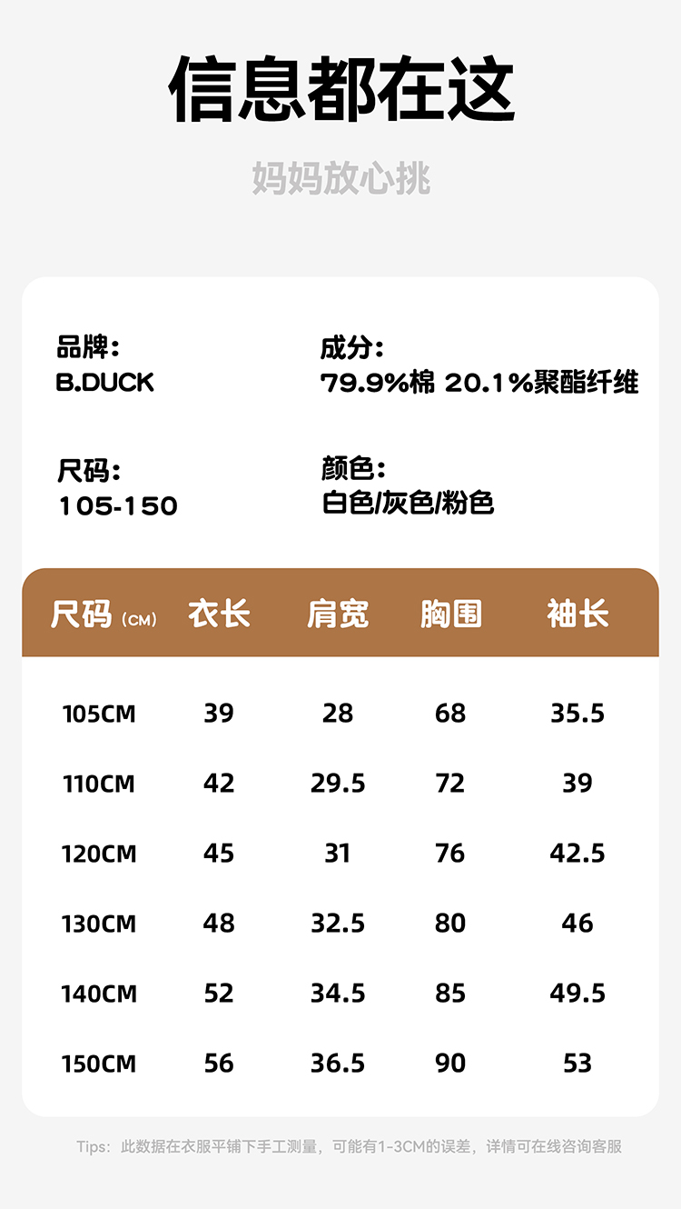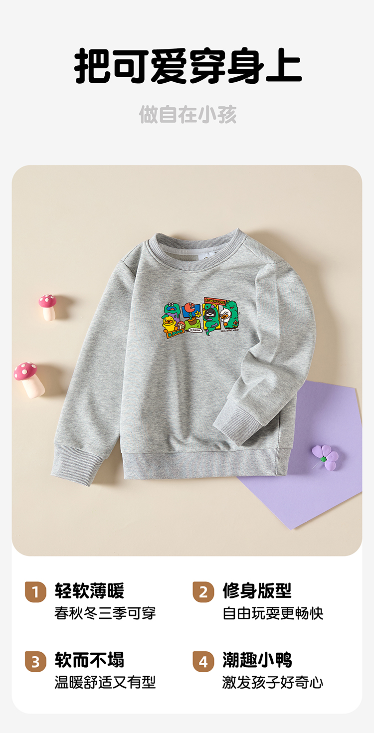 B.Duck小黄鸭童装圆领卫衣春春秋男女童时尚潮酷上衣105-150 BF3508961