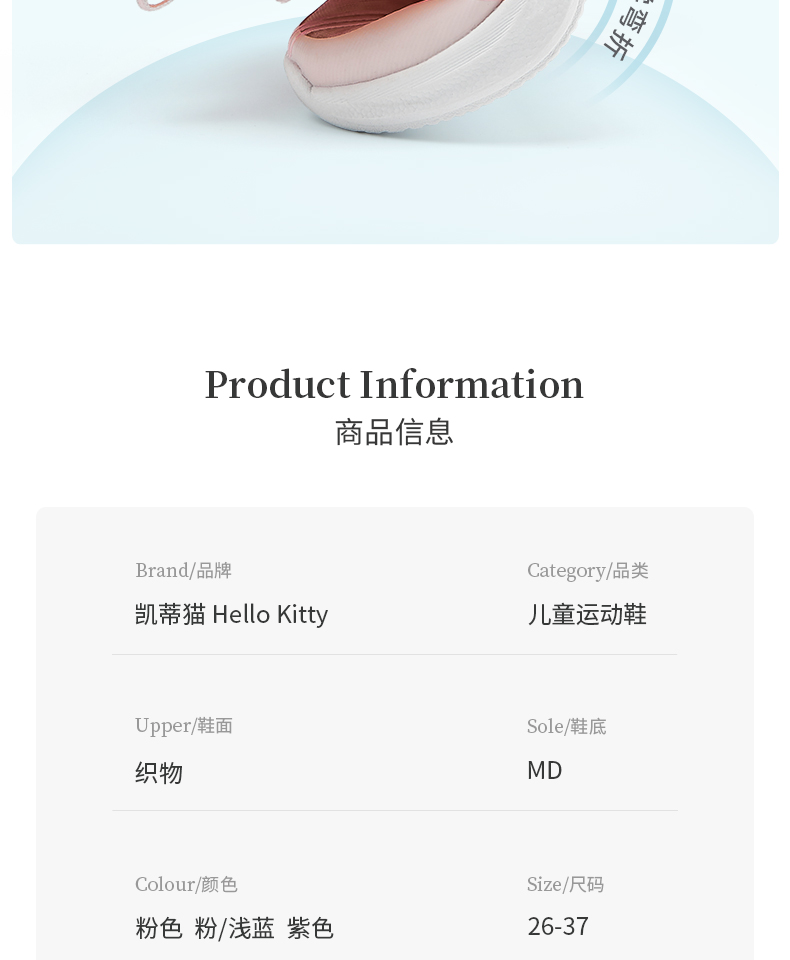 HelloKitty童鞋女童网鞋夏季儿童网面运动鞋女孩透气鞋26-37 K4526836