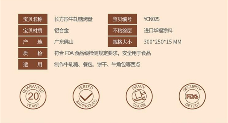 【30×25×1.5cm】YCN025 阳晨长方形牛轧糖烤盘 香槟金不沾涂层 金色烤盘