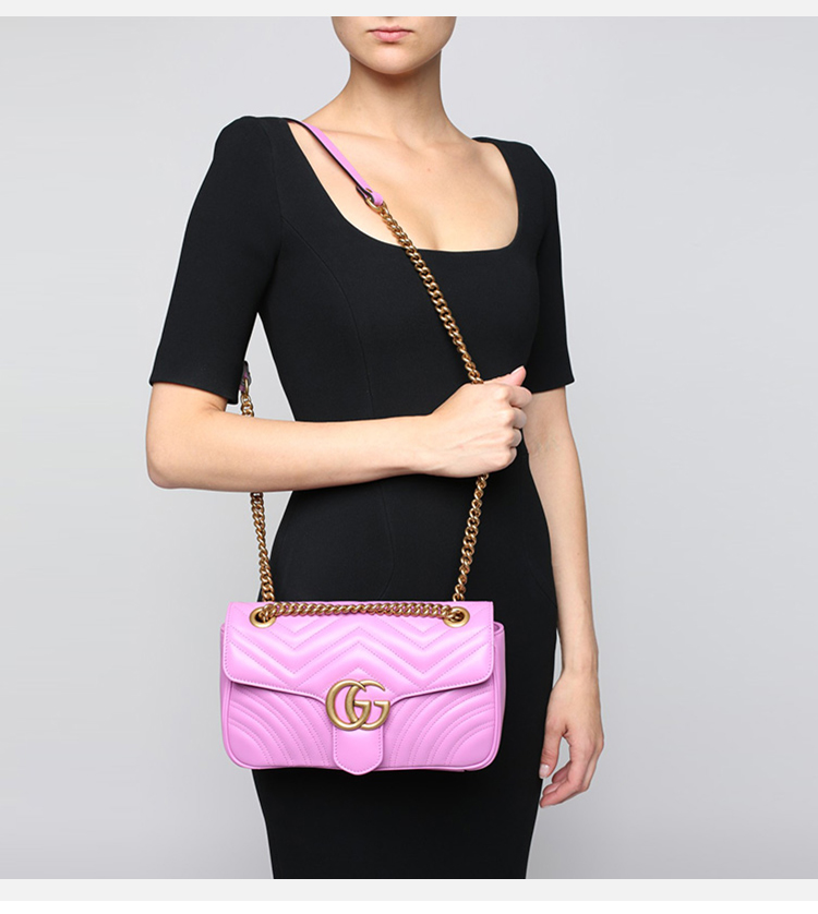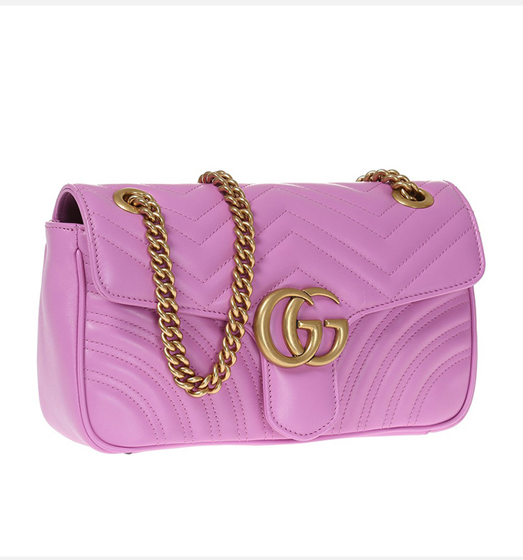 GUCCI 古驰 GG Marmont系列女士小号紫色牛皮绗缝手提单肩包 443497 DRW3T 5554