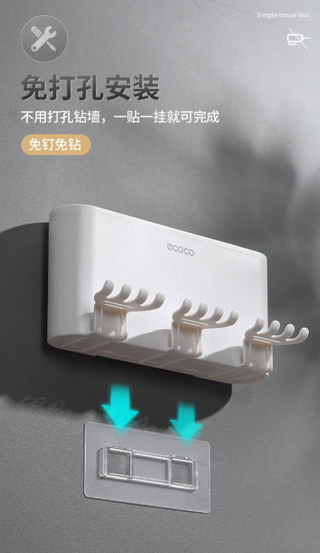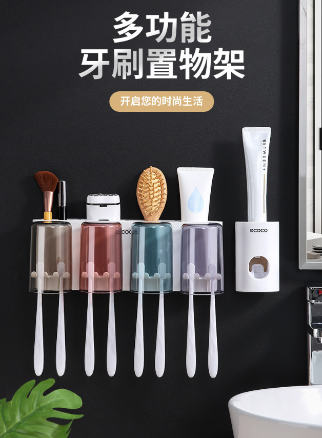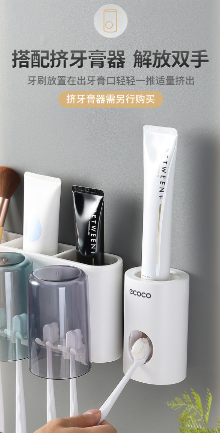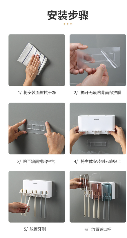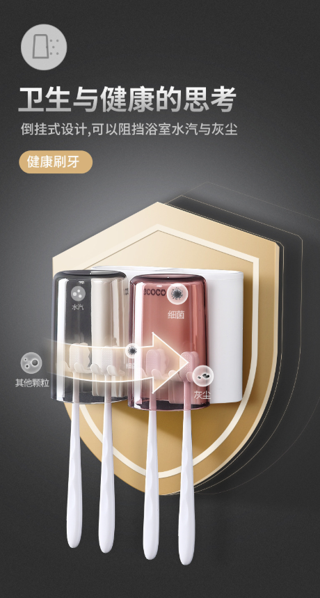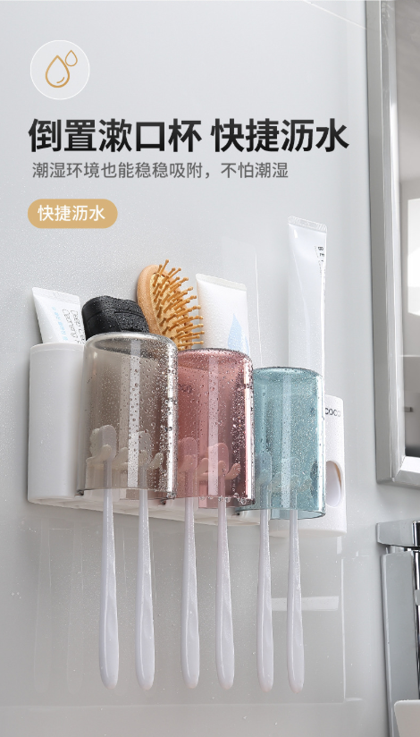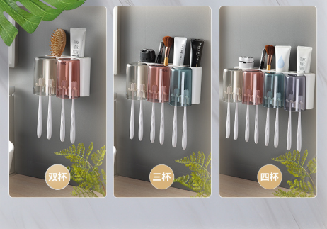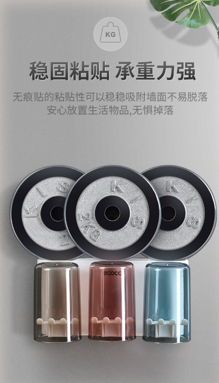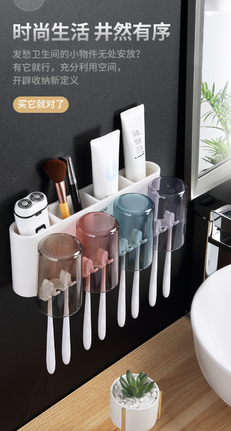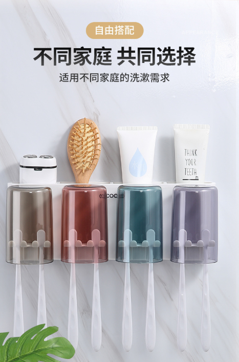 免打孔漱口杯&牙刷架 牙刷置物架刷牙杯挂墙式卫生间壁挂式收纳盒牙缸套装3.39