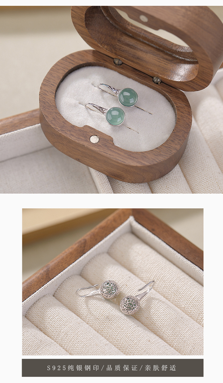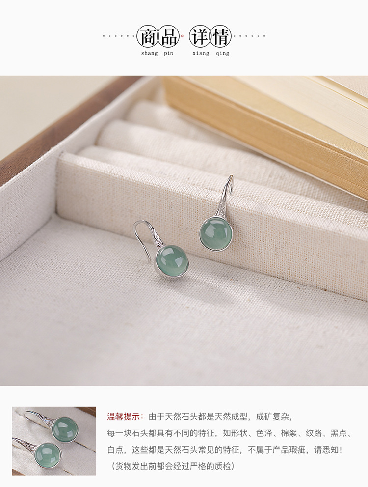 【一世温柔】S925纯银圆形花纹蓝水翡翠耳饰【CW-EG02284】