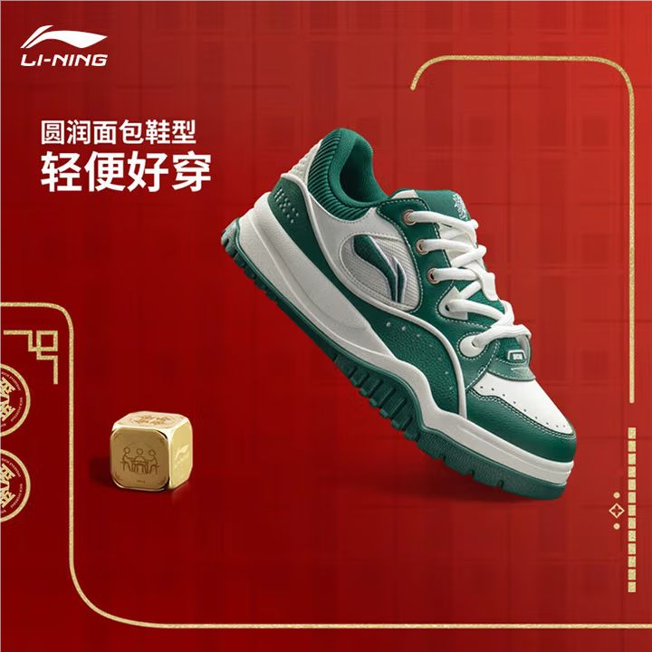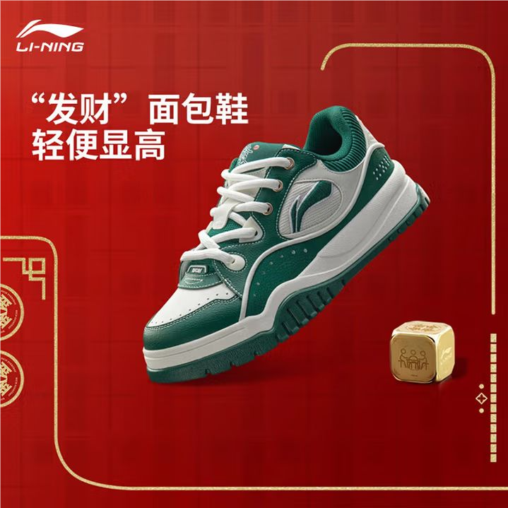 李宁男子2025春秋发财滑板鞋运动鞋休闲鞋板鞋AGCV059-1
