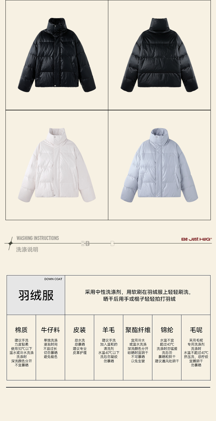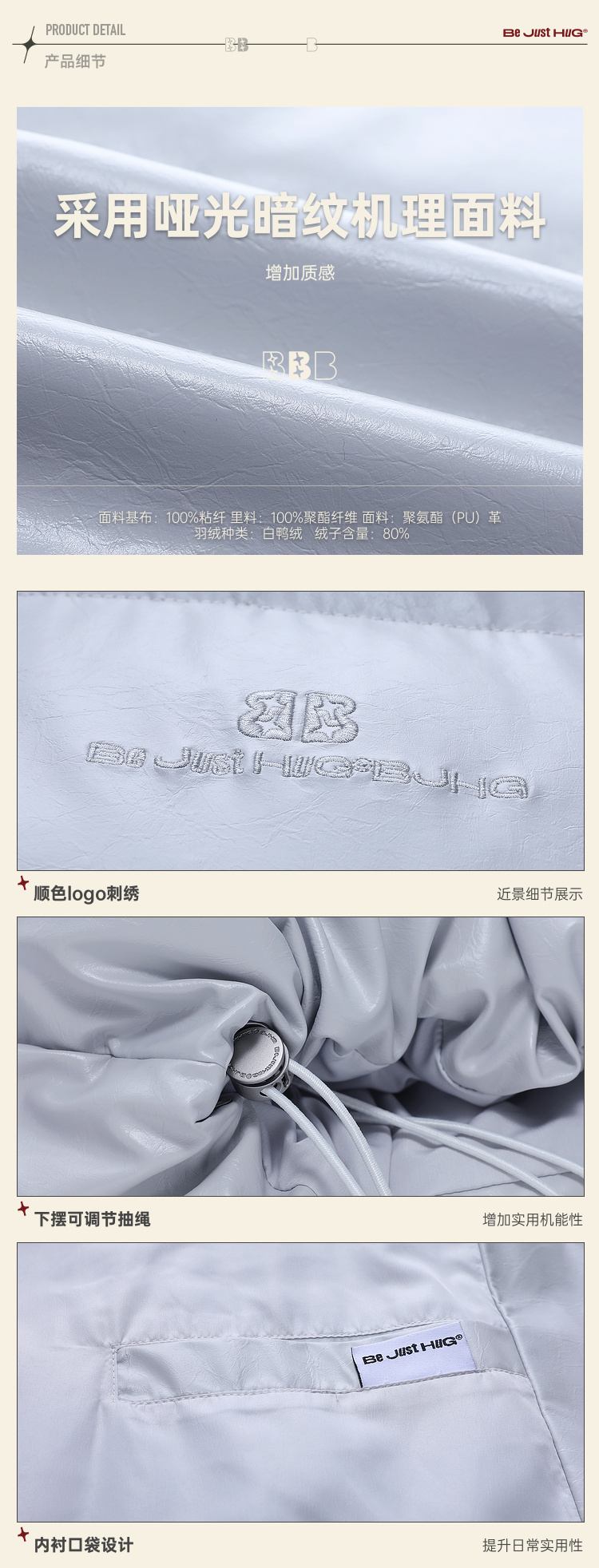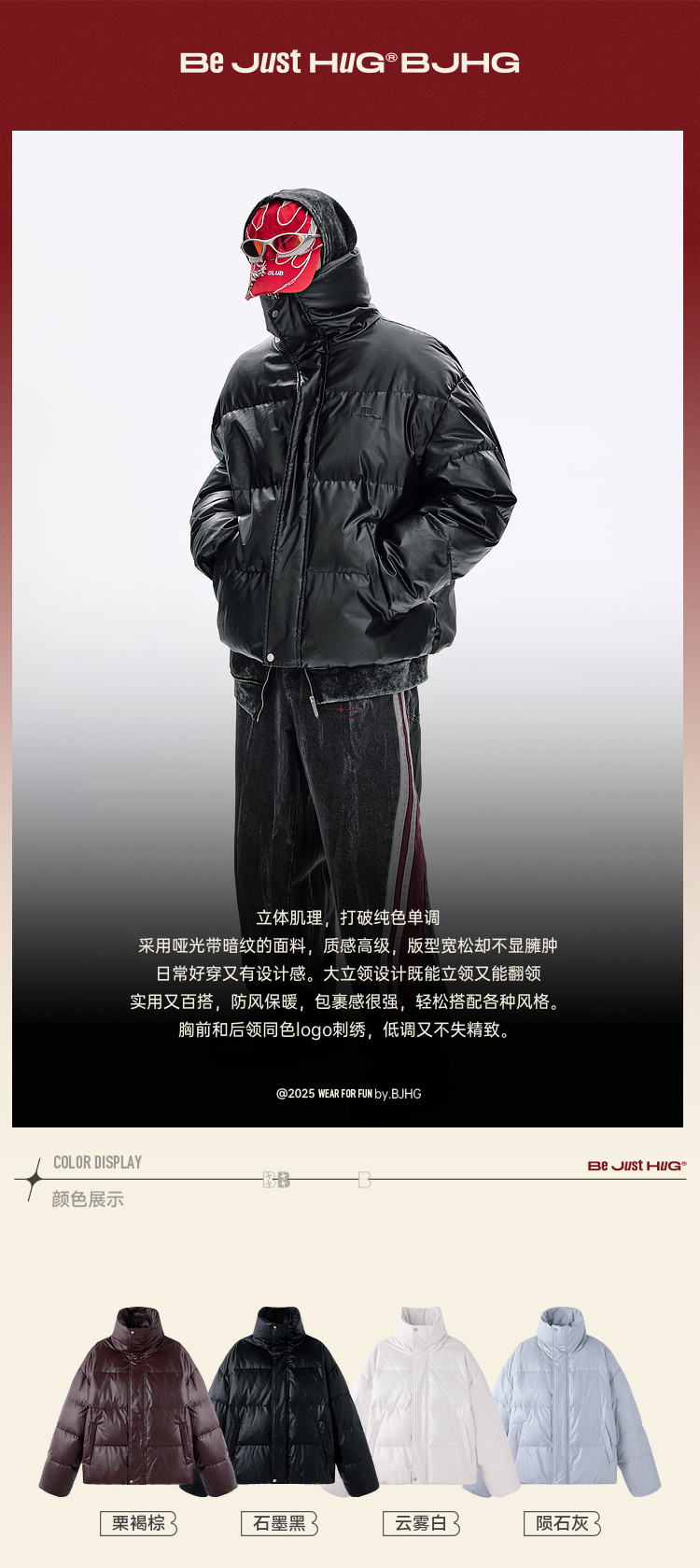 BJHG不计后果新款白鸭绒羽绒服男女款冬季外套潮牌情侣立领面包服