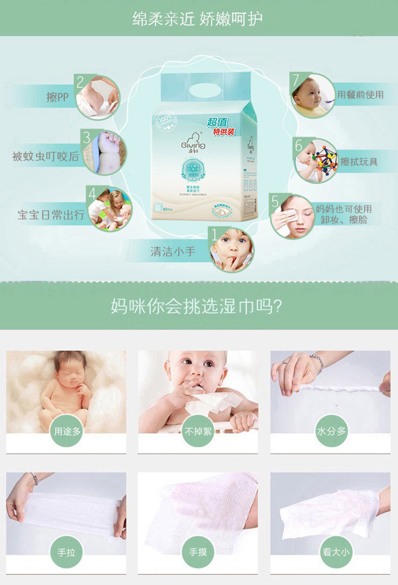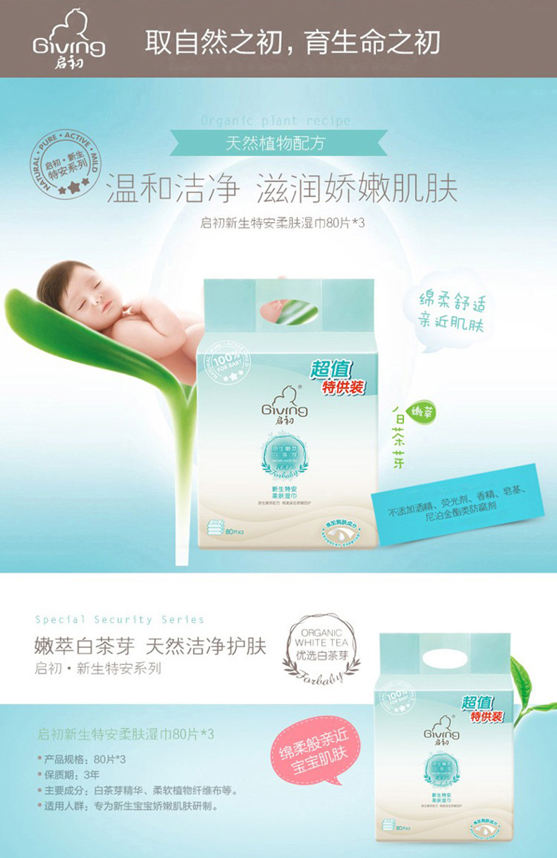 启初新生特安柔肤湿巾优惠装80片*3