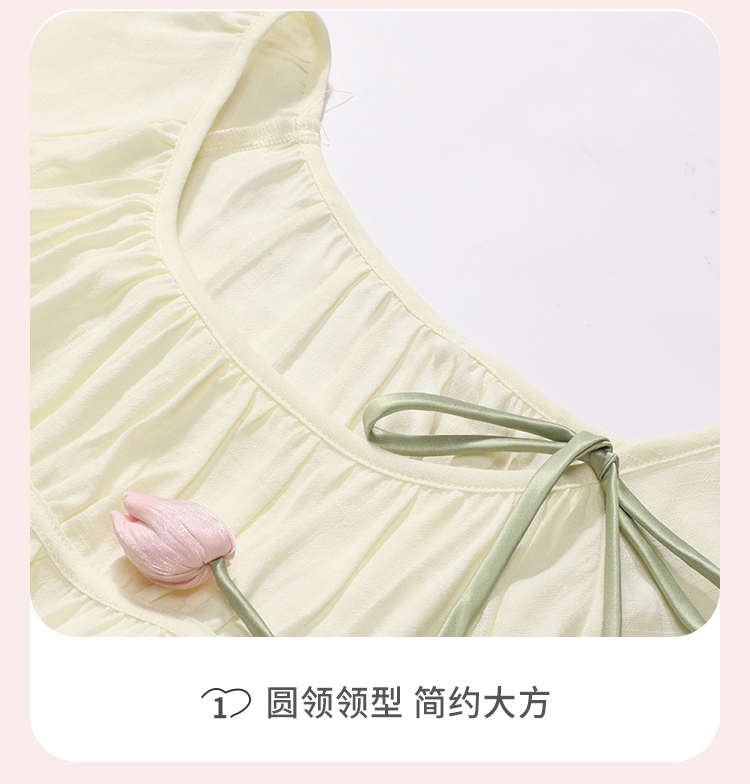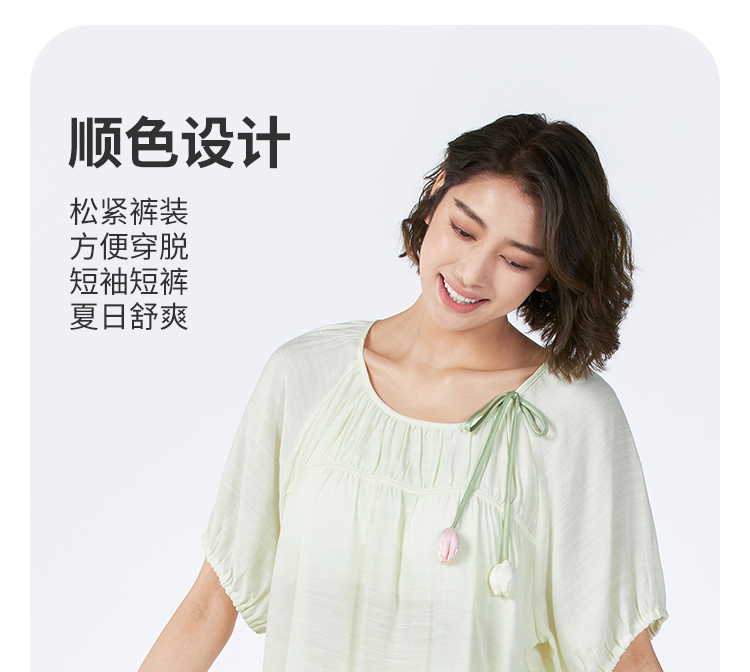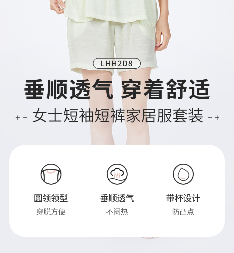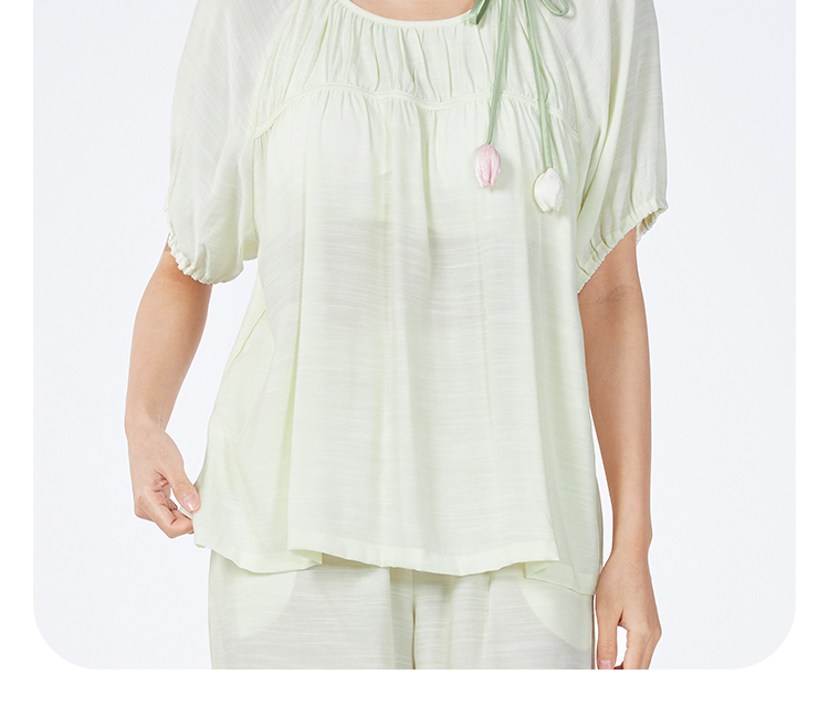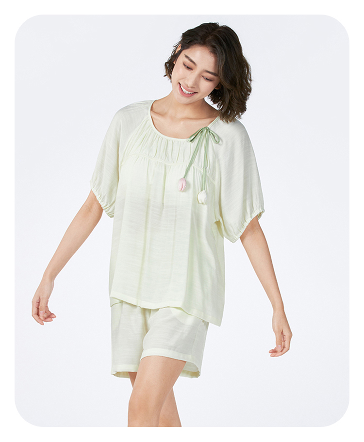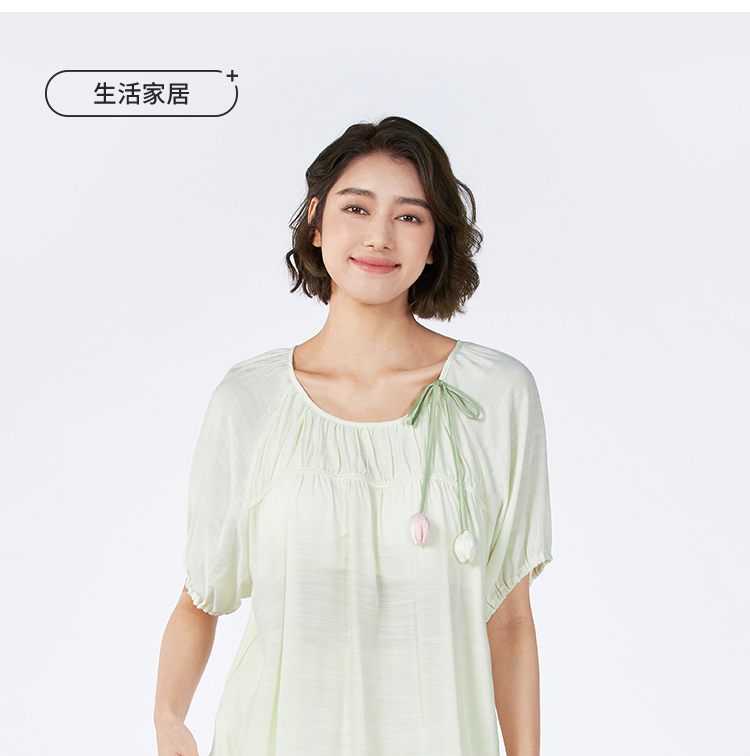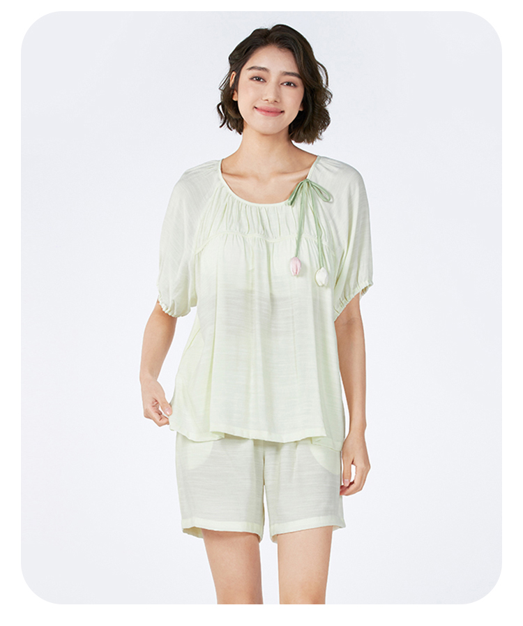 都市丽人生活家居女士梭织棉短袖套装薄麻麻纱短袖类LHH2D8