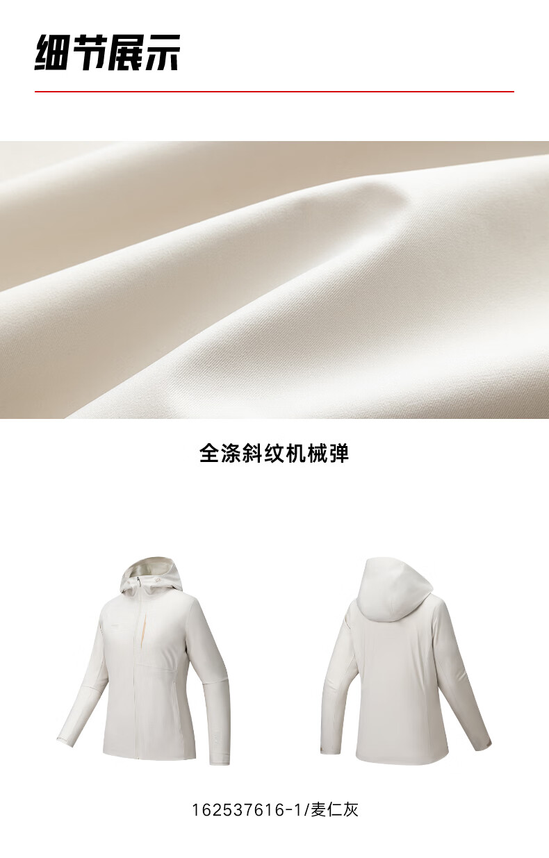 安踏风暴甲LT 硬壳冲锋衣女子秋季新款级防水透湿防风外套162537616 麦仁灰-1