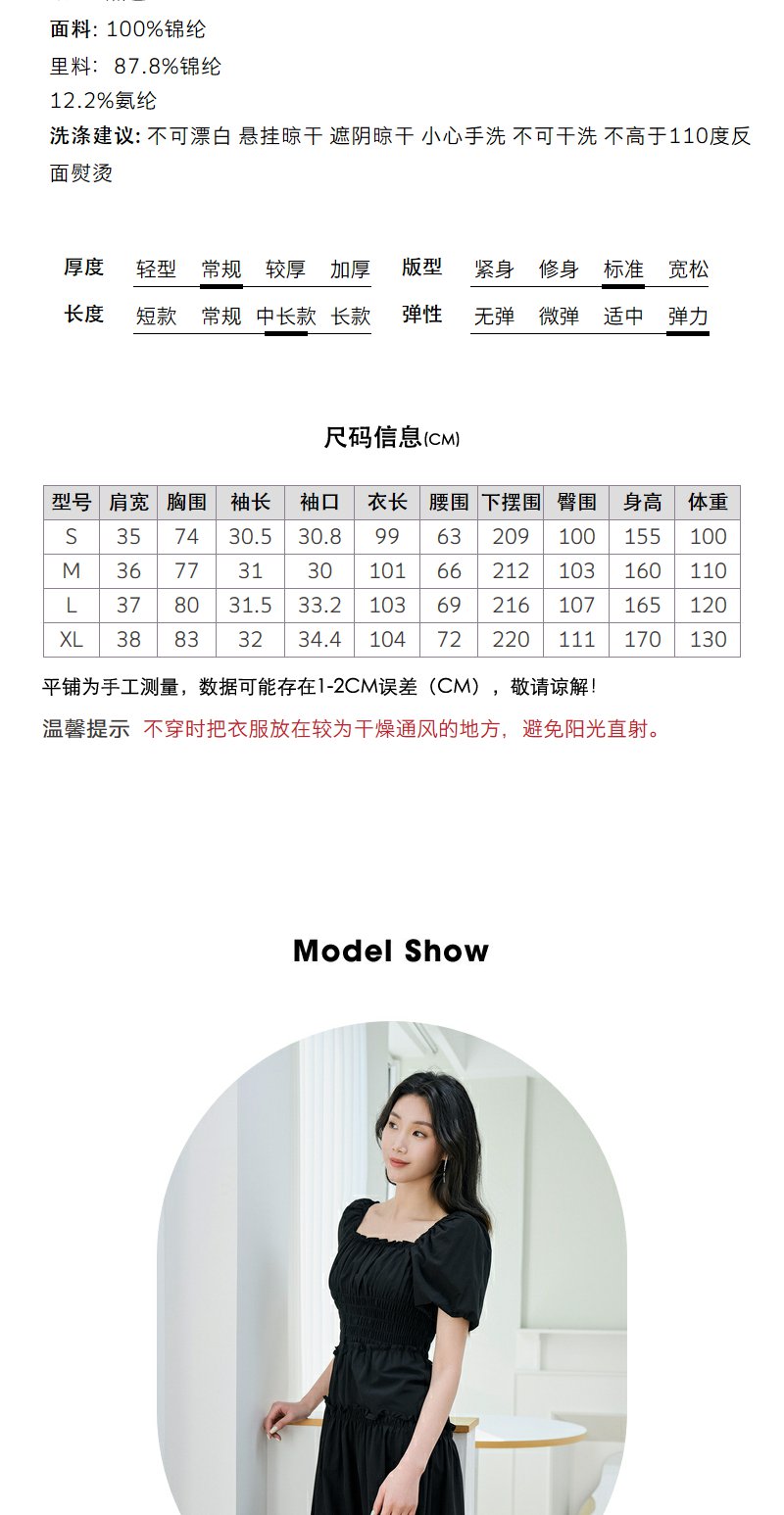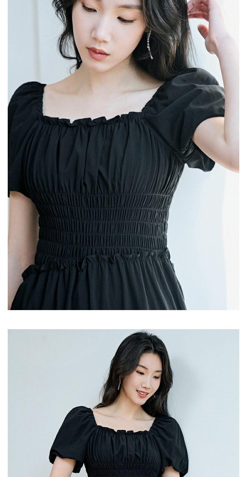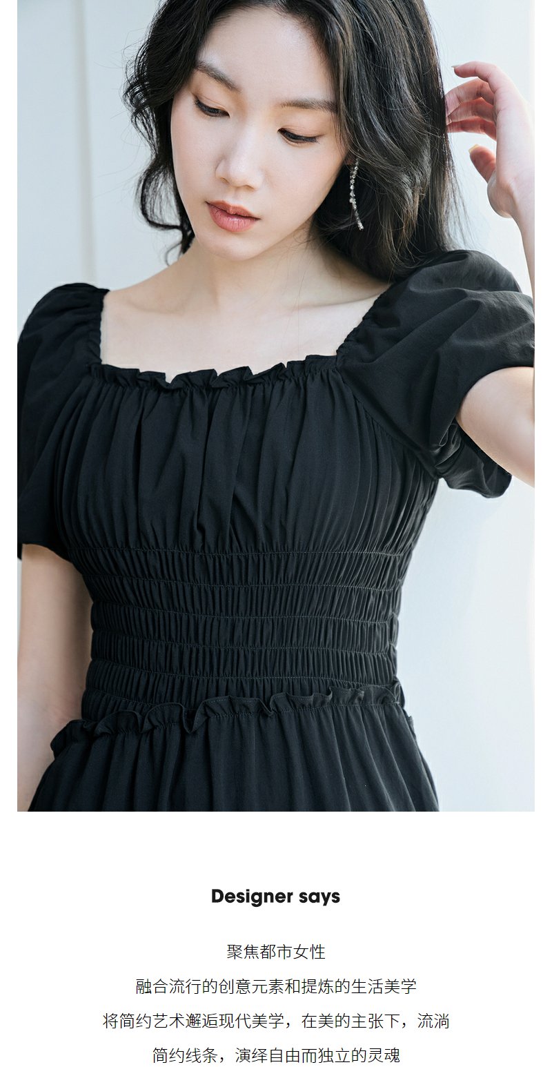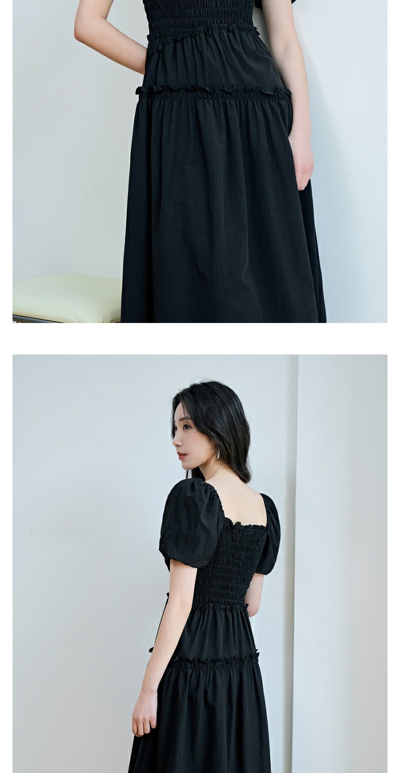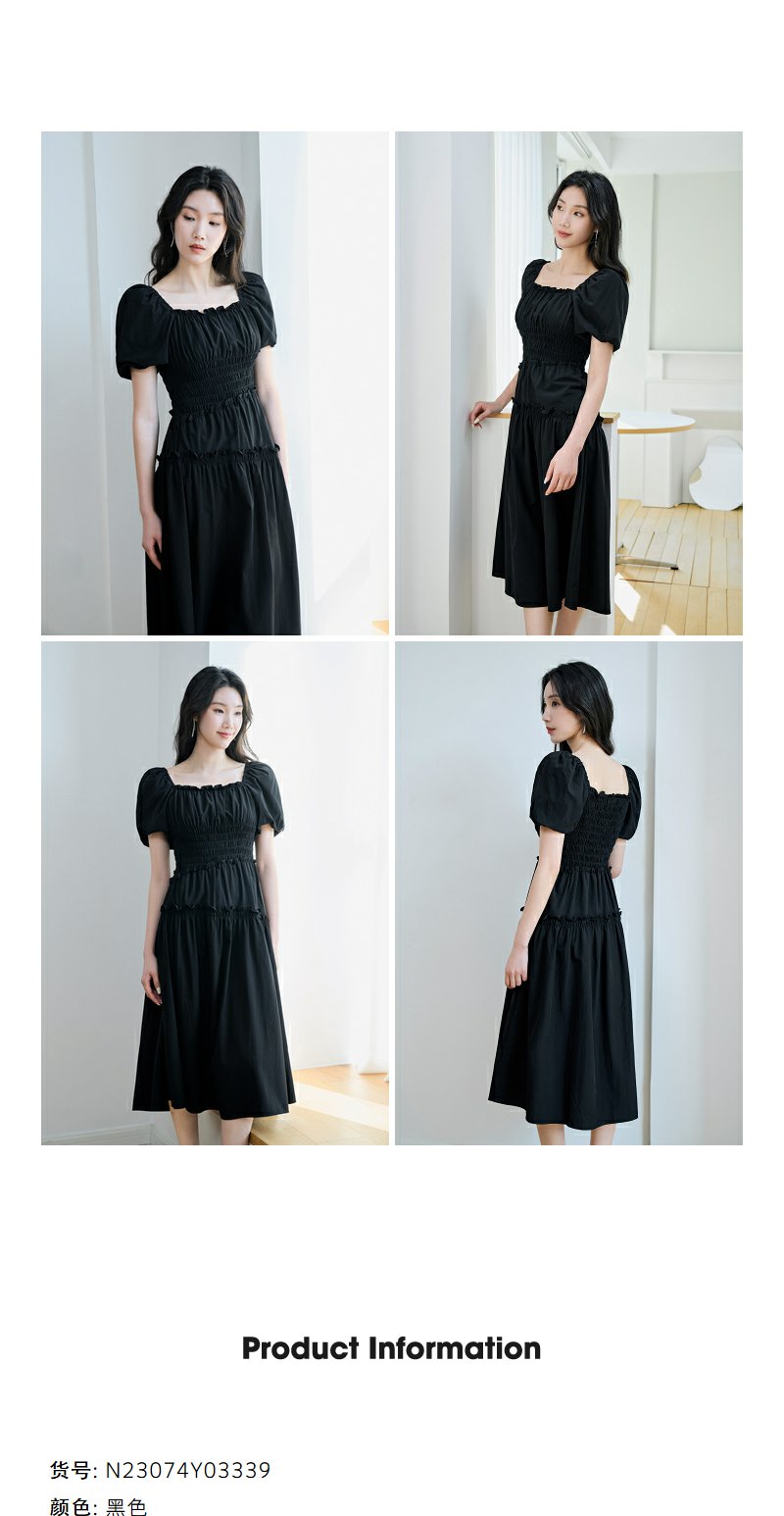 NEELLY纳俪商场同款泡泡袖方领连衣裙女中长款显瘦法式气质小黑裙N23074Y03339