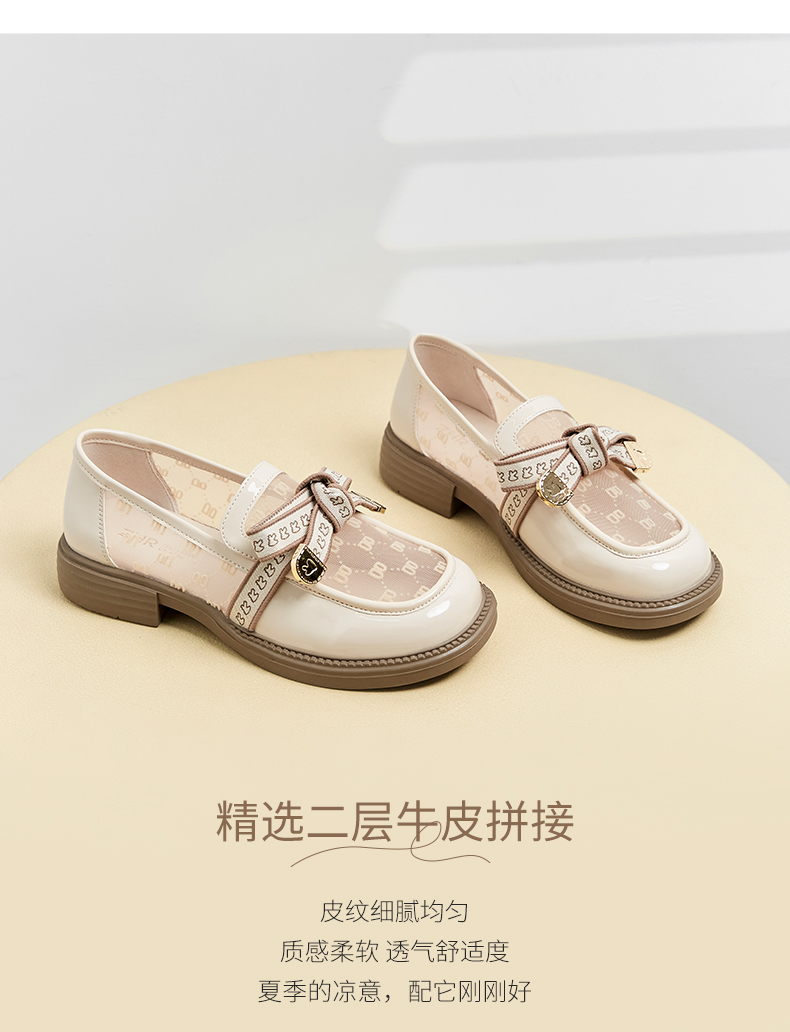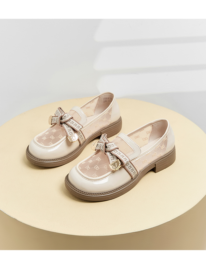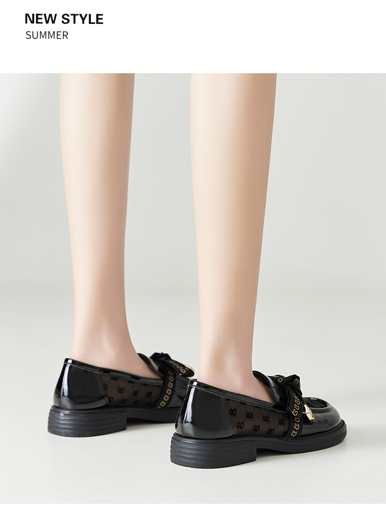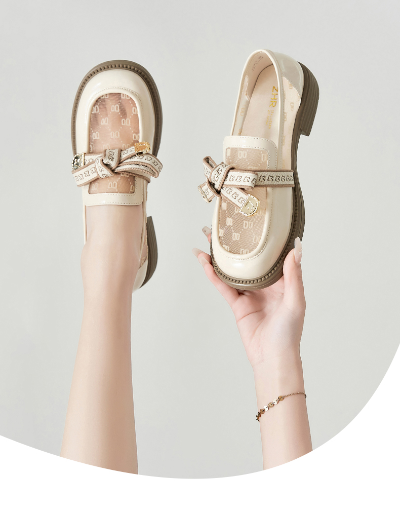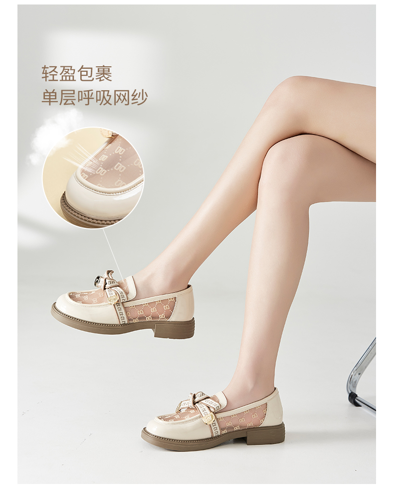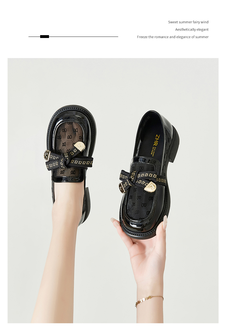 ZHR蝴蝶结透气网纱乐福鞋女2023新款夏季薄款单鞋女平底爆款
