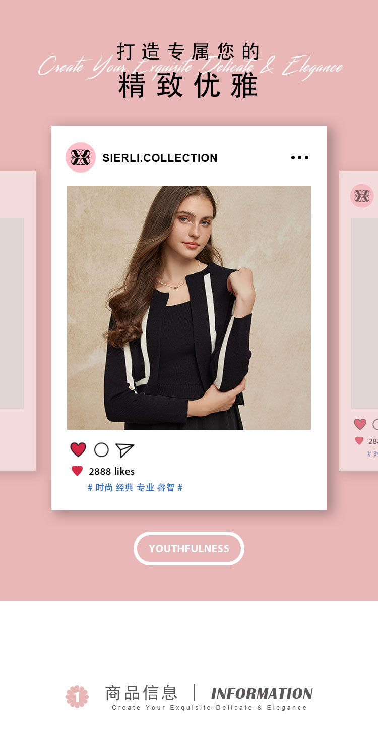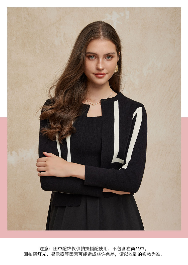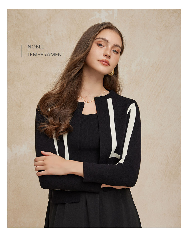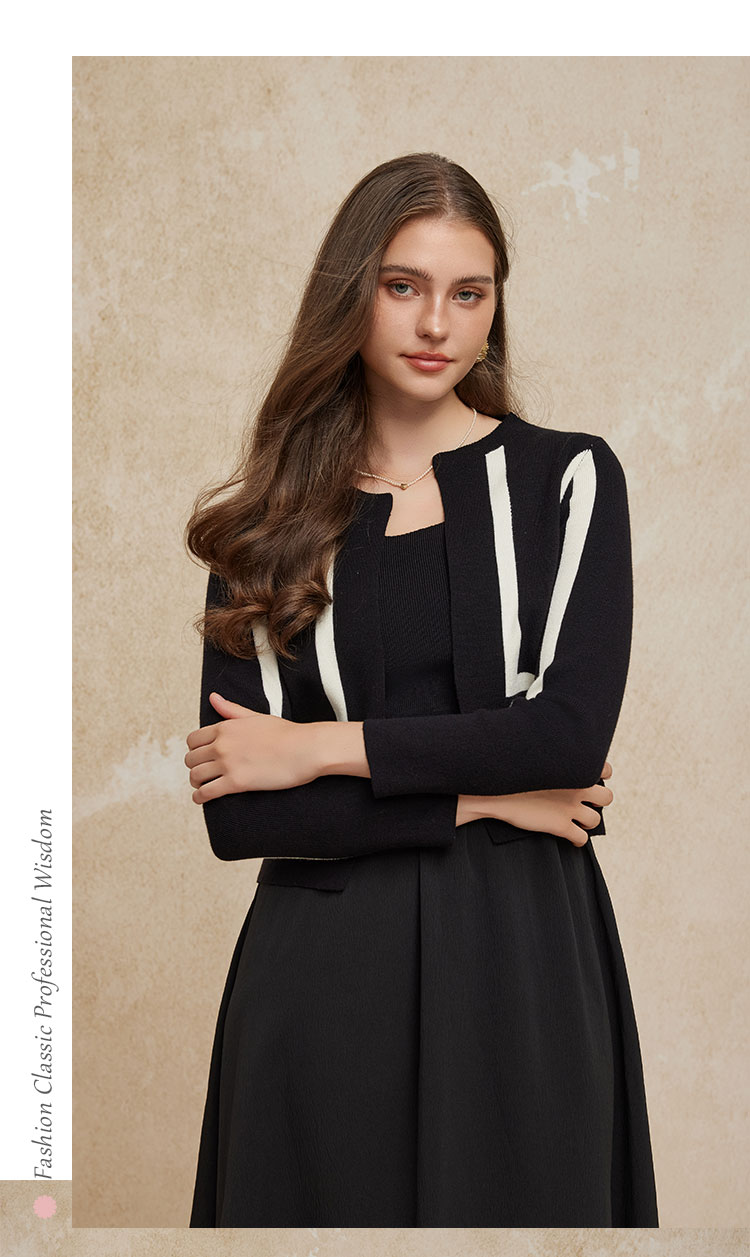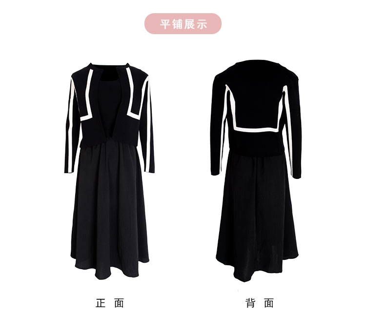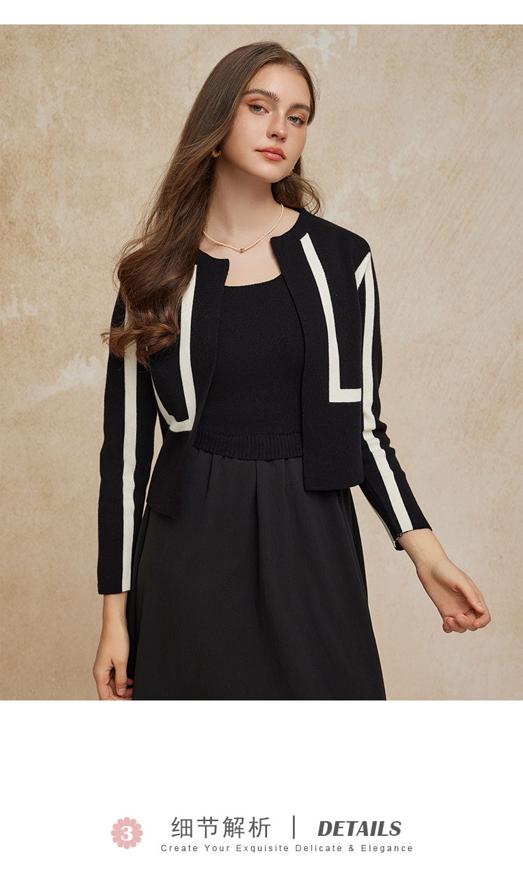 PG637斯尔丽2024新款小香风开衫搭配无袖连衣裙真两件撞色套装针织裙