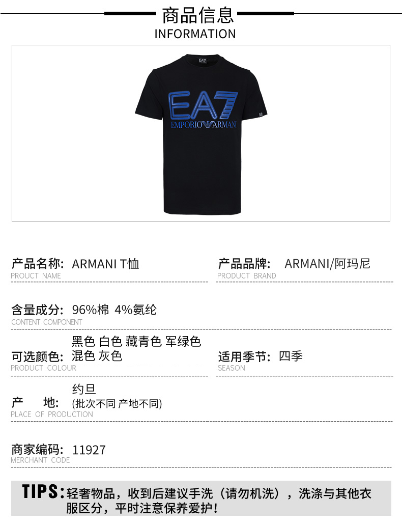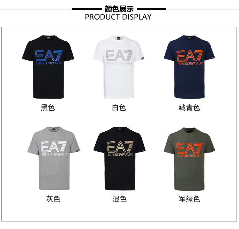 Armani EA7男士运动休闲弹棉短袖T恤 11927