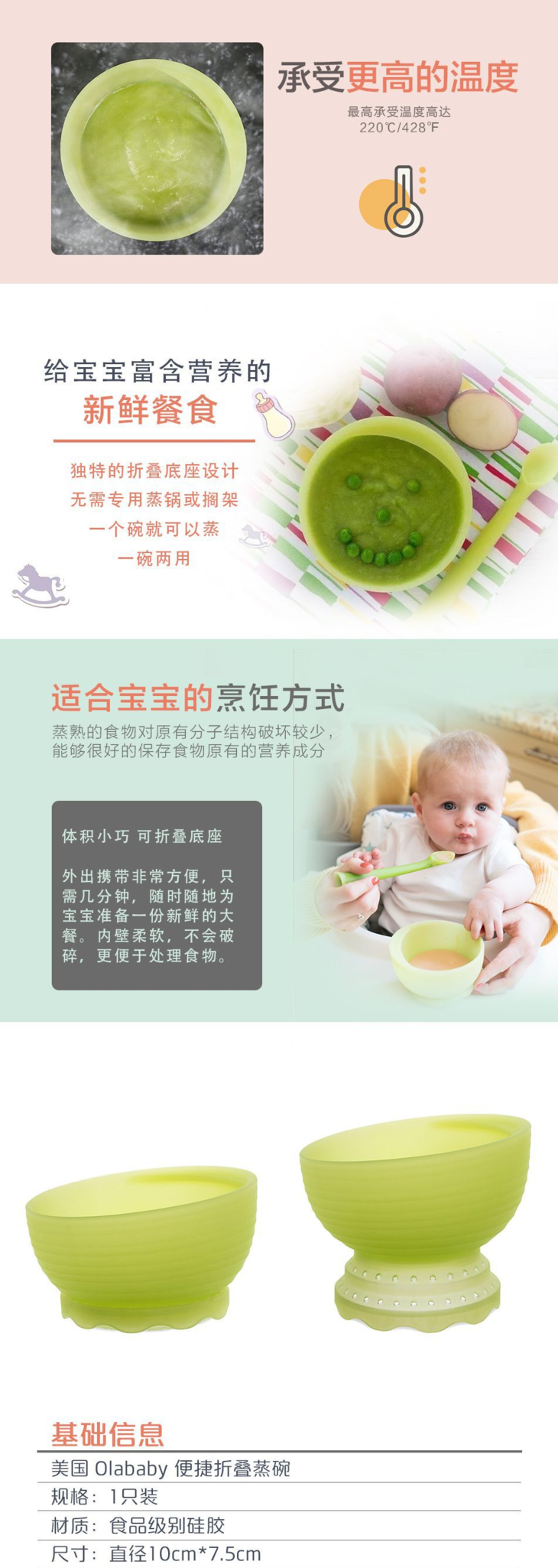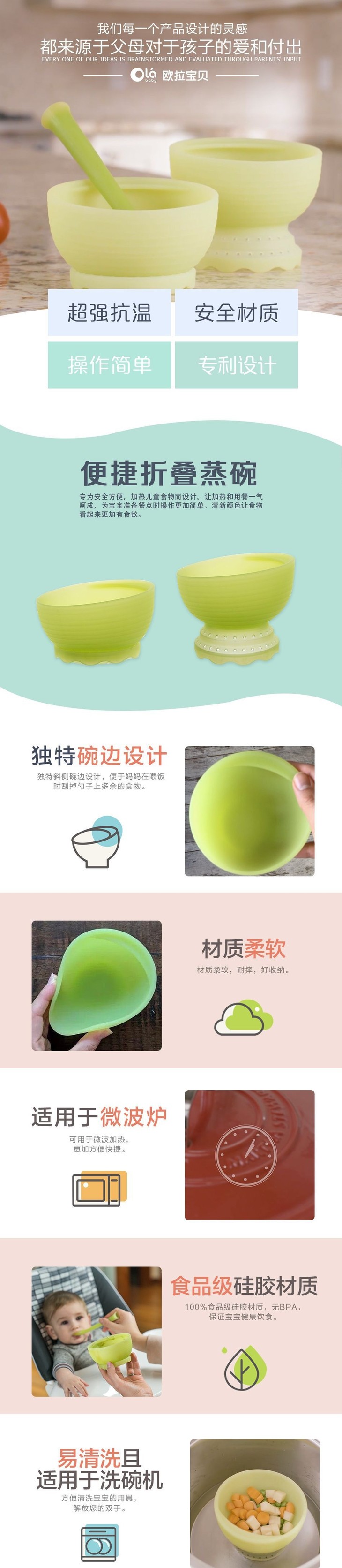美国欧拉宝贝/OLABABY婴幼儿童宝宝硅胶辅食碗折叠碗训练蒸煮餐碗