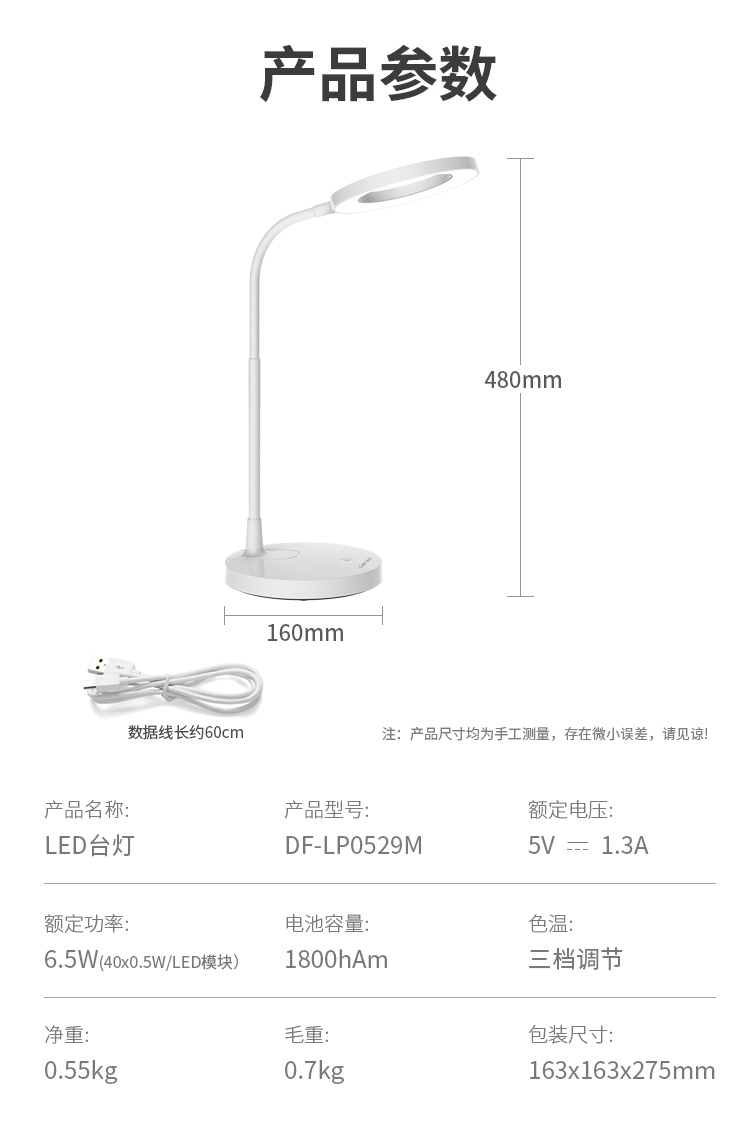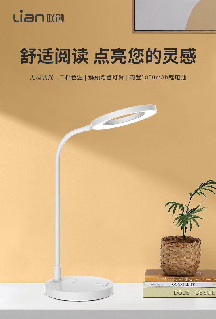 联创LED台灯_DF-LP0529M充电台灯无极调光三档色温护眼