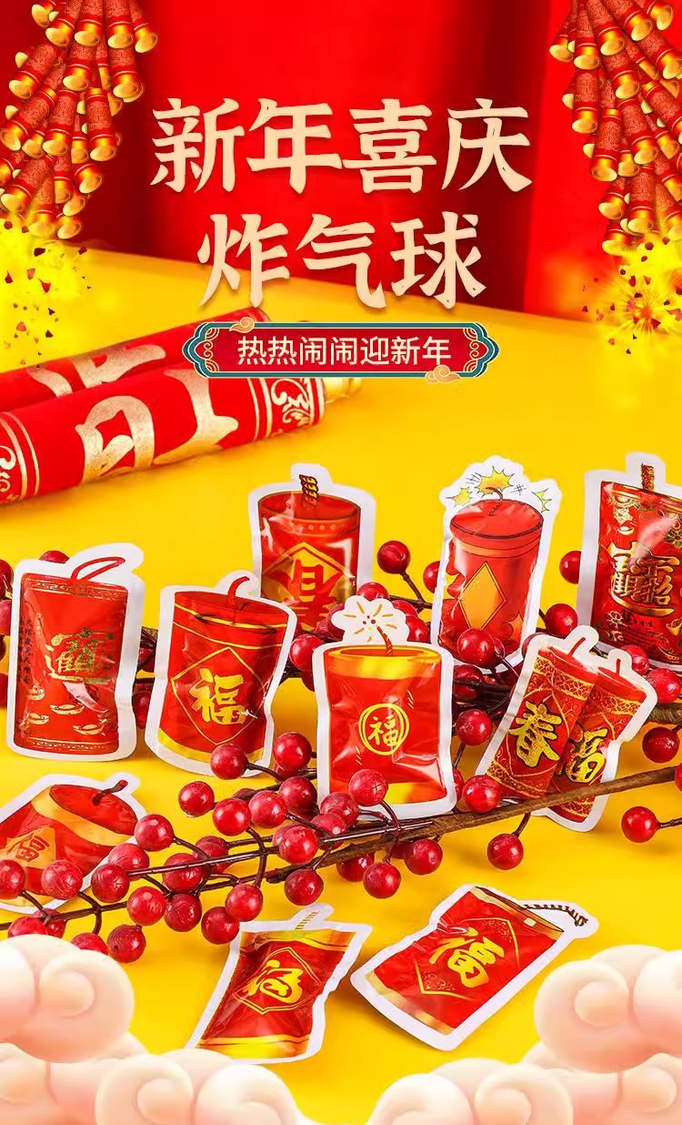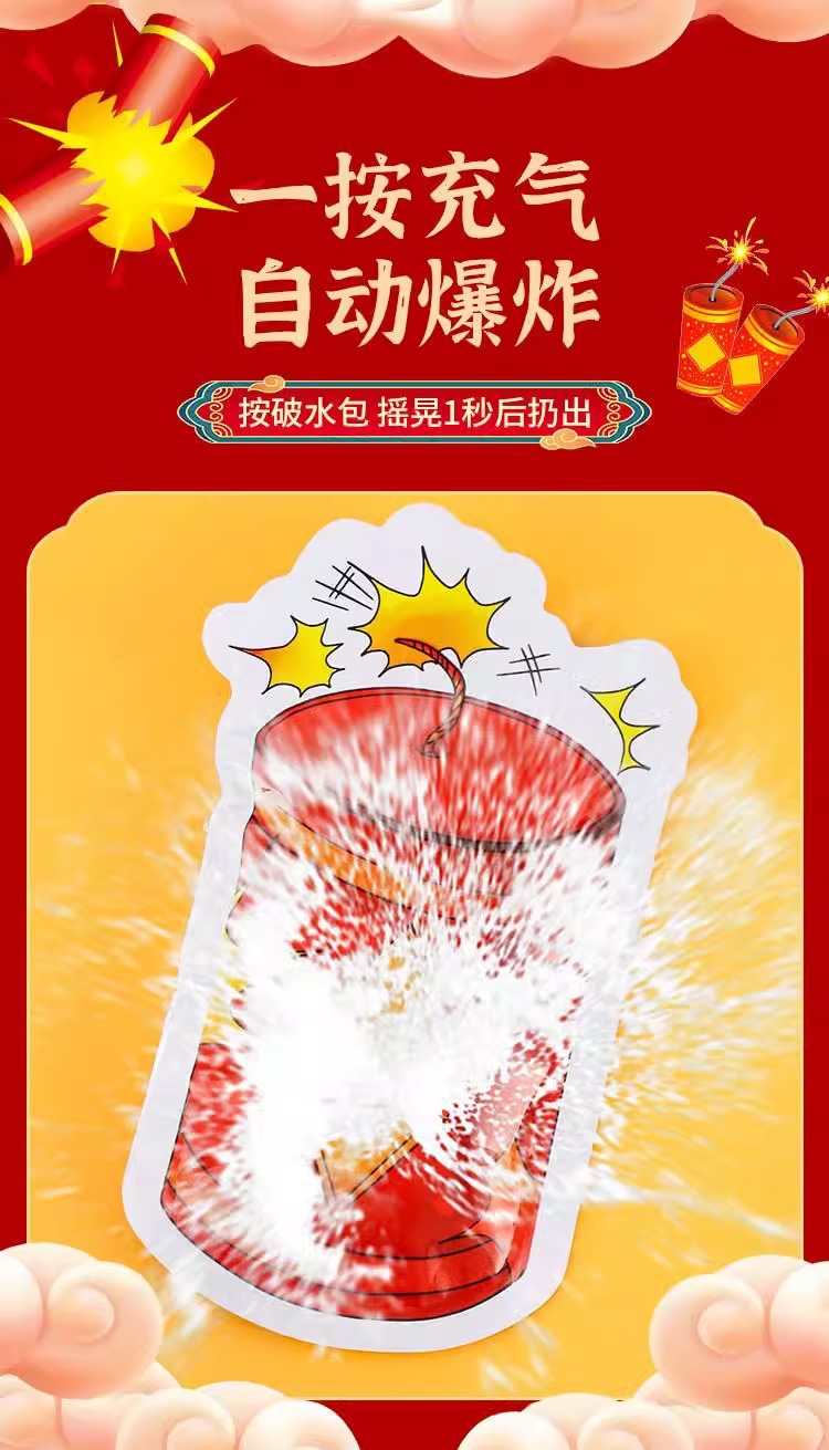 【新年家用仿真气球鞭炮礼炮】自动充气可爆炸 节日庆典儿童恶作剧礼花